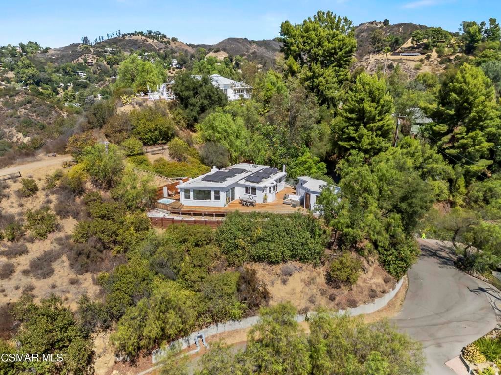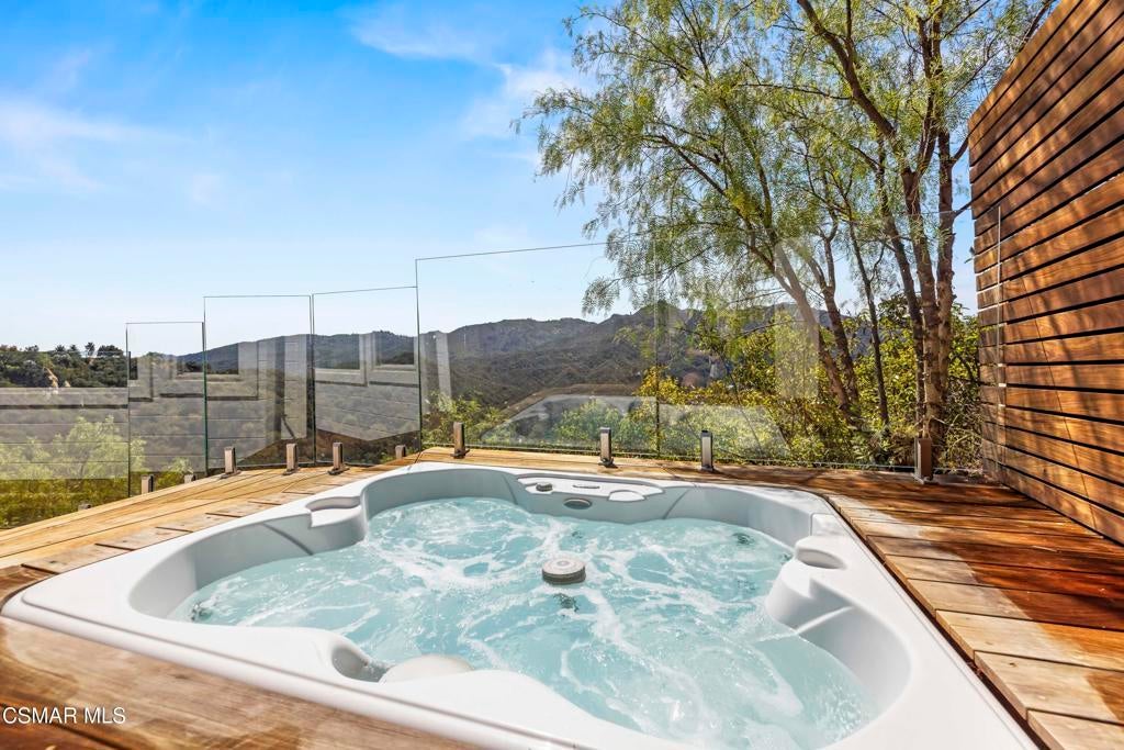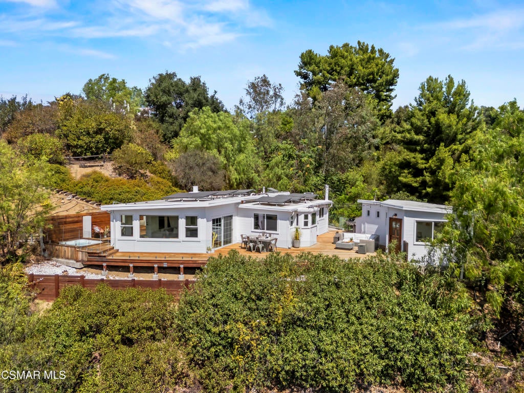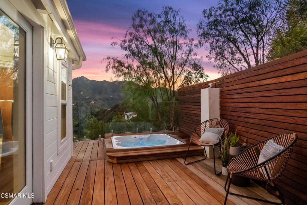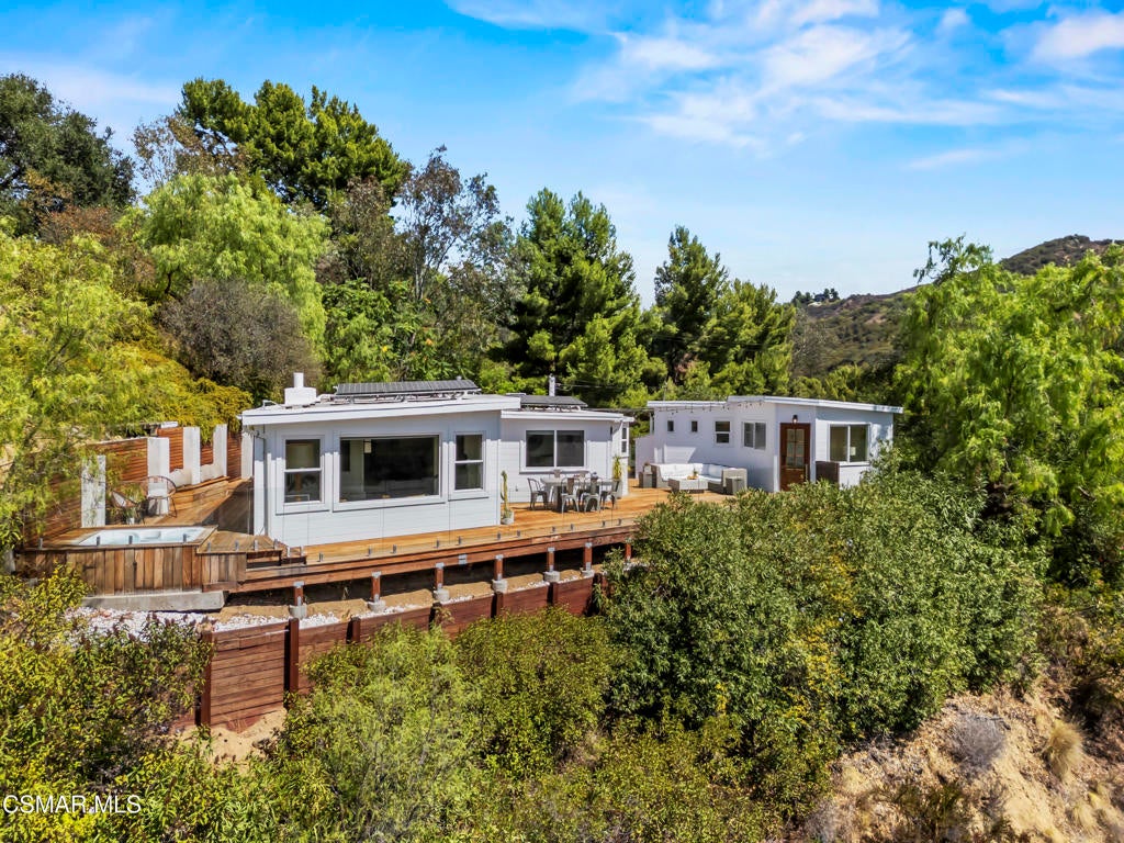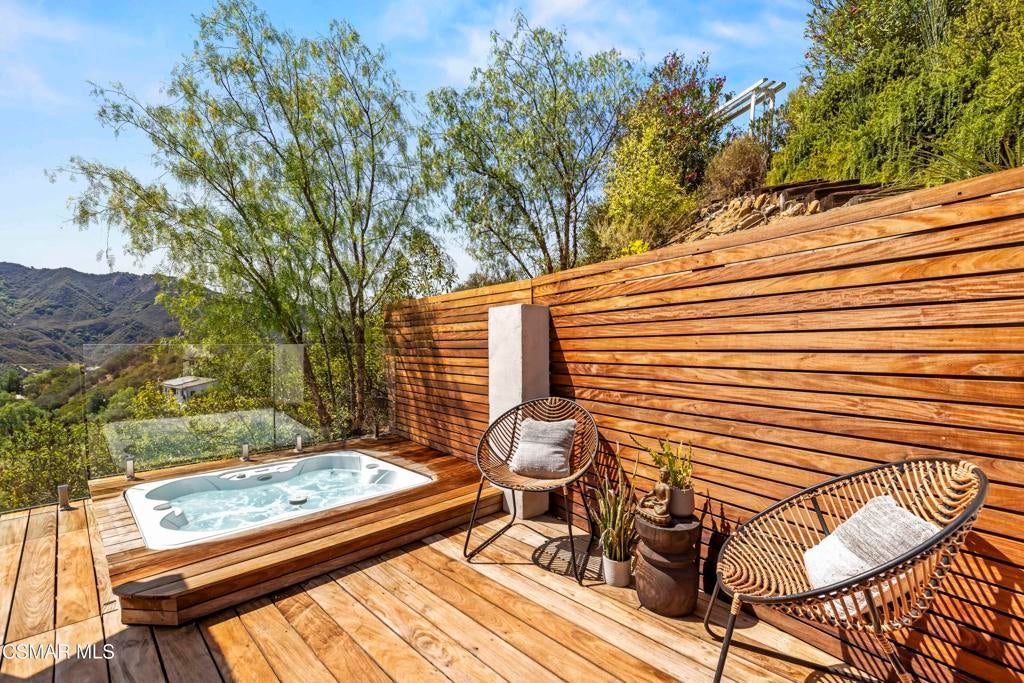 HUGE PRICE REDUCTION!!Welcome to your hidden oasis in the Santa Monica Mountains. This 3-bedroom, 2-bathroom retreat combines natural beauty with modern comfort. Just minutes from Malibu's beaches or the shops and dining of Calabasas, it perfectly blends seclusion with convenience. *Please note that we have already completed an inspection report, and have receipts to show all repairs that have been made.*In addition to the beautiful charm of this property, it also comes with modern upgrades that make this house move in ready! New copper piping and a brand new electrical panel with new wiring can give you peace of mind that this house will last. Not to mention that this house has recently had a roof tune up as well as being freshly painted. The residence features a bohemian-inspired design. Walk inside the beautiful brand new wooden doors and you are met with expansive windows that flood the interiors with light and frame sweeping mountain views. The primary suite looks directly out toward the Santa Monica Mountains, creating a tranquil backdrop to start and end your day.A spacious wraparound deck encircles the property, providing multiple outdoor living and entertaining spaces. Made from Brazilian Walnut Wood, this deck offers some of the best protection against fires, mildew, and mold with a 40 year estimated lifespan requiring very little maintenance. Enjoy an evening under the stars with thoughtfully placed outdoor lighting, or unwind in the spa while taking in some of the area's most spectacular sunsets. This property also comes with state of the art features. Take advantage of charging your electric vehicle with a built in Tesla 220v charger. And enjoy clean drinkable water from any faucet in the house with the built in water filtration system. One of the three bedrooms is detached, offering flexibility as a private office, art studio, or music room. Whether hosting gatherings or seeking a peaceful retreat, this home offers a one-of-a-kind opportunity to experience the best of canyon living.Beyond the natural beauty, Topanga offers all the modern conveniences right in the canyon, so you rarely need to venture into the city. A local grocery store, post office, and doctor's office are just minutes away, along with yoga and Pilates studios for wellness right at your doorstep. Station 69 provides nearby fire protection, while charming restaurants and shops host live music on the weekends, fostering a vibrant sense of community. Living here means you can enjoy the best of both worlds--tranquil mountain living with everyday amenities close at hand.