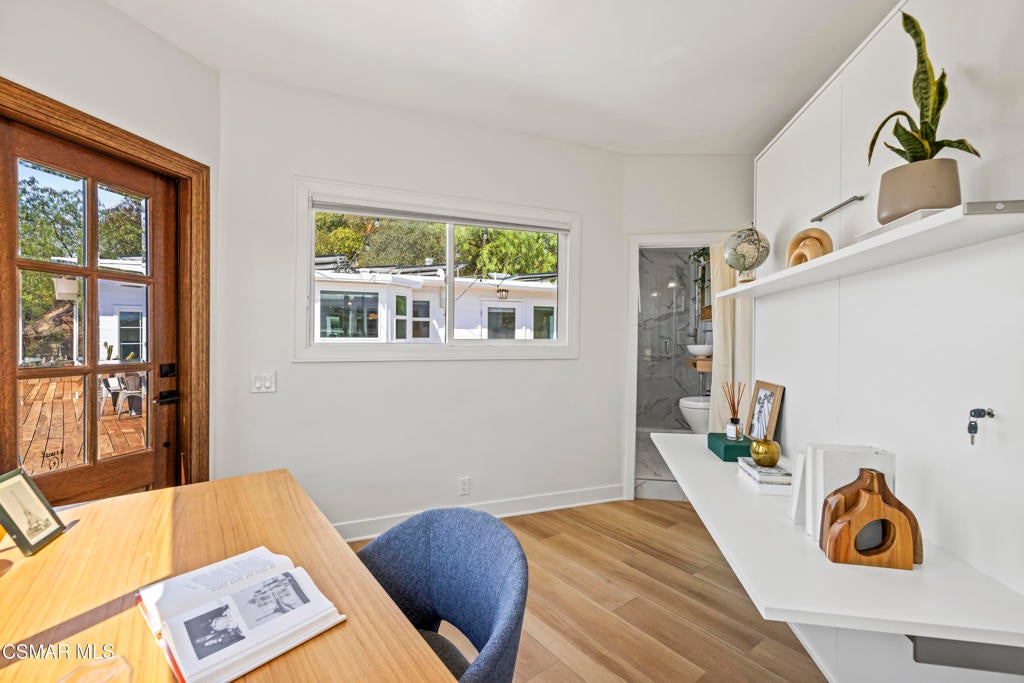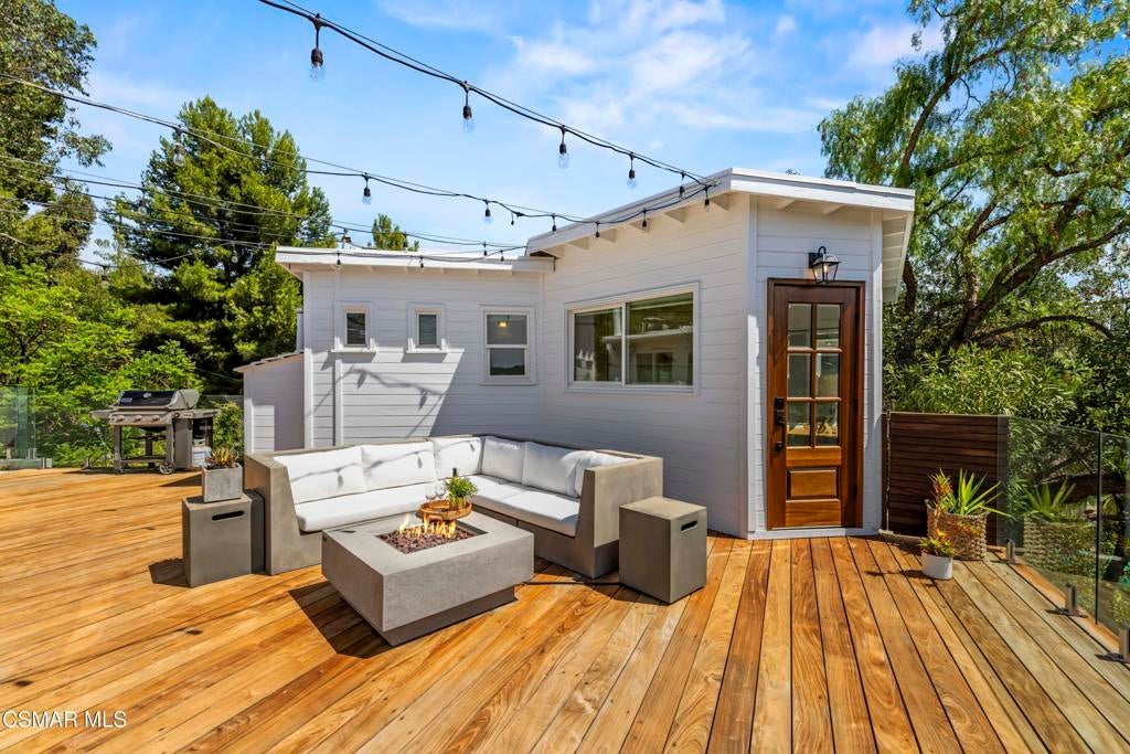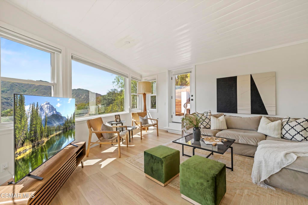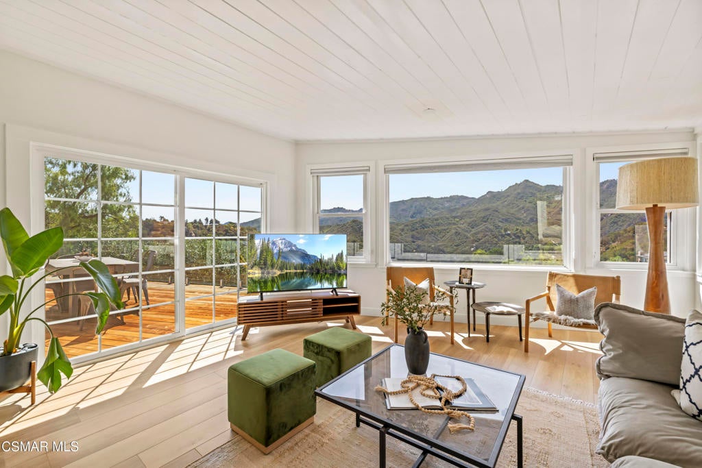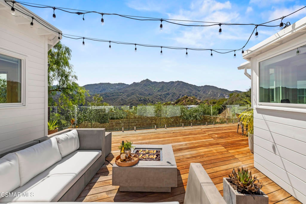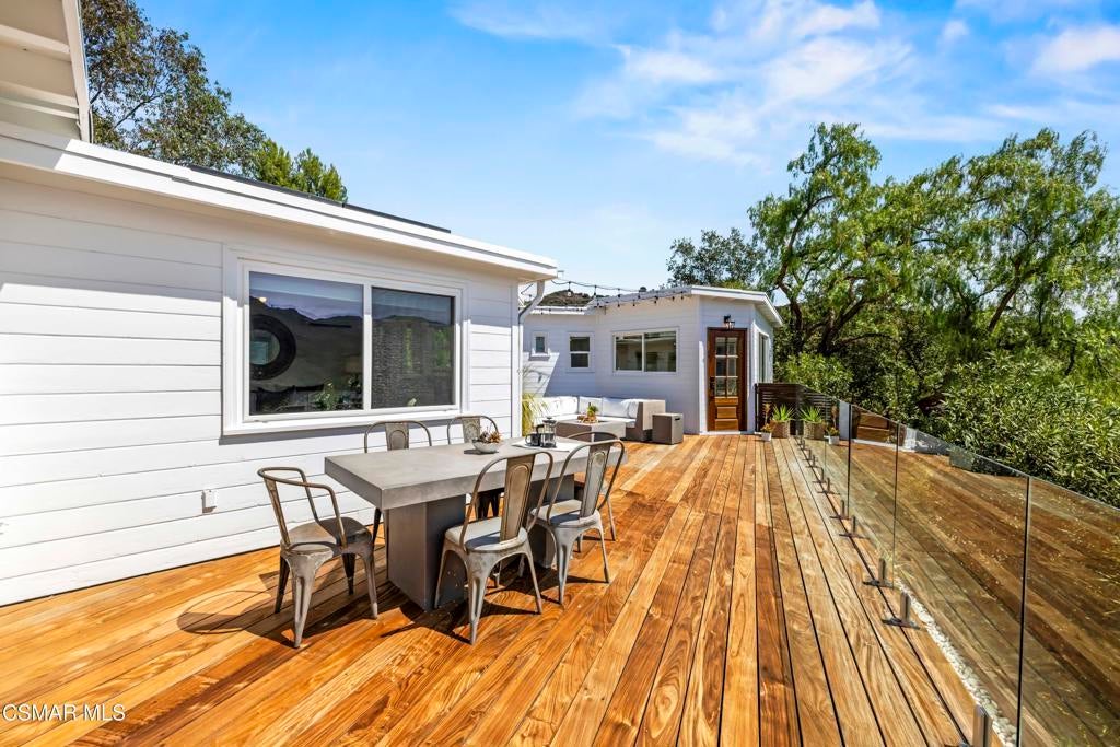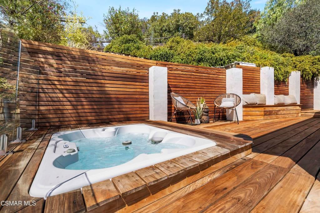 HUGE PRICE REDUCTION!!Welcome to your hidden oasis in the Santa Monica Mountains. This 3-bedroom, 2-bathroom retreat combines natural beauty with modern comfort. Just minutes from Malibu's beaches or the shops and dining of Calabasas, it perfectly blends seclusion with convenience. *Please note that we have already completed an inspection report, and have receipts to show all repairs that have been made.*In addition to the beautiful charm of this property, it also comes with modern upgrades that make this house move in ready! New copper piping and a brand new electrical panel with new wiring can give you peace of mind that this house will last. Not to mention that this house has recently had a roof tune up as well as being freshly painted. The residence features a bohemian-inspired design. Walk inside the beautiful brand new wooden doors and you are met with expansive windows that flood the interiors with light and frame sweeping mountain views. The primary suite looks directly out toward the Santa Monica Mountains, creating a tranquil backdrop to start and end your day.A spacious wraparound deck encircles the property, providing multiple outdoor living and entertaining spaces. Made from Brazilian Walnut Wood, this deck offers some of the best protection against fires, mildew, and mold with a 40 year estimated lifespan requiring very little maintenance. Enjoy an evening under the stars with thoughtfully placed outdoor lighting, or unwind in the spa while taking in some of the area's most spectacular sunsets. This property also comes with state of the art features. Take advantage of charging your electric vehicle with a built in Tesla 220v charger. And enjoy clean drinkable water from any faucet in the house with the built in water filtration system. One of the three bedrooms is detached, offering flexibility as a private office, art studio, or music room. Whether hosting gatherings or seeking a peaceful retreat, this home offers a one-of-a-kind opportunity to experience the best of canyon living.Beyond the natural beauty, Topanga offers all the modern conveniences right in the canyon, so you rarely need to venture into the city. A local grocery store, post office, and doctor's office are just minutes away, along with yoga and Pilates studios for wellness right at your doorstep. Station 69 provides nearby fire protection, while charming restaurants and shops host live music on the weekends, fostering a vibrant sense of community. Living here means you can enjoy the best of both worlds--tranquil mountain living with everyday amenities close at hand.