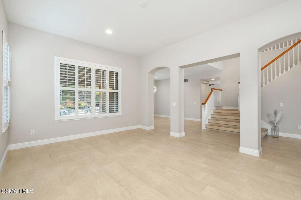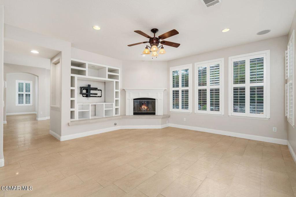 Premium Lot with Views, Space & Style!!! - Welcome to this exceptional residence situated on a premium lot in the prestigious Dos Vientos community, ideally located in the highly desirable Treasures neighborhood. This spacious and beautifully upgraded home offers 4 large bedrooms, 4 baths including a downstairs en-suite, plus a flexible bonus room that can serve as a 5th bedroom, home office, or media space. This home is designed for both comfort and style. Step into a grand entryway that flows into a formal living room and elegant dining room, ideal for entertaining. The partial open-concept layout connects the updated kitchen-featuring stainless steel appliances--to a welcoming family room with a cozy fireplace. Shutters throughout add timeless charm and privacy, while recessed lighting enhances the ambiance. The expansive primary suite includes a large bathroom and walk-in closet and offers stunning views of the surrounding open space, creating a peaceful retreat. A three-car finished garage with built-in cabinetry and shelving provides ample storage and workspace. Step outside to a private and spacious entertainer's backyard, complete with a custom plunge-style pool/spa with a waterfall feature, covered patio, built-in BBQ with refrigerator, and a fire pit. The low-maintenance, water-wise landscaping ensures year-round beauty and ease.