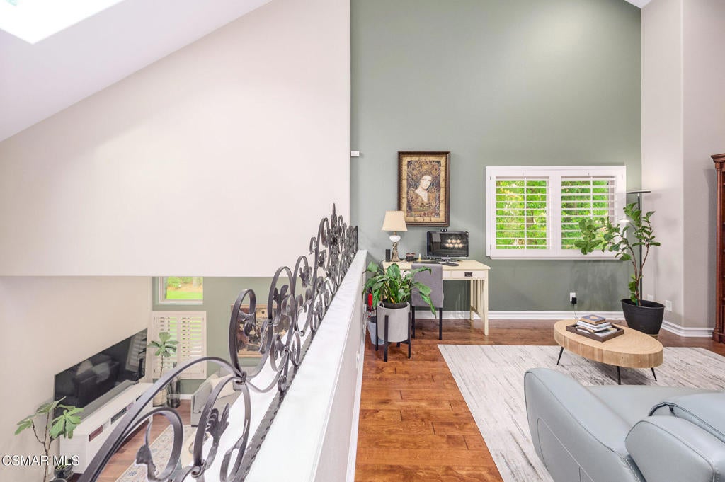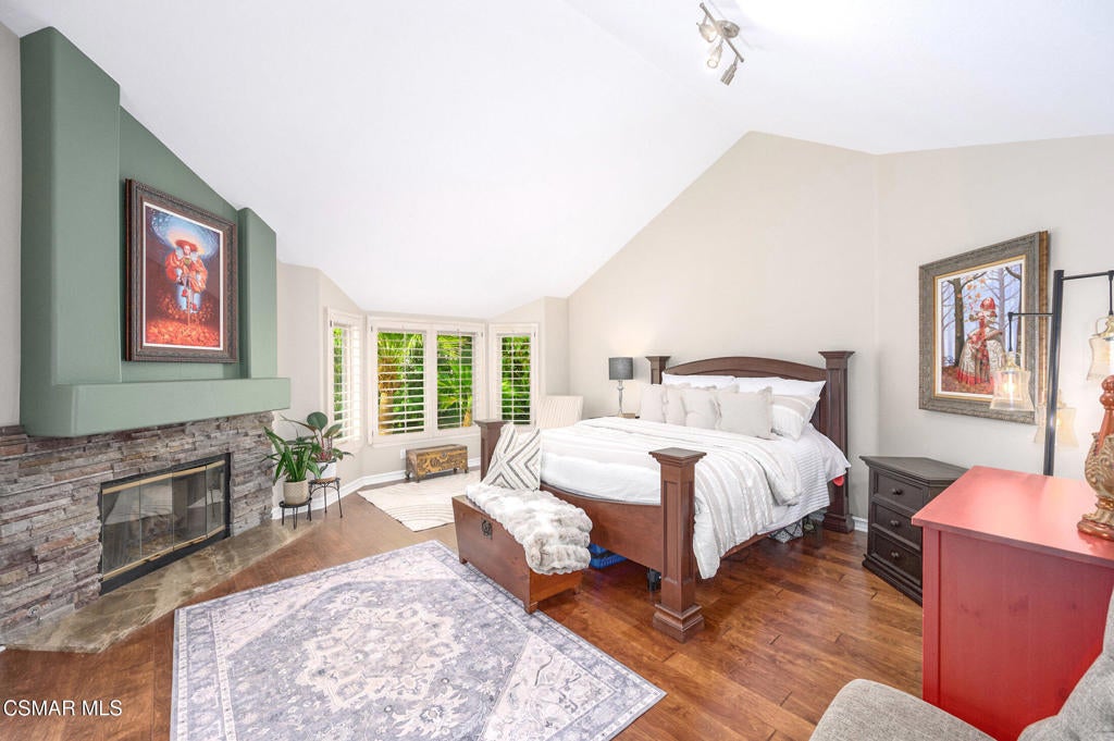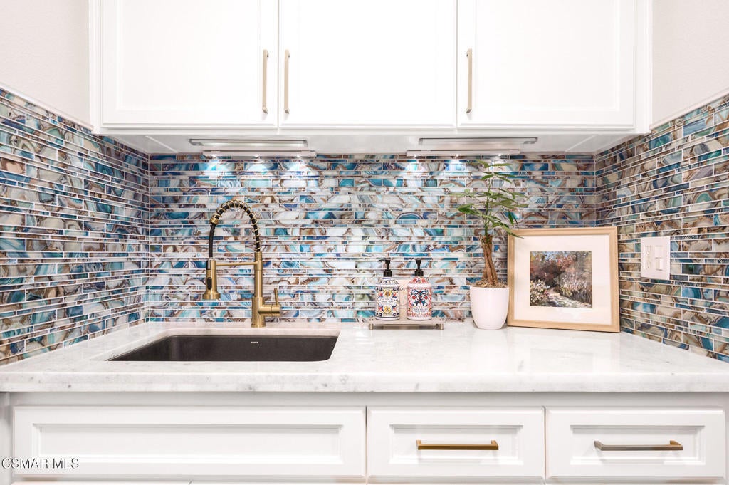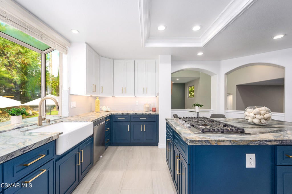 A jewel in Westlake Village nestled on a quiet Cul-de-sac, on over a half-acre lot. This gorgeous home has nearly 3200 square feet, 4 bedrooms, 3 bathrooms, features upgraded appointments throughout, with plenty of room to enjoy both indoor and outdoor living.Enter into this gracious, elegant home with a grand entrance of vaulted ceilings with formal living room highlighted by a beautiful fireplace. The impressive dining room has French doors leading to a huge well-designed backyard. On this level is a newly remodeled chefs' dream kitchen with top-of-the-line LG Studio appliances, modern style farm sink, honed finish quartz counters, and deep blue and white custom cabinetry finished with gold accents. At the heart of the oversized family room, a cozy fireplace is complemented by a stylish wet bar, offering a wonderful setting for entertaining and memorable gatherings. On this level, there is a bedroom/office space, and an elegant bathroom. In addition is a handsome laundry area with quartz counters, deep utility sink and plenty of storage, leading to a 3-car garage equipped with 220 outlet ready to install EVC. On the upper level of this incredible home is 2 ample size rooms sharing a huge bathroom with double sinks, and updated cabinetry with exquisite hardware in black and gold accent. In the primary bedroom, privacy, high ceilings, a warm fireplace, and mountain views. An expansive, spa-inspired bathroom showcases a generous walk-in closet, soaking tub, an oversized shower, and dual sinks for ultimate comfort and convenience. This show stopper home continues outside with a huge lot of over 1/2 an acre. A beautifully laid out area with build-in barbecue, and lots of space to hang out. While you're waiting for the grill to heat up, take your turn on the private putting green. Other features to observe are: Integrated Alexa smart outlets, artificial turf for water conservation, tankless water heater, dual zone AC, and fresh paint inside and out.This area is served by Top Rated Conejo Valley Unified Schools, surrounded by beautiful parks, trails and amazing restaurants.