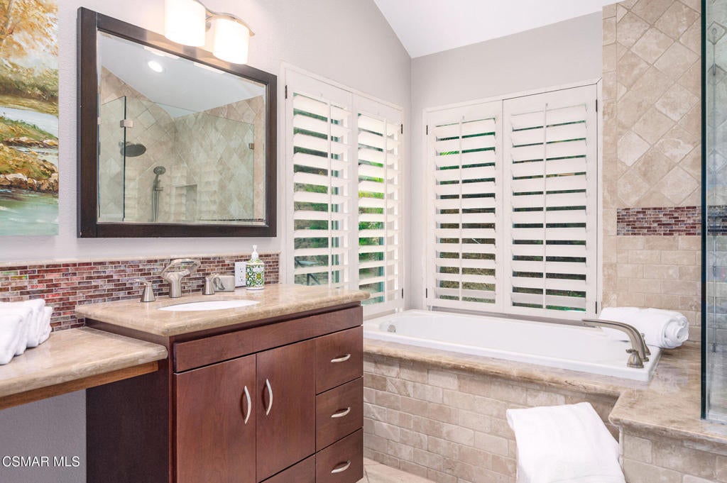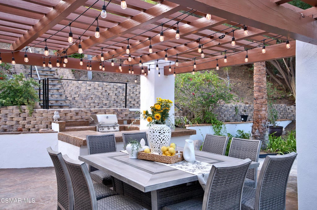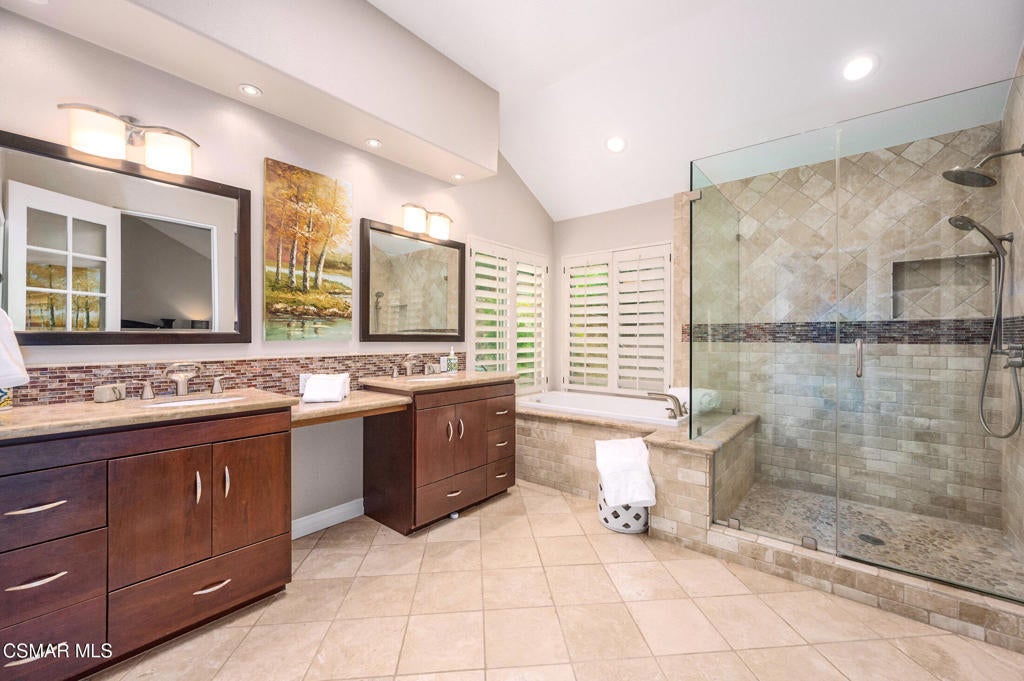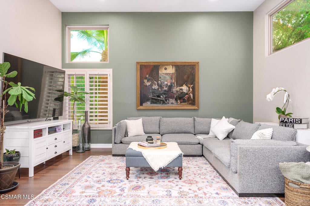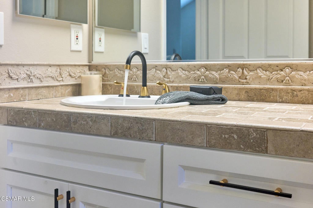 A jewel in Westlake Village nestled on a quiet Cul-de-sac, on over a half-acre lot. This gorgeous home has nearly 3200 square feet, 4 bedrooms, 3 bathrooms, features upgraded appointments throughout, with plenty of room to enjoy both indoor and outdoor living.Enter into this gracious, elegant home with a grand entrance of vaulted ceilings with formal living room highlighted by a beautiful fireplace. The impressive dining room has French doors leading to a huge well-designed backyard. On this level is a newly remodeled chefs' dream kitchen with top-of-the-line LG Studio appliances, modern style farm sink, honed finish quartz counters, and deep blue and white custom cabinetry finished with gold accents. At the heart of the oversized family room, a cozy fireplace is complemented by a stylish wet bar, offering a wonderful setting for entertaining and memorable gatherings. On this level, there is a bedroom/office space, and an elegant bathroom. In addition is a handsome laundry area with quartz counters, deep utility sink and plenty of storage, leading to a 3-car garage equipped with 220 outlet ready to install EVC. On the upper level of this incredible home is 2 ample size rooms sharing a huge bathroom with double sinks, and updated cabinetry with exquisite hardware in black and gold accent. In the primary bedroom, privacy, high ceilings, a warm fireplace, and mountain views. An expansive, spa-inspired bathroom showcases a generous walk-in closet, soaking tub, an oversized shower, and dual sinks for ultimate comfort and convenience. This show stopper home continues outside with a huge lot of over 1/2 an acre. A beautifully laid out area with build-in barbecue, and lots of space to hang out. While you're waiting for the grill to heat up, take your turn on the private putting green. Other features to observe are: Integrated Alexa smart outlets, artificial turf for water conservation, tankless water heater, dual zone AC, and fresh paint inside and out.This area is served by Top Rated Conejo Valley Unified Schools, surrounded by beautiful parks, trails and amazing restaurants.