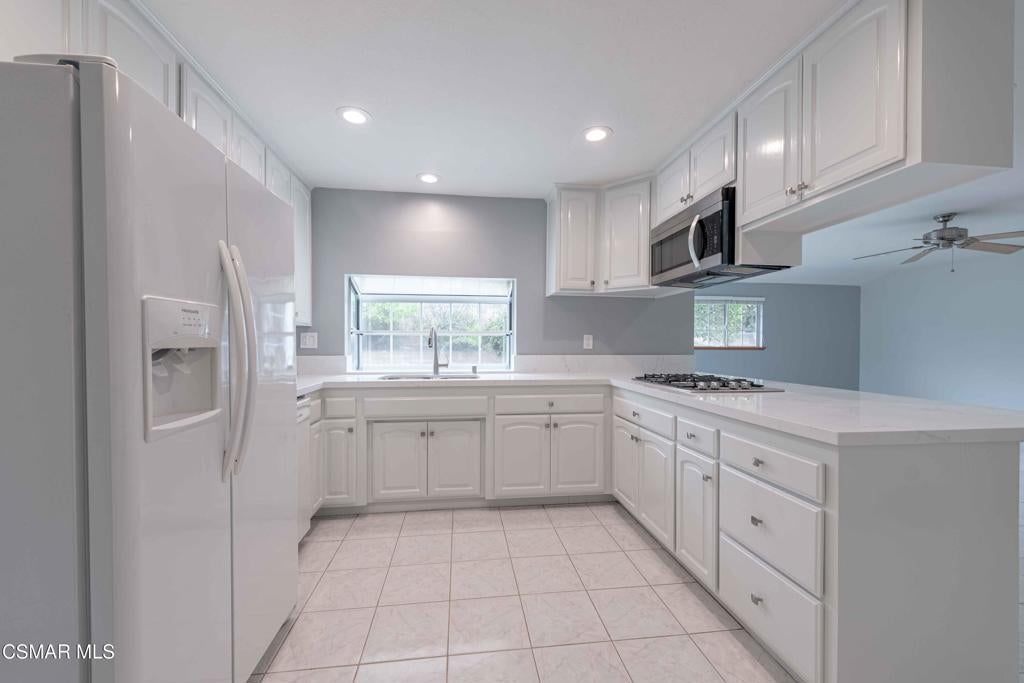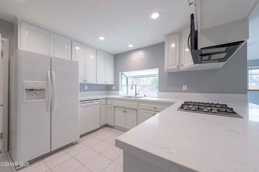 Looking for a beautiful home in a family-oriented neighborhood within the award-winning Las Virgenes Unified School District? This is it! This spacious 5-bedroom, 3-bathroom home in Lake Lindero, Agoura Hills offers everything you've been searching for. With direct access to a 2-car garage (with laundry), this home combines comfort, convenience, and timeless style. The inviting living room features custom crown moulding, built-ins, a cozy fireplace, and a classic mantel--perfect for making lasting memories. At the heart of the home, the updated kitchen shines with pristine quartz countertops, sleek white cabinets, and plenty of storage. It seamlessly opens to the expansive family room, recently remodeled with added space for family gatherings or entertaining guests. A formal dining room with crown moulding and wainscoting flows from the living room and kitchen, and a sliding glass door opens to the backyard oasis--complete with lush grass, fruit trees, and a large patio for outdoor living and entertaining. The main floor includes the formal living and dining rooms, an updated bathroom, and a versatile bedroom--ideal for a guest room, playroom, or home office. Upstairs, you'll find four additional bedrooms and two beautifully updated bathrooms. Window coverings are included with the lease. Enjoy the lifestyle Lake Lindero offers with nearby Lake Lindero Country Club, golf course, pool, and tennis courts. Conveniently located near top schools, scenic hiking, shopping, dining, beaches, and easy freeway access--this is the perfect place to call home.(Some photos have been virtually staged)