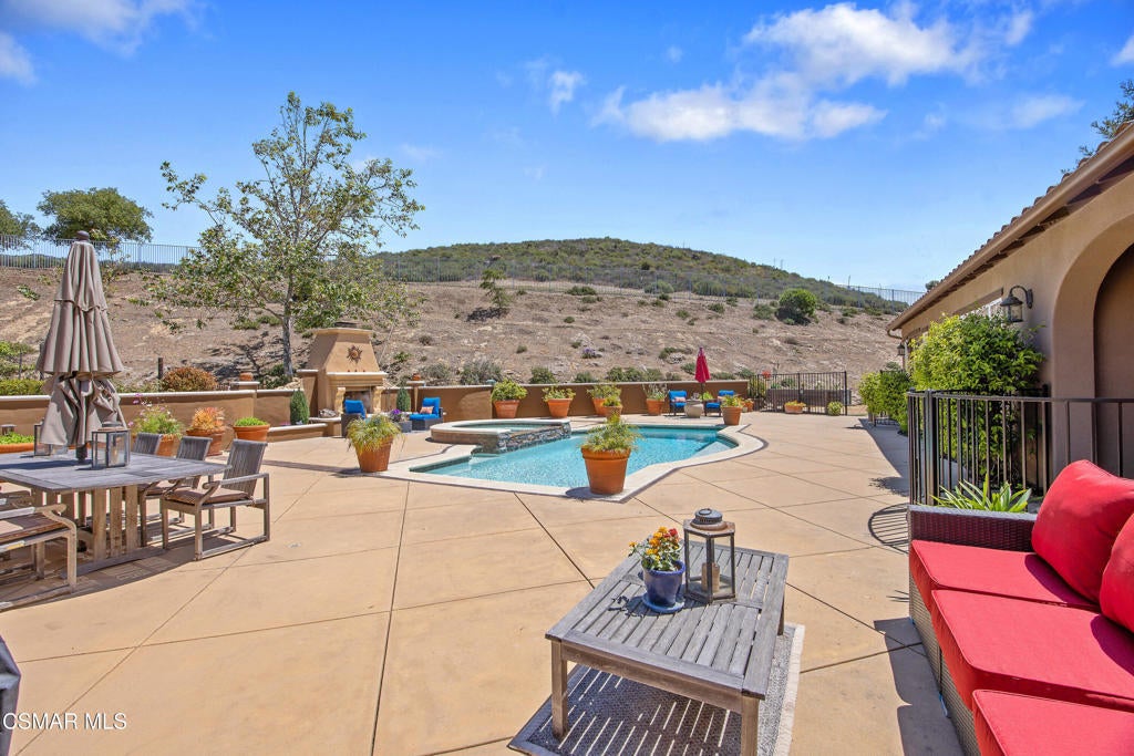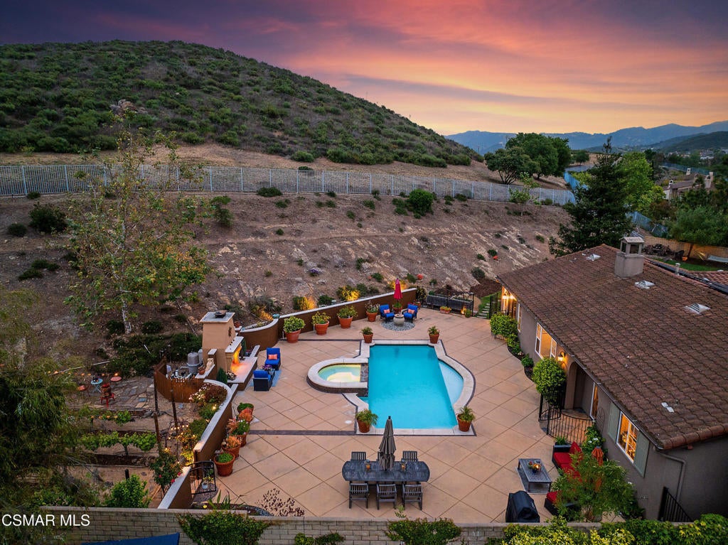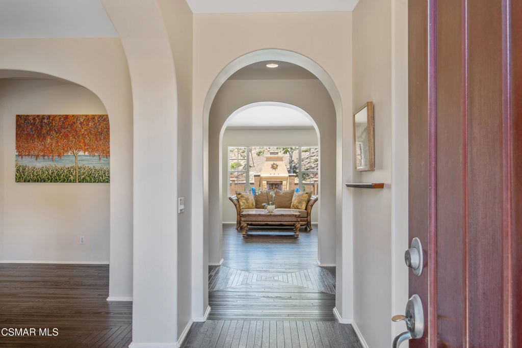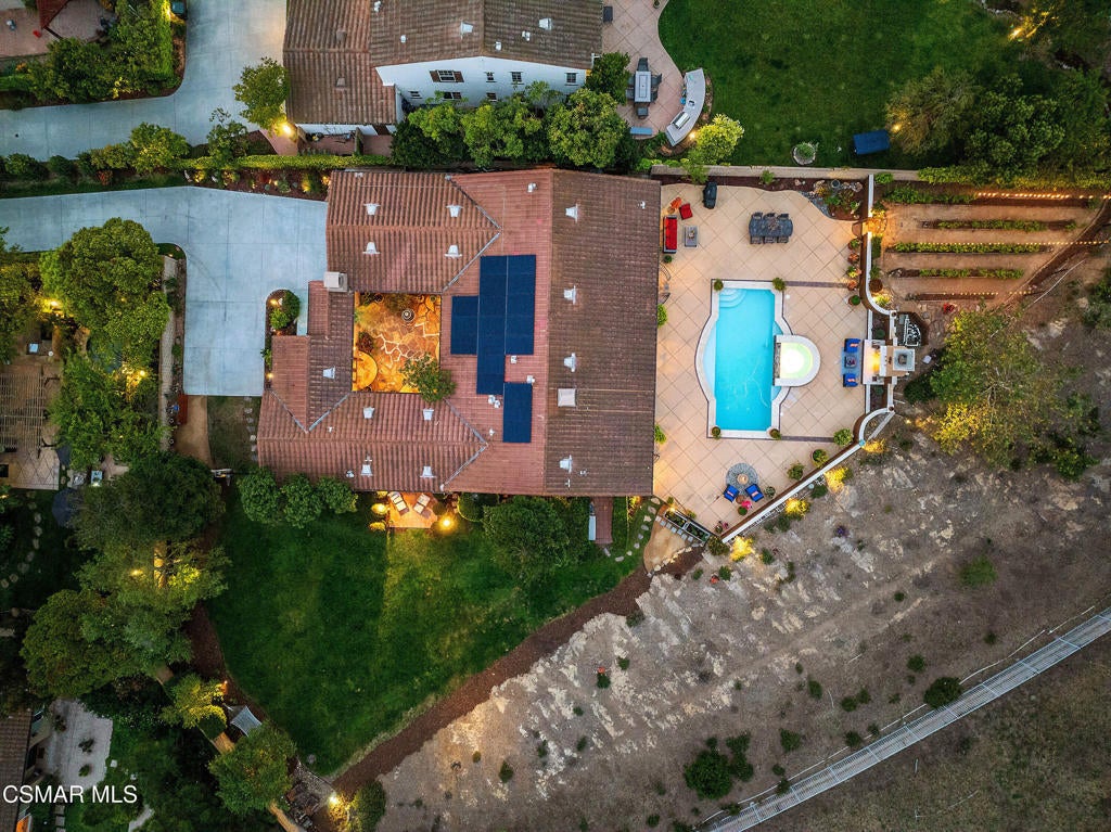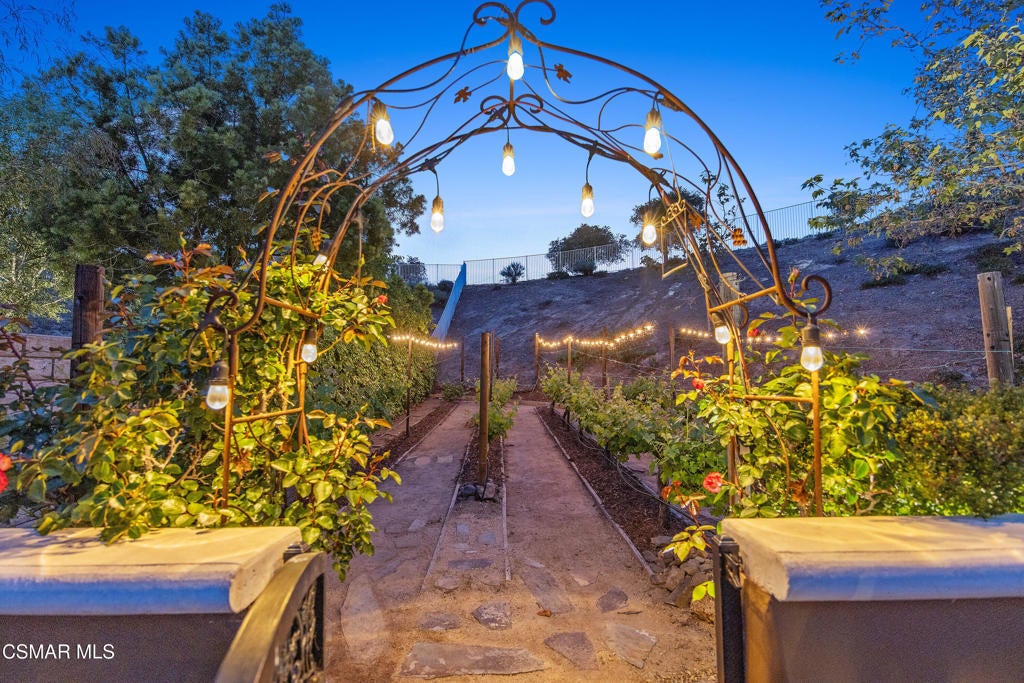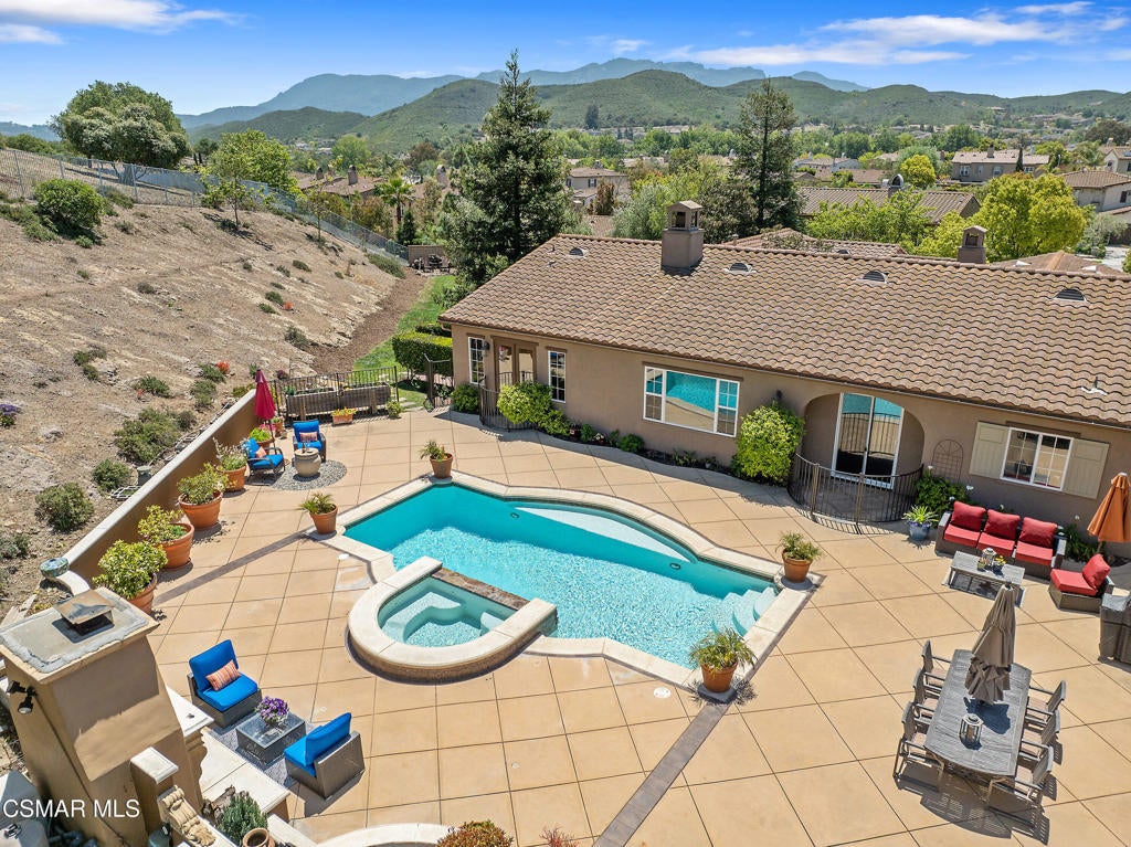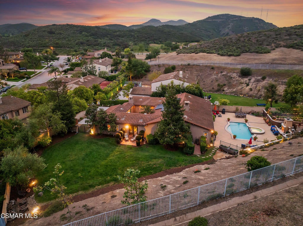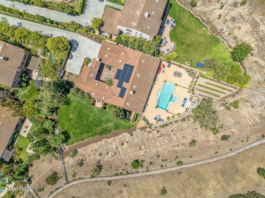 Exclusive courtyard single-story residence offering an extraordinary blend of casual luxury, privacy, and craftsmanship. Set on a premier elevated flag lot with a private vineyard and backing to peaceful open space, the property is a true sanctuary--perfectly positioned to capture sweeping mountain vistas and coastal breezes. A custom distressed wood and wrought iron entry door sets the tone for the rich architectural detail. A flagstone courtyard with lush landscaping and a tranquil fountain provides an elegant first impression. Inside, timeless design meets modern sophistication with hand-finished hardwood flooring throughout the main living areas of the home, smooth coat walls and ceilings, and artisan wrought iron light fixtures that add character and warmth. The chef's kitchen is fully customized with stainless steel appliances, tailored cabinetry, large island, breakfast area, walk-in pantry and kitchen office space. This flows seamlessly into open-concept living space with picture window, fireplace and vaulted ceiling, perfect for both relaxed living and stylish entertaining. Enter through wide sweeping arches into the inviting dining room with vaulted ceilings and distinctive wood designed floors. The secluded primary bedroom is a true retreat offering vaulted ceilings, French doors, and primary bath with dual vanity, soaking tub, spacious shower and custom walk-in closet. The hallway leading to the secondary bedrooms and several of the bedrooms have French doors for an abundance of natural light and coastal breeze. The separated secondary bedrooms boast pavers, wood blinds and spacious closets. Outside, the sprawling private yard is nothing short of exceptional--featuring a magnificent pool and spa, an outdoor fireplace, and your own private vineyard. The vineyard has been meticulously maintained and manicured to achieve the best possible grape production. The expansive lawn area framed with majestic redwood trees, offers views of the surrounding mountains, natural beauty and open space. Whether hosting guests or enjoying a quiet sunset, this setting offers a truly elevated outdoor experience. The former 4-car tandem garage is now a 2-car garage and converted media room, creating 3,000 + sqft of living space. The recently installed solar panels increase the desired energy independence. Additional highlights include, individual laundry room with utility sink, powder room, garage epoxy floors and built-in storage. The property is close to award winning schools, terrific parks and incredible hiking and biking trails. Experience and enjoy this truly unique and special property.