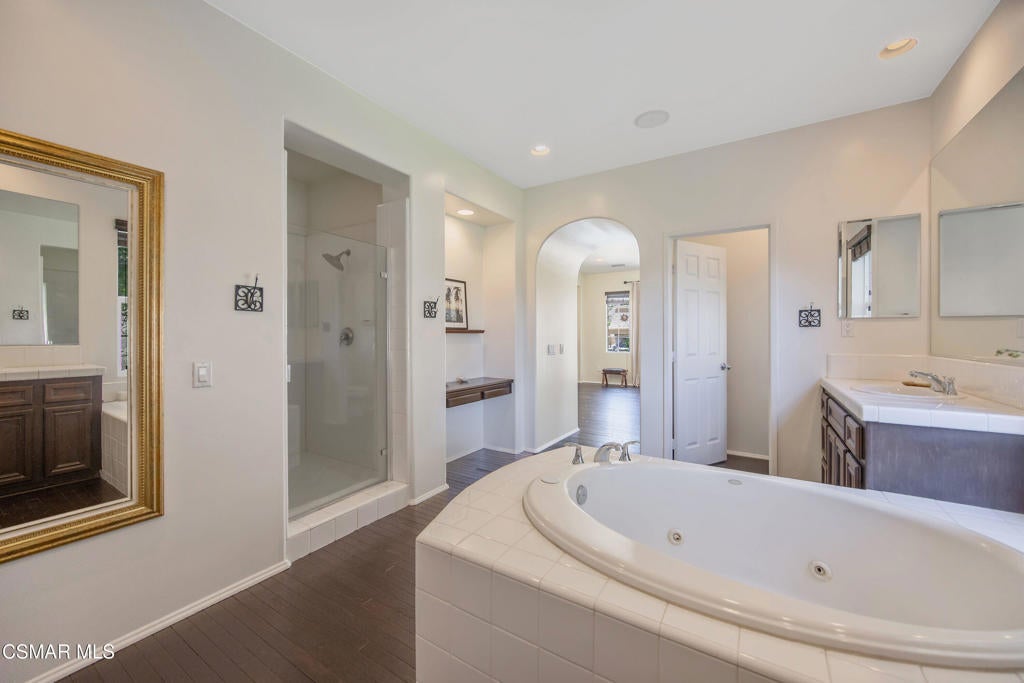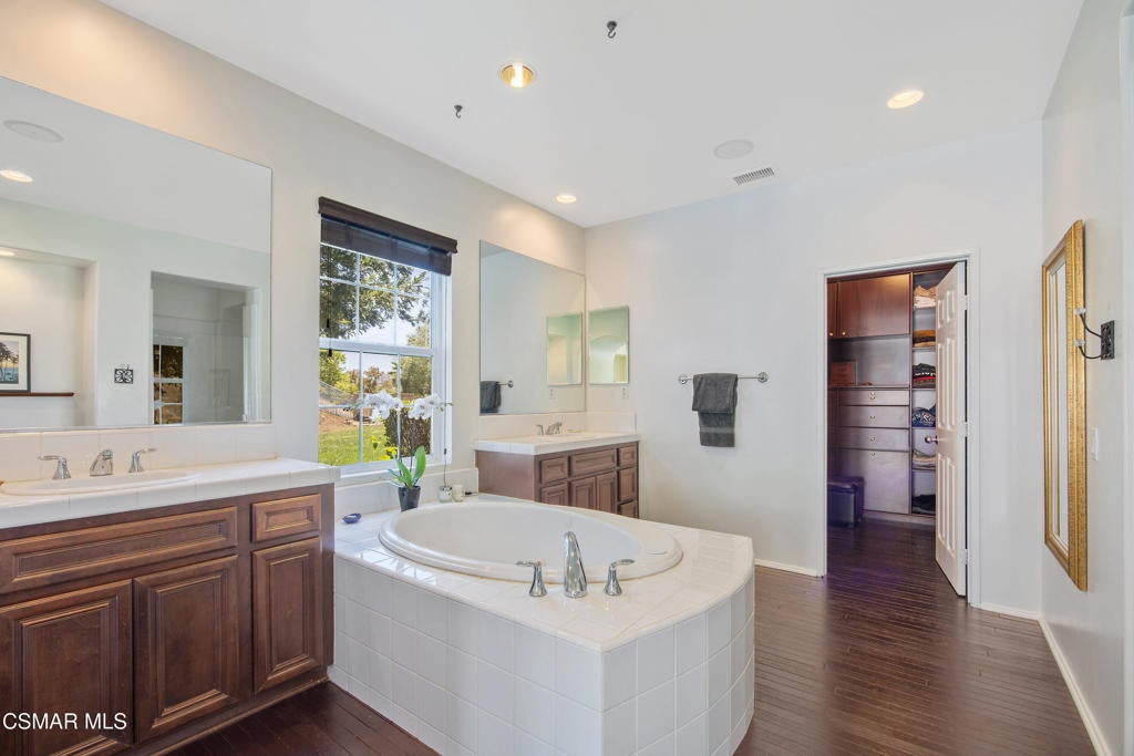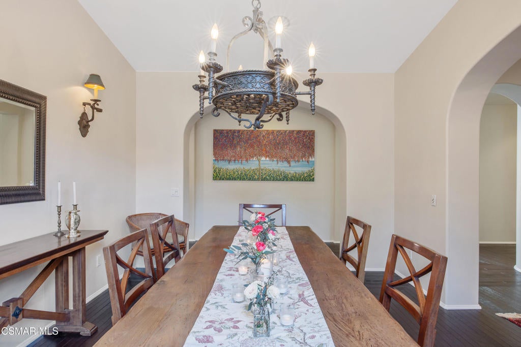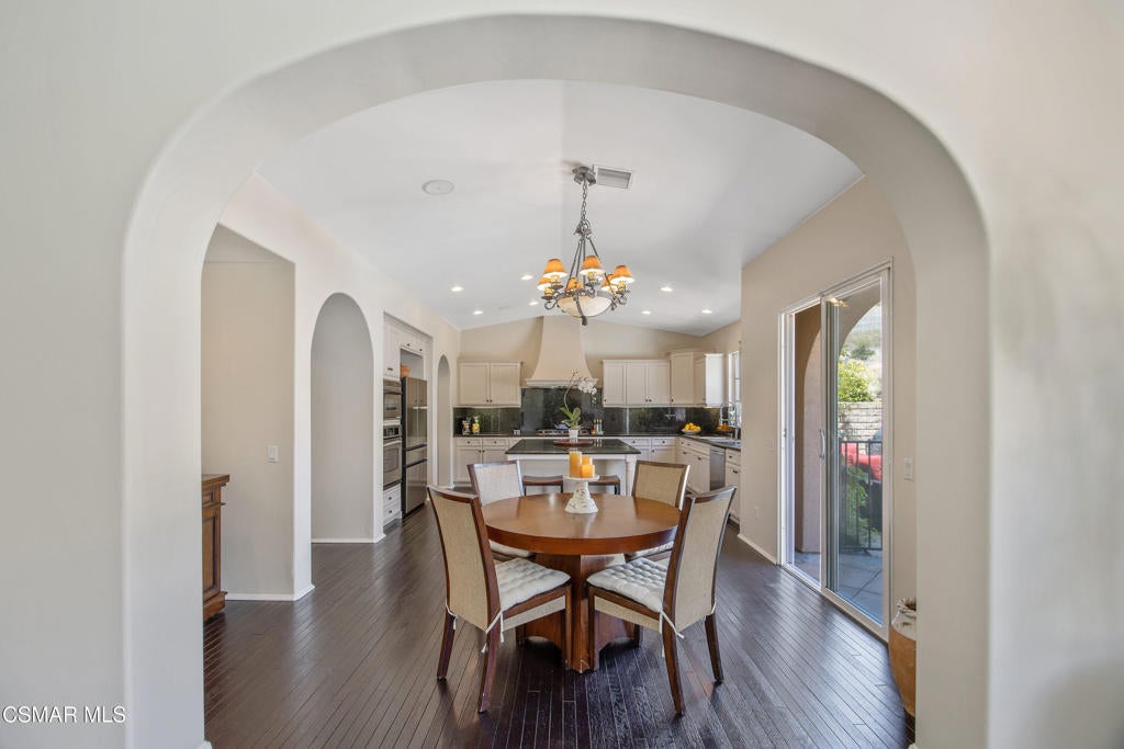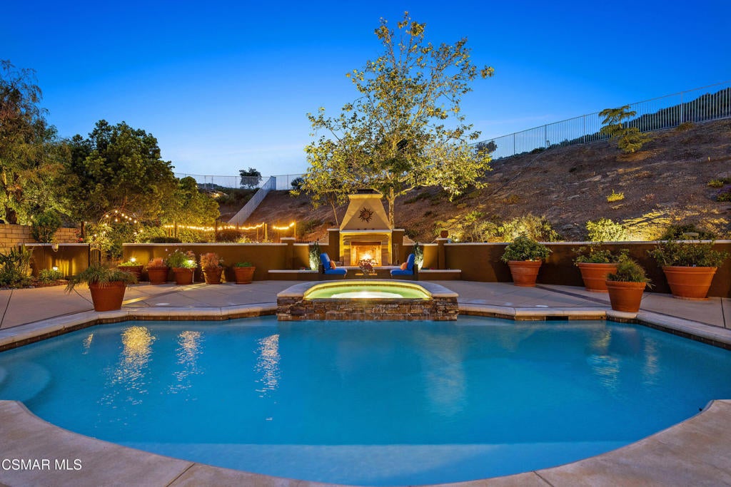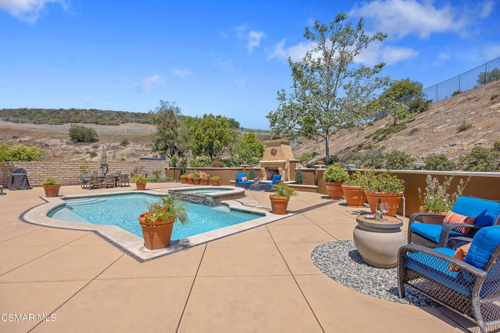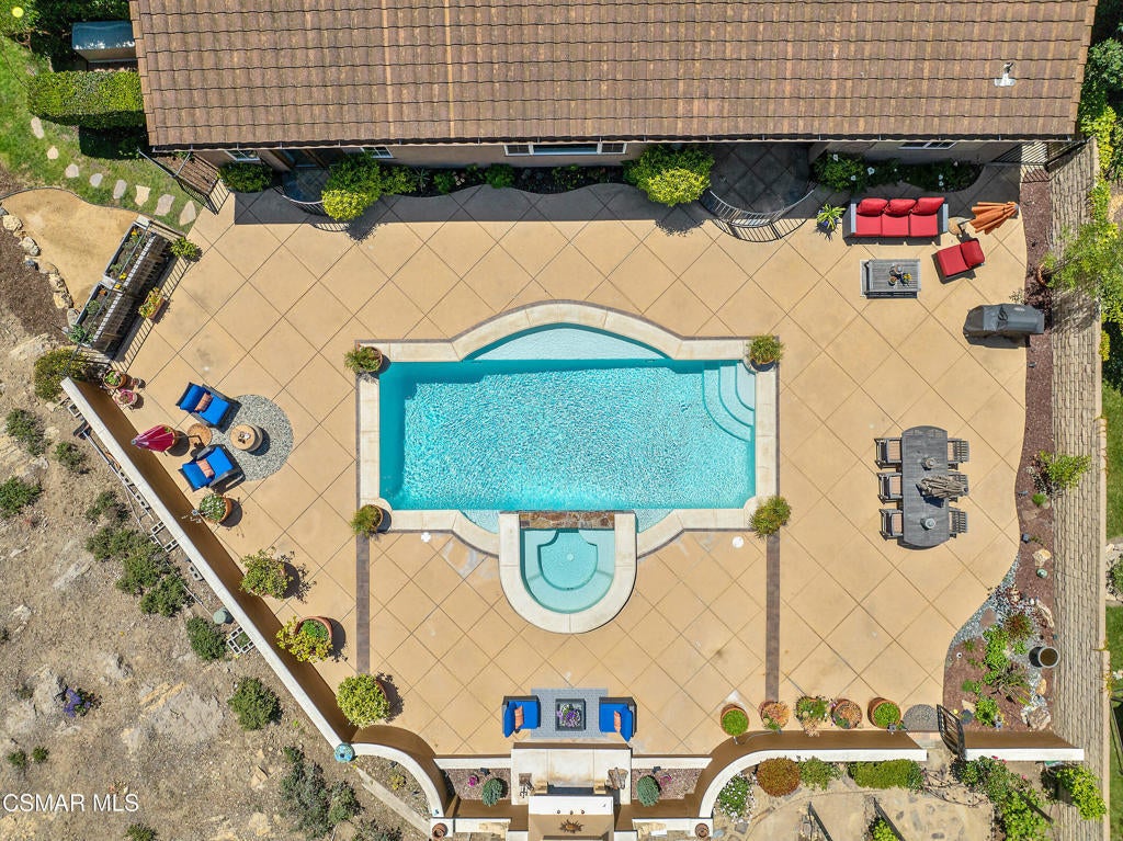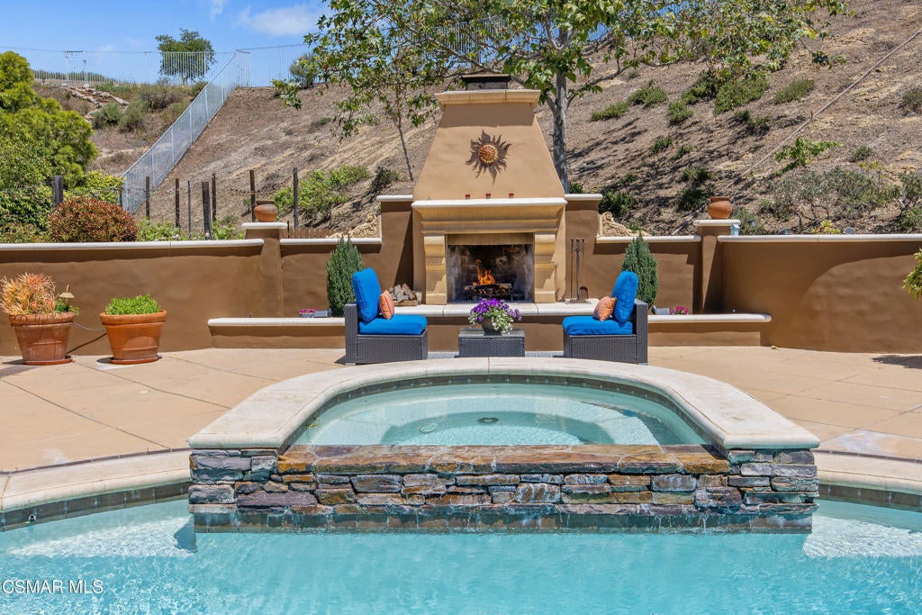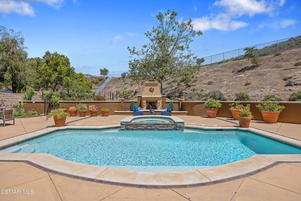 Exclusive courtyard single-story residence offering an extraordinary blend of casual luxury, privacy, and craftsmanship. Set on a premier elevated flag lot with a private vineyard and backing to peaceful open space, the property is a true sanctuary--perfectly positioned to capture sweeping mountain vistas and coastal breezes. A custom distressed wood and wrought iron entry door sets the tone for the rich architectural detail. A flagstone courtyard with lush landscaping and a tranquil fountain provides an elegant first impression. Inside, timeless design meets modern sophistication with hand-finished hardwood flooring throughout the main living areas of the home, smooth coat walls and ceilings, and artisan wrought iron light fixtures that add character and warmth. The chef's kitchen is fully customized with stainless steel appliances, tailored cabinetry, large island, breakfast area, walk-in pantry and kitchen office space. This flows seamlessly into open-concept living space with picture window, fireplace and vaulted ceiling, perfect for both relaxed living and stylish entertaining. Enter through wide sweeping arches into the inviting dining room with vaulted ceilings and distinctive wood designed floors. The secluded primary bedroom is a true retreat offering vaulted ceilings, French doors, and primary bath with dual vanity, soaking tub, spacious shower and custom walk-in closet. The hallway leading to the secondary bedrooms and several of the bedrooms have French doors for an abundance of natural light and coastal breeze. The separated secondary bedrooms boast pavers, wood blinds and spacious closets. Outside, the sprawling private yard is nothing short of exceptional--featuring a magnificent pool and spa, an outdoor fireplace, and your own private vineyard. The vineyard has been meticulously maintained and manicured to achieve the best possible grape production. The expansive lawn area framed with majestic redwood trees, offers views of the surrounding mountains, natural beauty and open space. Whether hosting guests or enjoying a quiet sunset, this setting offers a truly elevated outdoor experience. The former 4-car tandem garage is now a 2-car garage and converted media room, creating 3,000 + sqft of living space. The recently installed solar panels increase the desired energy independence. Additional highlights include, individual laundry room with utility sink, powder room, garage epoxy floors and built-in storage. The property is close to award winning schools, terrific parks and incredible hiking and biking trails. Experience and enjoy this truly unique and special property.