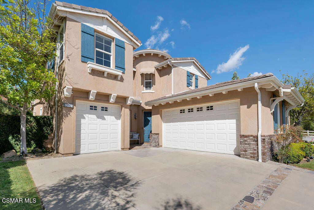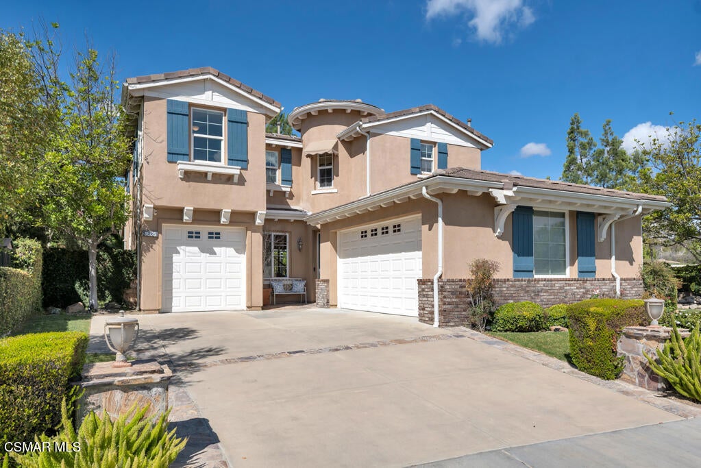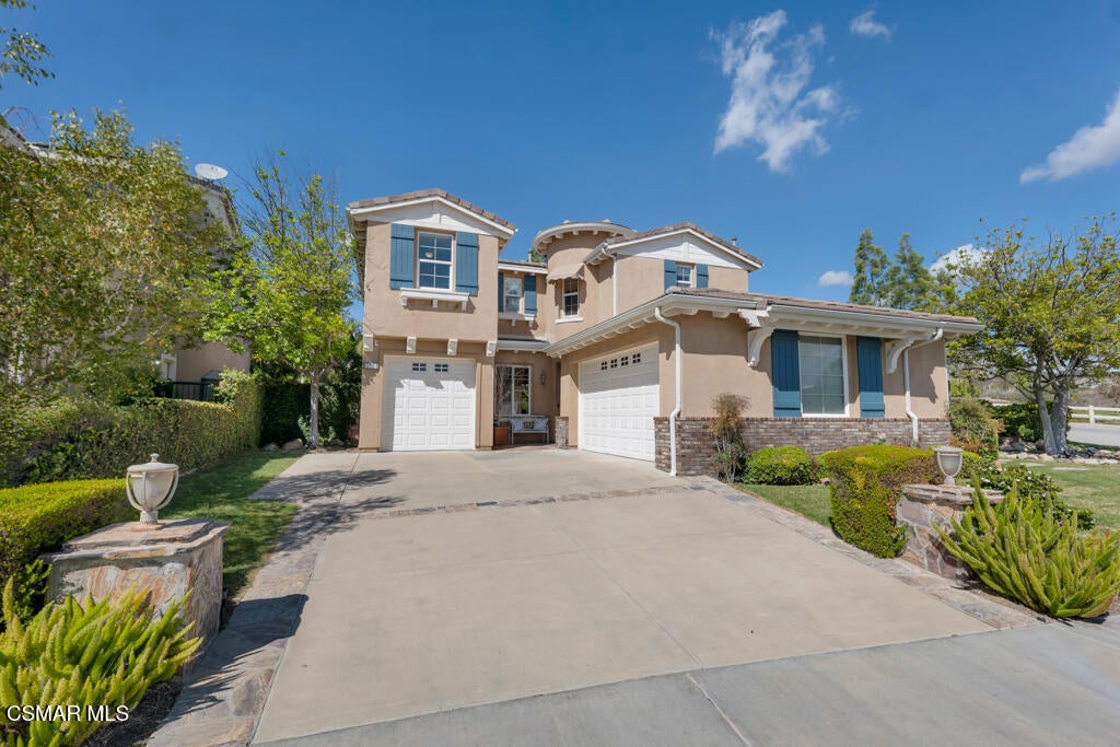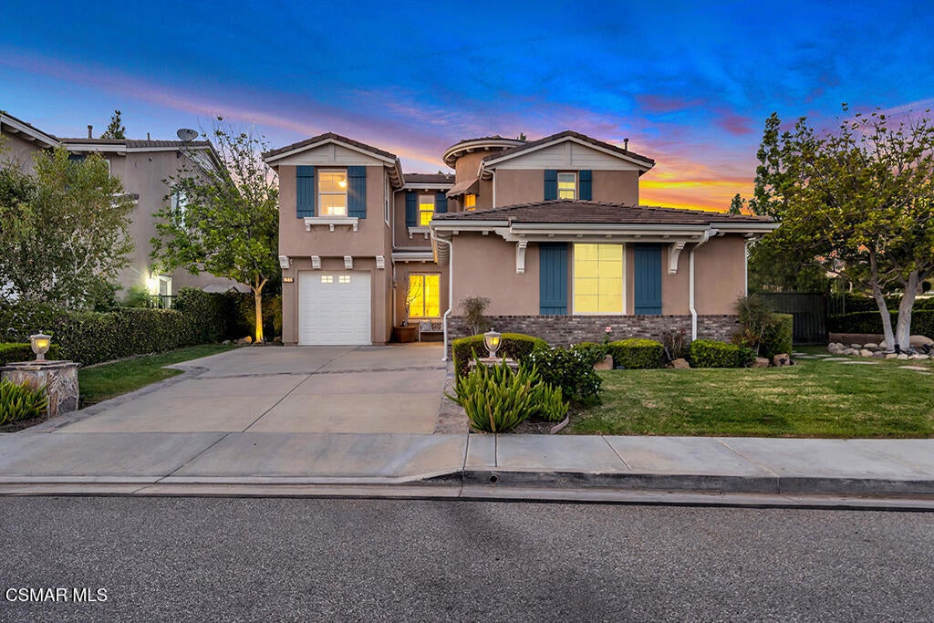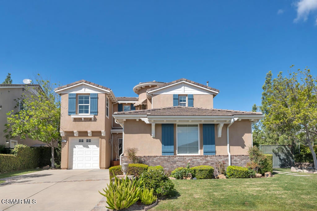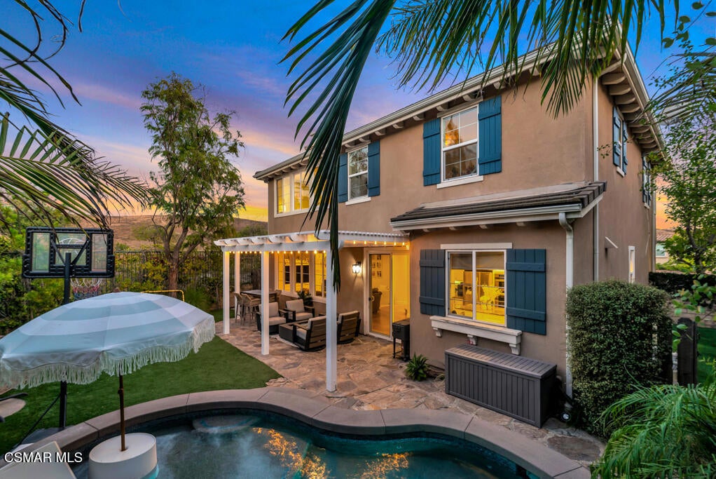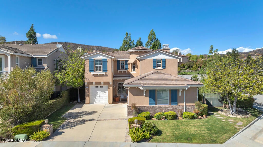 Stunning Turn-Key Home in the Desirable Tioga Community of Big Sky! Welcome home to this impeccably maintained and thoughtfully upgraded property situated in the highly sought-after Tioga Community of Big Sky. Guests are greeted by a charming foyer that opens to a bright, open-concept floor plan featuring fresh interior paint and wood-like flooring that flows seamlessly throughout the main level.The gourmet kitchen strikes the perfect balance of style and functionality, showcasing gleaming granite countertops, crisp white cabinetry with designer gold hardware, an island, pantry, and professional-grade stainless steel appliances. Just off the kitchen is a convenient office station, perfect for managing household tasks or working from home. The adjoining family room is warm and inviting, highlighted by a cozy fireplace, built-in media center, and expansive windows that bathe the space in natural light while offering beautiful backyard views.Upstairs, the primary suite is spacious and serene, featuring a spa-inspired bathroom with granite countertops, travertine flooring, an oversized jacuzzi soaking tub, lovely cabinetry with designer hardware, large shower, dual vanities, and a custom-designed walk-in closet with built-ins. The upper level also includes a second work-from-home office station, a convenient laundry room with built-in cabinetry and sink, and generous secondary bedrooms, most with walk-in closets.The elegant dining room features built-in seating and designer accents, providing a perfect setting for entertaining guests or enjoying family gatherings. Additional highlights include a three-car garage, added interior lighting, custom window treatments and a long driveway offering ample parking.Step outside to your private backyard oasis, where relaxation and entertaining come together. Enjoy the oversized ''spool'' (spa/pool combination) with Pebble Tec finish, stacked stone accents, Baja shelf, and tranquil rock waterfall. A covered patio creates the perfect space for outdoor dining or lounging, surrounded by beautifully designed drought-tolerant landscaping with high-quality artificial turf for year-round beauty and low maintenance.Located on a private corner lot just steps from scenic walking, hiking, and biking trails, this exceptional Big Sky residence offers the perfect blend of luxury, comfort, and California outdoor living.
