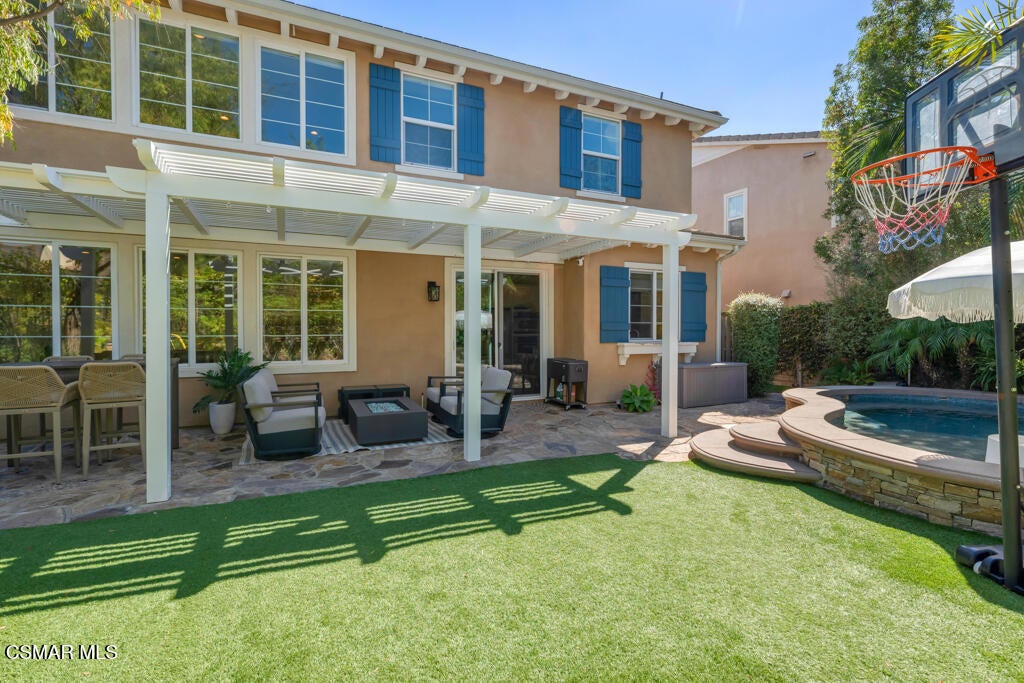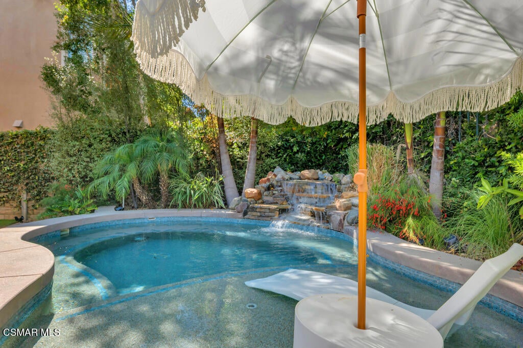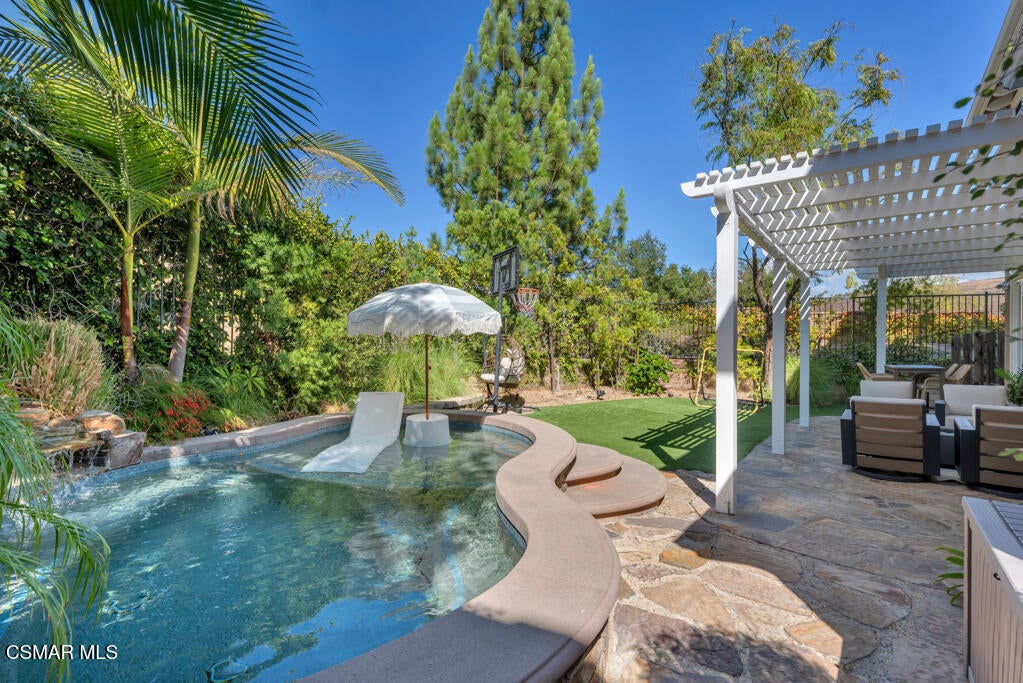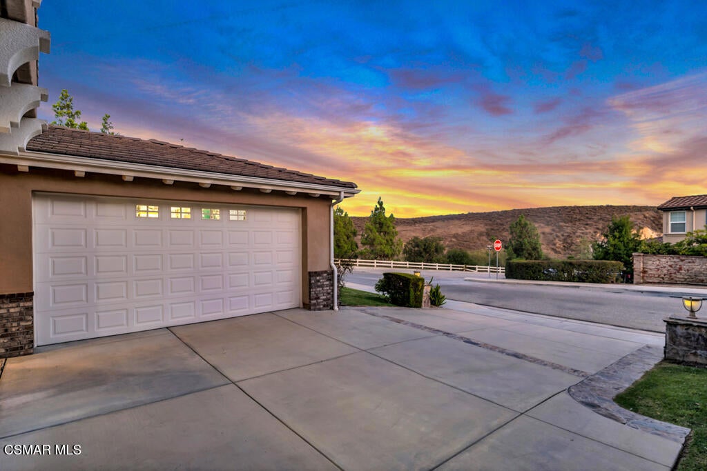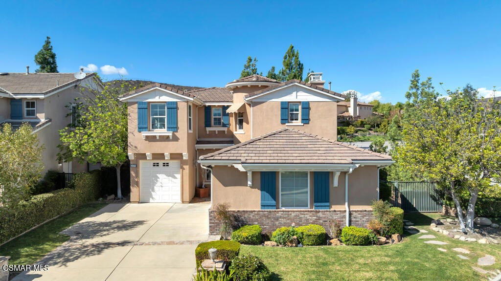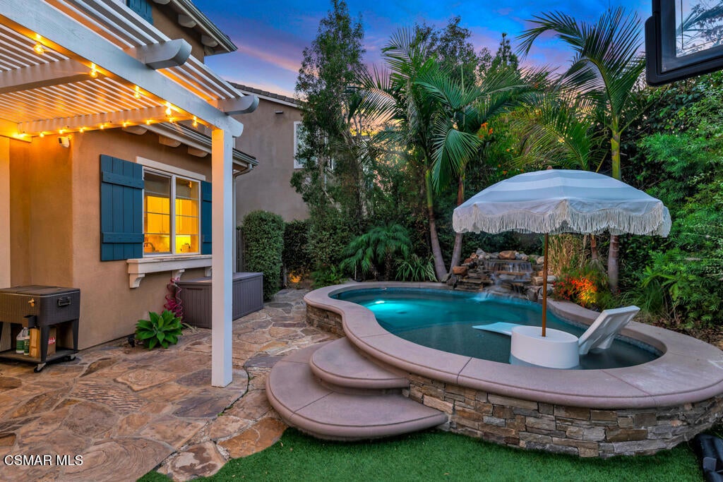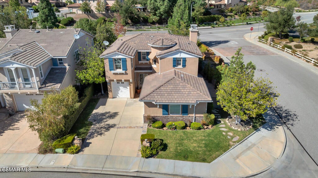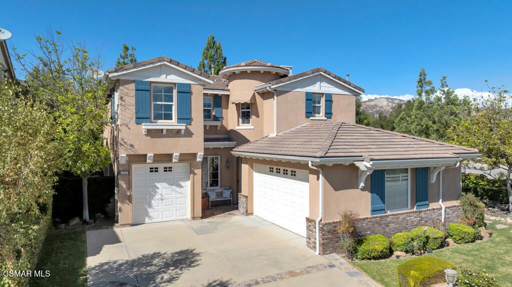Stunning Turn-Key Home in the Desirable Tioga Community of Big Sky! Welcome home to this impeccably maintained and thoughtfully upgraded property situated in the highly sought-after Tioga Community of Big Sky. Guests are greeted by a charming foyer that opens to a bright, open-concept floor plan featuring fresh interior paint and wood-like flooring that flows seamlessly throughout the main level.The gourmet kitchen strikes the perfect balance of style and functionality, showcasing gleaming granite countertops, crisp white cabinetry with designer gold hardware, an island, pantry, and professional-grade stainless steel appliances. Just off the kitchen is a convenient office station, perfect for managing household tasks or working from home. The adjoining family room is warm and inviting, highlighted by a cozy fireplace, built-in media center, and expansive windows that bathe the space in natural light while offering beautiful backyard views.Upstairs, the primary suite is spacious and serene, featuring a spa-inspired bathroom with granite countertops, travertine flooring, an oversized jacuzzi soaking tub, lovely cabinetry with designer hardware, large shower, dual vanities, and a custom-designed walk-in closet with built-ins. The upper level also includes a second work-from-home office station, a convenient laundry room with built-in cabinetry and sink, and generous secondary bedrooms, most with walk-in closets.The elegant dining room features built-in seating and designer accents, providing a perfect setting for entertaining guests or enjoying family gatherings. Additional highlights include a three-car garage, added interior lighting, custom window treatments and a long driveway offering ample parking.Step outside to your private backyard oasis, where relaxation and entertaining come together. Enjoy the oversized ''spool'' (spa/pool combination) with Pebble Tec finish, stacked stone accents, Baja shelf, and tranquil rock waterfall. A covered patio creates the perfect space for outdoor dining or lounging, surrounded by beautifully designed drought-tolerant landscaping with high-quality artificial turf for year-round beauty and low maintenance.Located on a private corner lot just steps from scenic walking, hiking, and biking trails, this exceptional Big Sky residence offers the perfect blend of luxury, comfort, and California outdoor living.