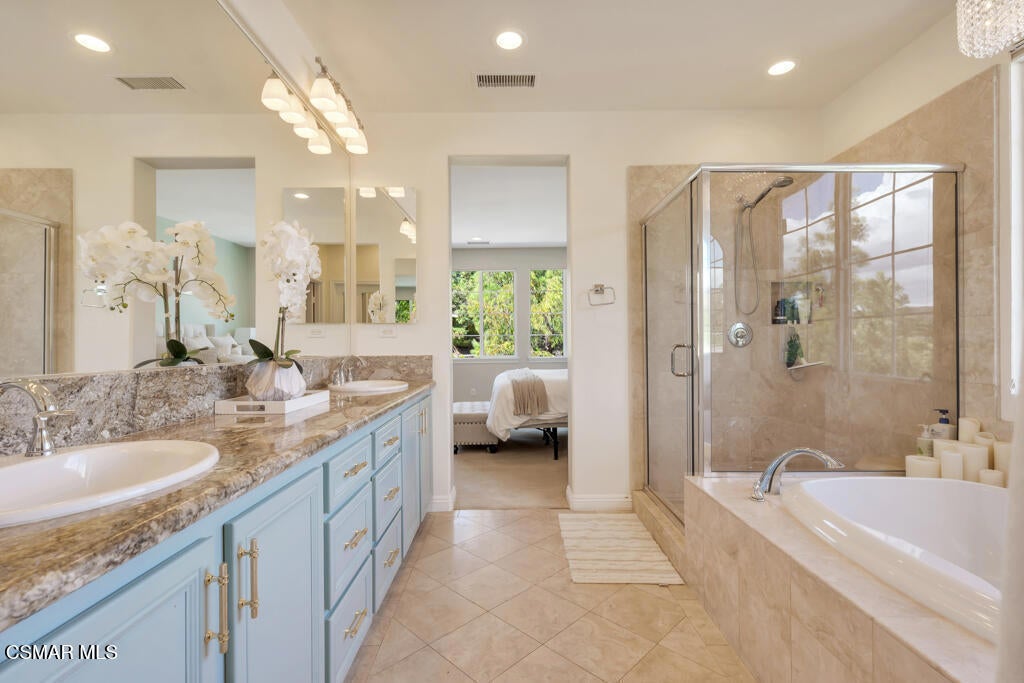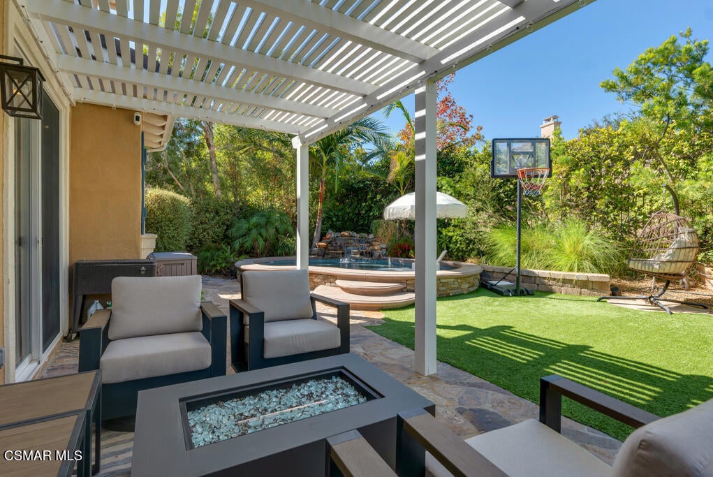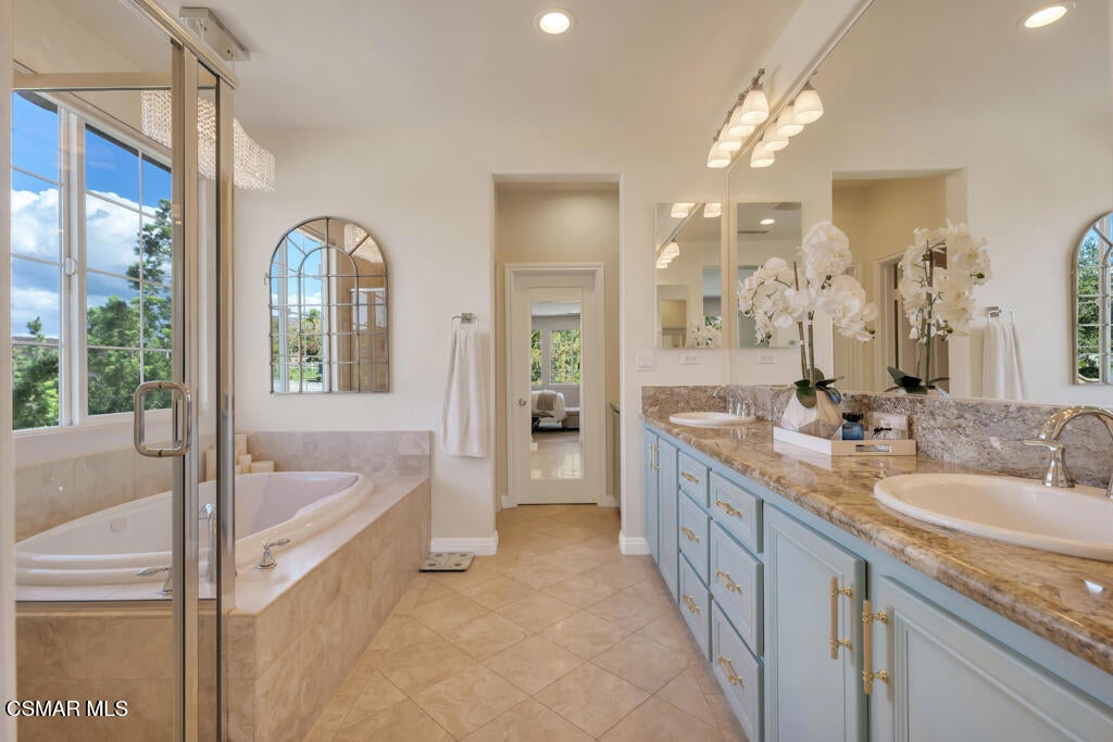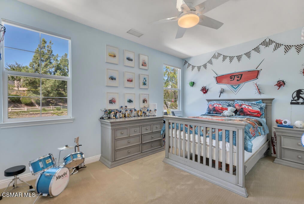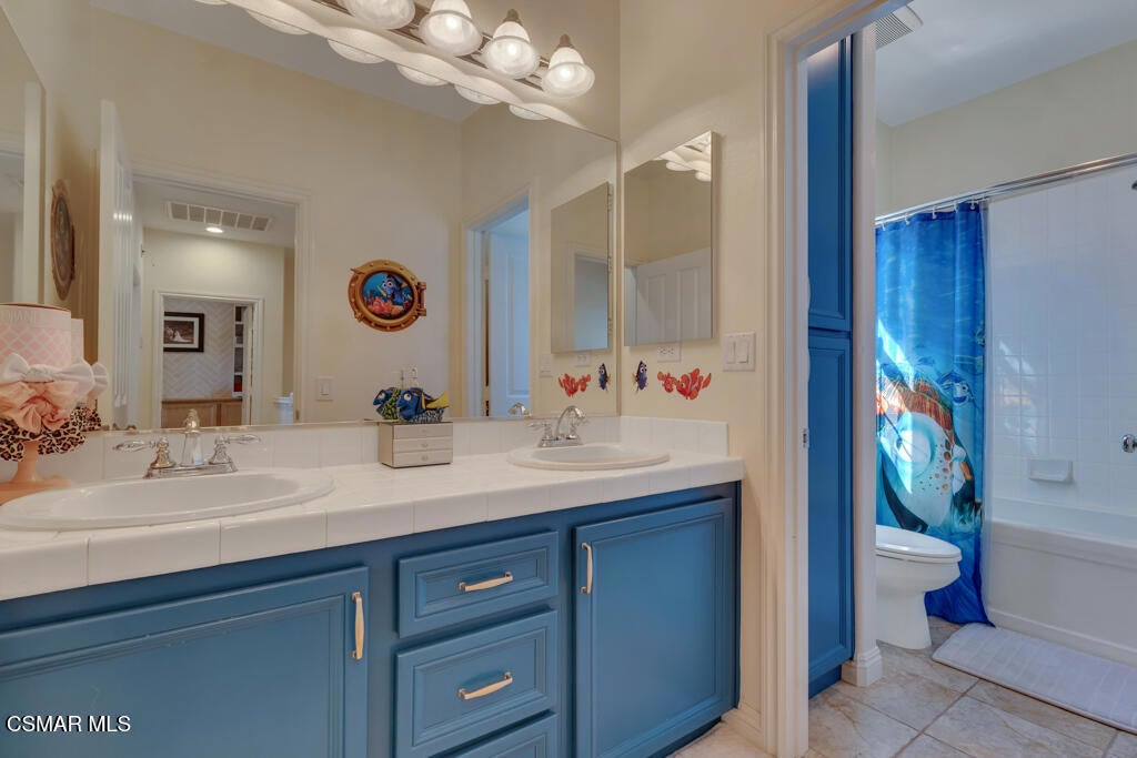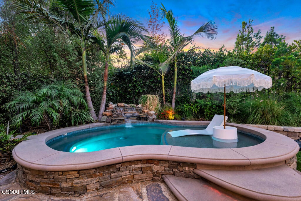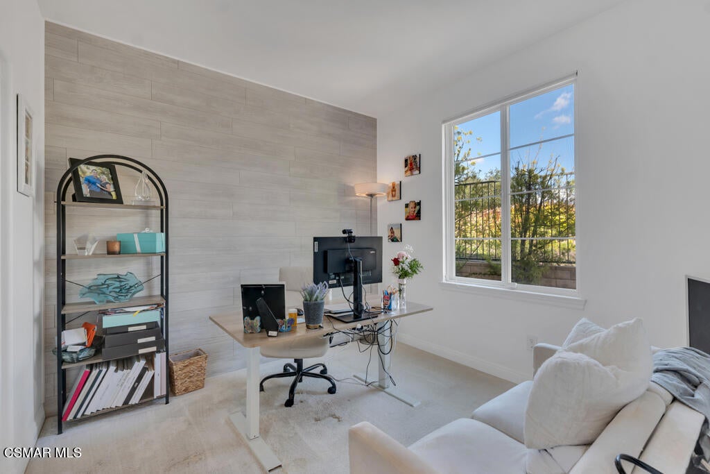 Stunning Turn-Key Home in the Desirable Tioga Community of Big Sky! Welcome home to this impeccably maintained and thoughtfully upgraded property situated in the highly sought-after Tioga Community of Big Sky. Guests are greeted by a charming foyer that opens to a bright, open-concept floor plan featuring fresh interior paint and wood-like flooring that flows seamlessly throughout the main level.The gourmet kitchen strikes the perfect balance of style and functionality, showcasing gleaming granite countertops, crisp white cabinetry with designer gold hardware, an island, pantry, and professional-grade stainless steel appliances. Just off the kitchen is a convenient office station, perfect for managing household tasks or working from home. The adjoining family room is warm and inviting, highlighted by a cozy fireplace, built-in media center, and expansive windows that bathe the space in natural light while offering beautiful backyard views.Upstairs, the primary suite is spacious and serene, featuring a spa-inspired bathroom with granite countertops, travertine flooring, an oversized jacuzzi soaking tub, lovely cabinetry with designer hardware, large shower, dual vanities, and a custom-designed walk-in closet with built-ins. The upper level also includes a second work-from-home office station, a convenient laundry room with built-in cabinetry and sink, and generous secondary bedrooms, most with walk-in closets.The elegant dining room features built-in seating and designer accents, providing a perfect setting for entertaining guests or enjoying family gatherings. Additional highlights include a three-car garage, added interior lighting, custom window treatments and a long driveway offering ample parking.Step outside to your private backyard oasis, where relaxation and entertaining come together. Enjoy the oversized ''spool'' (spa/pool combination) with Pebble Tec finish, stacked stone accents, Baja shelf, and tranquil rock waterfall. A covered patio creates the perfect space for outdoor dining or lounging, surrounded by beautifully designed drought-tolerant landscaping with high-quality artificial turf for year-round beauty and low maintenance.Located on a private corner lot just steps from scenic walking, hiking, and biking trails, this exceptional Big Sky residence offers the perfect blend of luxury, comfort, and California outdoor living.