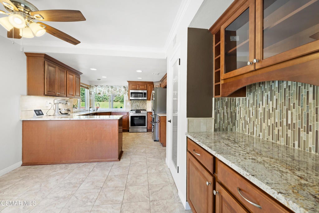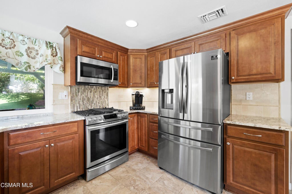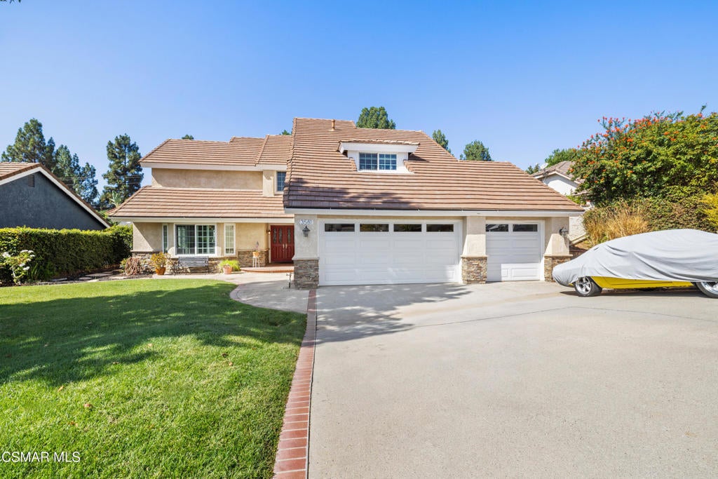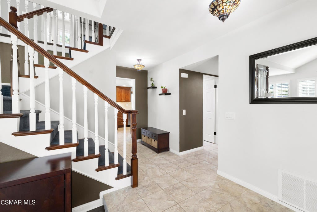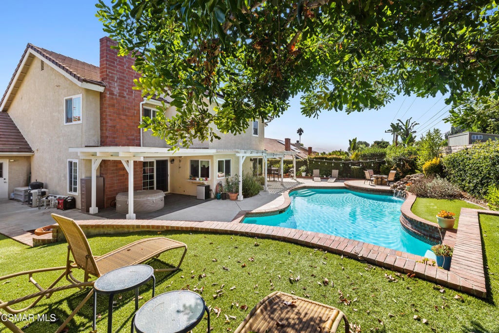 SoCal Living at Its Finest - Private Pool, Owned Solar & Prime Location! Welcome to your dream home tucked away on a quiet cul-de-sac in one of Simi Valley's most desirable neighborhoods! This beautifully maintained, move-in ready 4 bedroom, 2.5 bath residence offers the perfect blend of comfort, style, and energy efficiency. Step inside to gleaming wood floors, soaring beamed ceilings, plantation shutters, and an abundance of natural light. The inviting living room features a charming bay window, while the formal dining area is ideal for entertaining. A cozy family room with a fireplace and wet bar creates the perfect gathering space. The remodeled chef's kitchen is a standout, showcasing granite countertops, a designer tile backsplash, stainless steel appliances, walk-in pantry, and a sunny breakfast nook. Upstairs, the spacious primary suite offers a true retreat with cathedral ceilings, a second fireplace, dual sinks, soaking tub, separate shower, gorgeous tile floors, and a large walk-in closet. Enjoy the ultimate Southern California lifestyle in your private backyard oasis--complete with a sparkling pool and waterfall, separate above-ground spa, fire-pit, and two covered patios for outdoor living and entertaining. Additional features include: Direct access 3-car garage, owned solar system (18 panels, 8 kW) with ultra-low utility bills, copper plumbing, NEST thermostat & RING security system, dual-pane windows and doors, tankless water heater, Central HVAC, recessed lighting, abundance of storage, plus exterior with new stone siding and stucco. This home truly has it all - location, upgrades, energy savings, and space to relax. Properties in this neighborhood are rarely available--don't miss your chance!