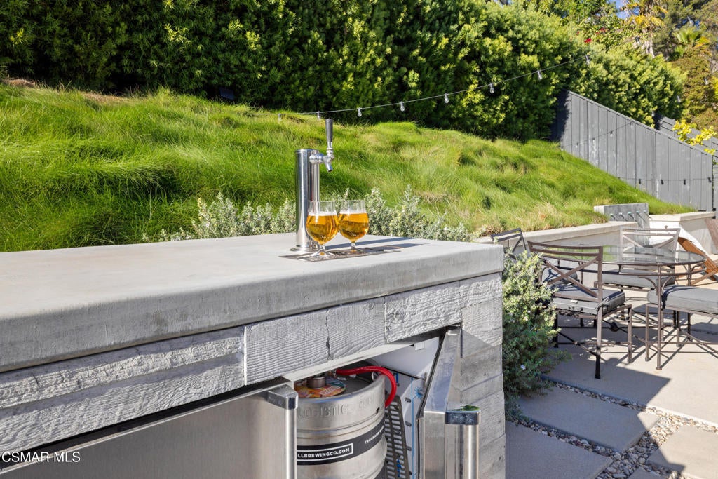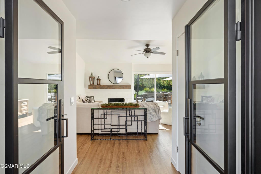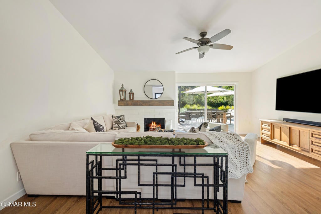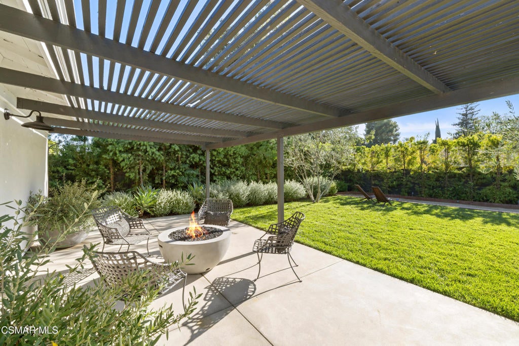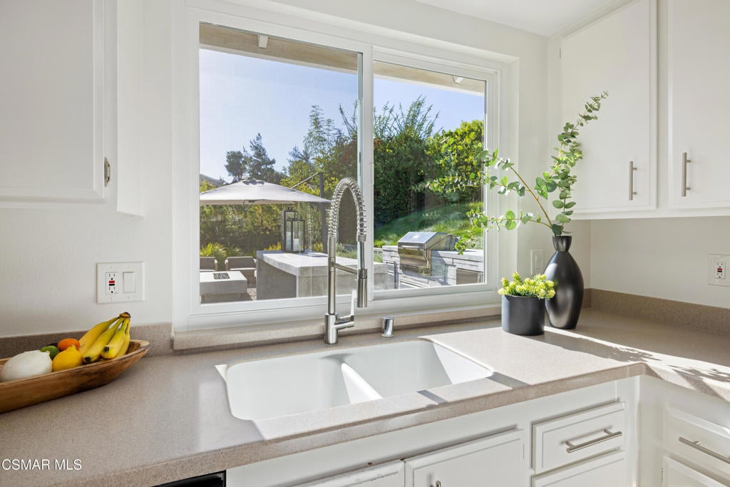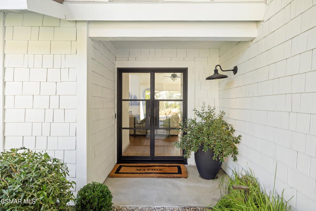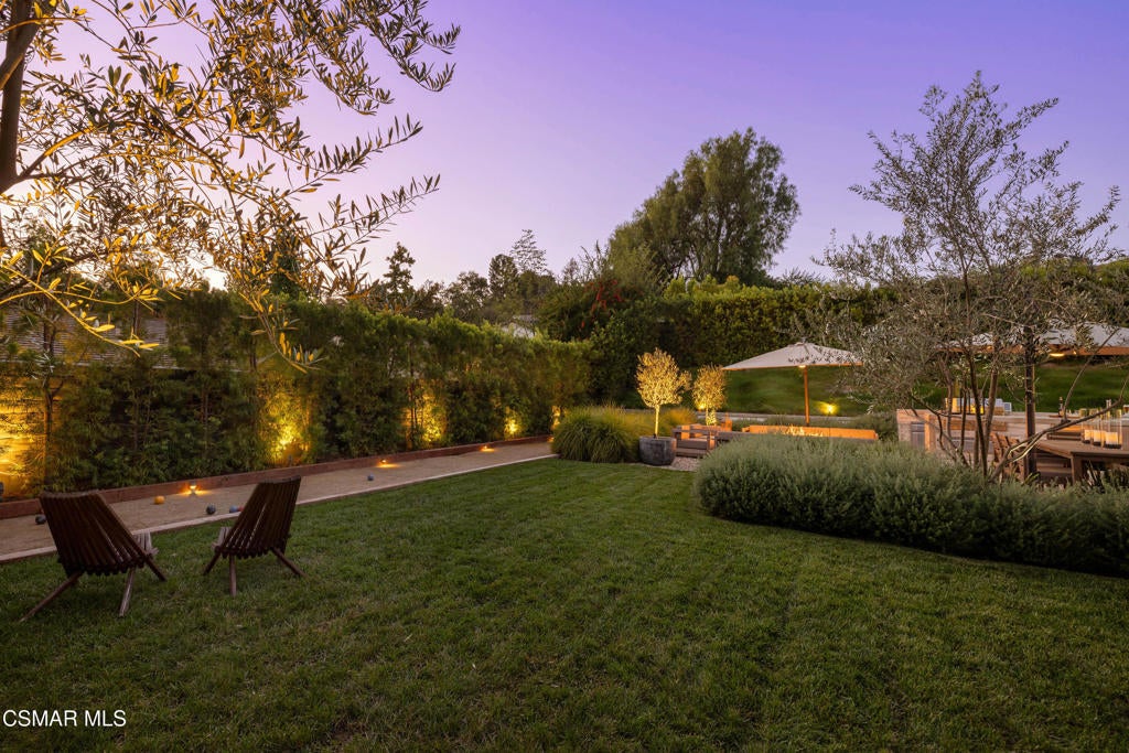 Welcome to this exceptional single-story, 3-bedroom, 2-bath home in the highly sought-after Foxmoor Estates neighborhood of Westlake Village. Surrounded by meticulously designed landscaping, this residence blends indoor and outdoor living with timeless California style.Enter through striking custom-made, glass grid French doors into a formal living room featuring a cozy fireplace and sliding doors that open to the private backyard. The updated kitchen with newer appliances and a breakfast bar flows effortlessly into the open family room, where sliding doors lead to a generous side yard complete with a beautiful wall fountain and lush sculpted mounds of grass.The primary suite offers a walk-in closet, private bath, and direct access to the backyard through sliding doors. The professionally landscaped outdoor space is an entertainer's dream, surrounded by a privacy hedge and featuring multiple seating areas, a custom built-in firepit, BBQ island with refrigerator and beer tap, and a Bocce ball court. Enhanced by olive trees, mature agave, ornamental grasses, and landscape lighting, this private retreat provides beauty and relaxation both day and night.Located in one of Westlake Village's most desirable communities, residents enjoy nearby greenbelts, parks, and convenient freeway access.