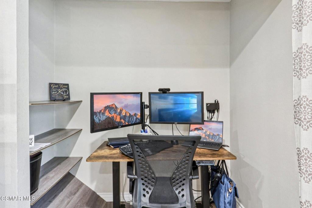 Welcome to this gorgeously updated farmhouse-style townhome in the heart of Agoura Hills! This 2-bedroom, 1.5-bath gem in the Lake Lindero community offers the perfect blend of modern comfort and timeless charm - ideally located between Westlake Village and the Valley.Come inside and you'll find an inviting open layout with wood-like flooring and recessed lighting throughout. The refreshed kitchen features a new tile backsplash, new sleek vent hood, new under the sink reverse osmosis water filtration system, granite countertops, stainless steel appliances, and an in-unit laundry area. A walk-in pantry and stylish half bath complete the first floor.Upstairs, a custom wrought-iron railing leads to the spacious primary bedroom with a large walk-in closet, window shutters, and a cozy office nook. The secondary bedroom enjoys peaceful mountain views and easy access to a full bath.Enjoy the outdoors from your private gated patio or explore nearby Lake Lindero and Reyes Adobe park. Additional highlights include a newer HVAC system, direct garage access (one space in a shared two-car garage), and tranquil hilltop views.The Lake Lindero Townhomes HOA covers water, trash, roof and wall maintenance, earthquake and fire insurance, landscaping, and guest parking - offering peace of mind and low-maintenance living. In additional, the HOA allows rentals!If you're looking for a peaceful, nature-filled neighborhood close to great schools, restaurants, and shops, this charming townhome is ready to welcome you home.
