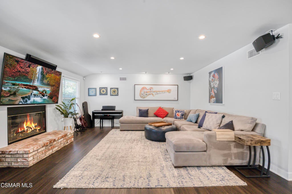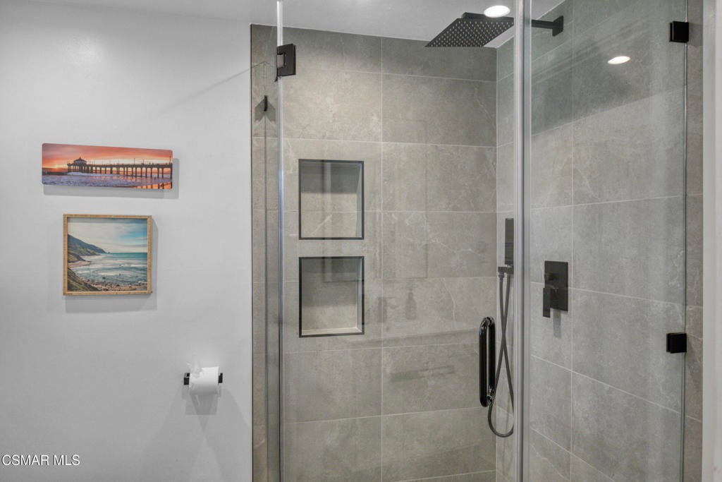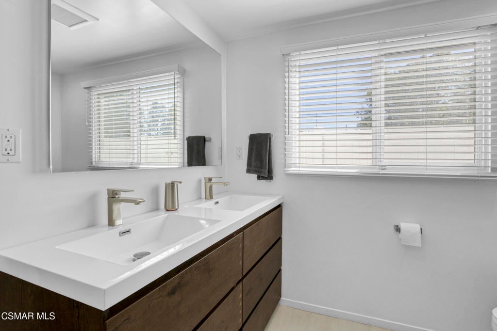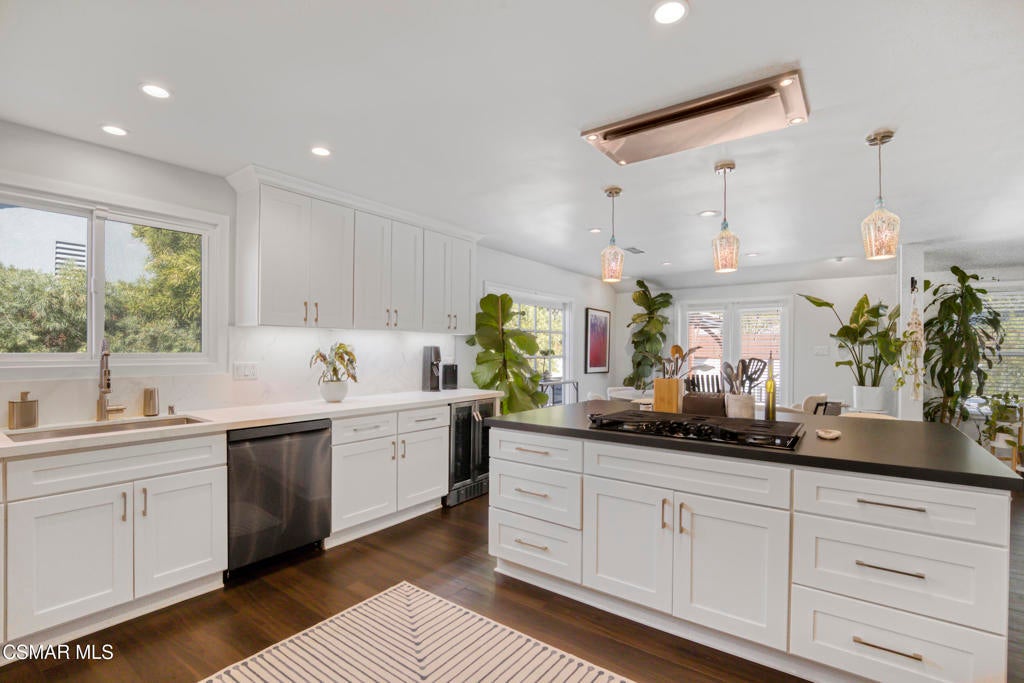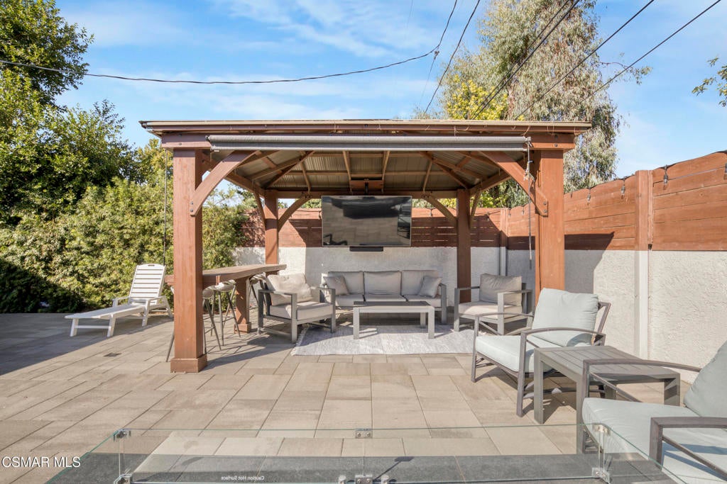 Welcome home to this beautifully updated single-story home in Woodland Hills, with its charming curb appeal. Inside, you'll fall in love with the light-filled, updated interior featuring a sprawling custom kitchen that opens seamlessly to a spacious dining area and large family room, creating a true great-room feel. The kitchen is the heart of the home, beautifully designed with quartz countertops, custom cabinetry, and newer appliances, including a wine fridge, built-in microwave and oven, stainless steel refrigerator, and a newer cooktop perfectly positioned for entertaining. A Kraus Stark stainless steel sink and a large island with a built-in wine rack and additional storage complete this thoughtfully designed space that's as functional as it is inviting.The secondary bedrooms are generously sized, with one offering direct access to the hallway bathroom, creating a perfect mini-suite if desired. The primary bedroom is spacious, featuring ample closet space and private access to the backyard for a peaceful retreat. Both bathrooms have been recently remodeled with new vanities, modern finishes, stylish tile flooring, and walk-in showers with rain shower heads. The primary en-suite showcases an LED mirror and a stunning chevron-tiled shower, creating a luxurious spa-like experience right at home.Step outside to a completely reimagined backyard that is truly an entertainer's paradise. The sparkling saltwater pool, finished in Barbados Blue quartz, is complemented by elegant tiling, an in-ground jacuzzi, waterfalls, and ambient lighting all operated with Aqualink pool equipment. Enjoy evenings around the custom gas fire pit, relax under the gazebo with a custom eating bar, or unwind in the outdoor lounge area. The low-maintenance design with newer pavers makes it as easy to enjoy as it is beautiful to look at.Additional features/updates include a newer HVAC system with updated ducting, water heater, dual-pane windows throughout, a newer roof, a new front door, and flooring that flows seamlessly throughout the home. Every detail has been thoughtfully updated, creating a move-in-ready home that combines modern upgrades with timeless comfort--all in a prime Woodland Hills location, just minutes from Woodlake Elementary, Hale Middle School, and El Camino Real Charter High within the highly sought-after El Camino school district. We can't forget to mention how conveniently located this home is to great shopping and restaurants with The Village, Westfield Topanga Mall, which includes The Topanga Social that brings you some of the trendiest eateries.