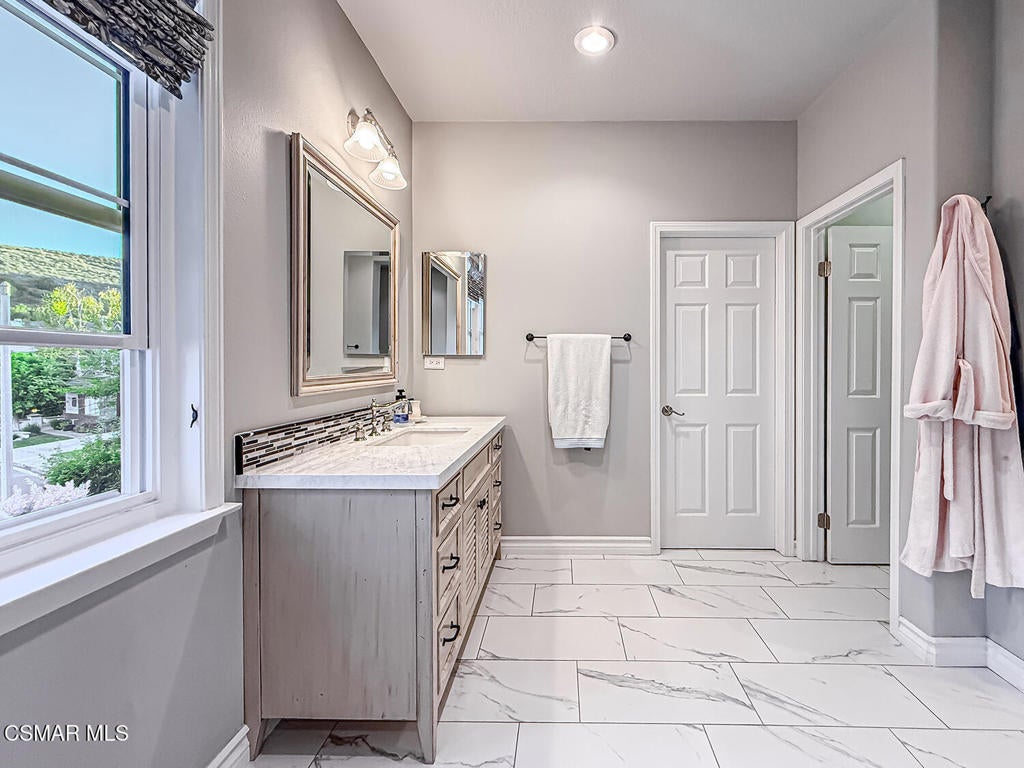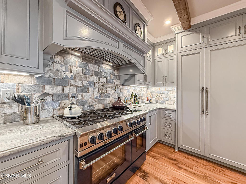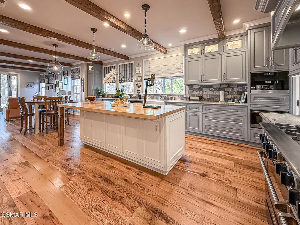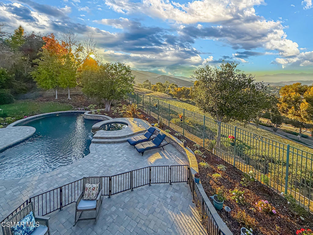 Introducing a rare and exquisite former model home that embodies the pinnacle of luxury and style, this stunning property is situated on a premium, flat cul-de-sac end lot offering breathtaking views. The outdoor space features a gorgeous pool with a new pebble tech surface and tile, along with new equipment, surrounded by lush fruit trees, creating an inviting private oasis perfect for relaxation and entertainment.Step inside to discover decorator-designed touches throughout, beginning with a grand stone floor entry that sets an elegant tone. This remodeled home showcases sculpted carpeting, intricate wainscoting, and crown moldings that elevate its sophistication.The kitchen remodel is truly a chef's dream, boasting top-of-the-line appliances including a 48'' 8 burner BlueStar Chef's range, a Sub-Zero refrigerator, a Miele dishwasher, and a Fisher-Paykel drawer refrigerator. Enjoy the added convenience of a Miele coffee station, quarzite countertops**, and **reclaimed farmhouse flooring. The kitchen also features a beverage fridge and two Sub-Zero drawer refrigerators, perfect for all your entertaining needs. To enhance functionality, there are two-side pantries with plugs for small appliances, ensuring everything you need is close at hand. The open layout leads to an expansive great room, featuring a cozy fireplace and an elegant formal living room, ideal for gatherings. A convenient downstairs office with a private bath and separate entrance provides versatility and can serve as a potential fifth bedroom.Retreat to the enormous Primary suite, a private sanctuary highlighted by its own fireplace and French doors that open to a private 16'' balcony showcasing spectacular mountain views. The beautiful master bathroom has been beautifully remodeled and features a large walk-in shower with a rainhead, a luxurious soaker tub, dual sinks and a single sink, bespoke cabinets, and his and hers walk-in closets with built-ins. Completing the upstairs are remodeled guest bathrooms and bedrooms, along with a well-appointed laundry room with built-ins, enhancing the practicality of this magnificent home. All new flooring throughout adds to the overall elegance, while built-ins are present throughout for extra storage.The backyard is perfect for entertaining, offering impressive views of the pool and a stylish outdoor kitchen with a tongue-in-groove ceiling and ceiling fan. This outdoor kitchen is equipped with a 36'' Turbo Elite gas grill, an outdoor refrigerator, and a drawer trash station. Additionally, a new underground drainage system and new pavers complement the landscaping, which features grass, plants, and mulch, complete with landscape lighting with a timer. This property includes top-notch pool features, including **fireman hoses at the back fence**, to ensure safety and enjoyment. A spacious 4-car garage with newer garage doors and openers, as well as heavy-duty metal storage units, provides ample room for vehicles and storage.Other notable upgrades include a new HVAC system with dual thermostats installed in 2023, and a tankless water heater with a pump that eliminates the wait for hot water. The exterior of the home has been recently painted, and 11 windows have been replaced by American Vision Windows, enhancing both beauty and efficiency.This remarkable home, with its distinctive lot and unparalleled features, must be experienced in person. Homes of this caliber are rarely available on the market, making this an extraordinary opportunity not to be missed. Discover the lifestyle you've always dreamed of in this exquisite haven!