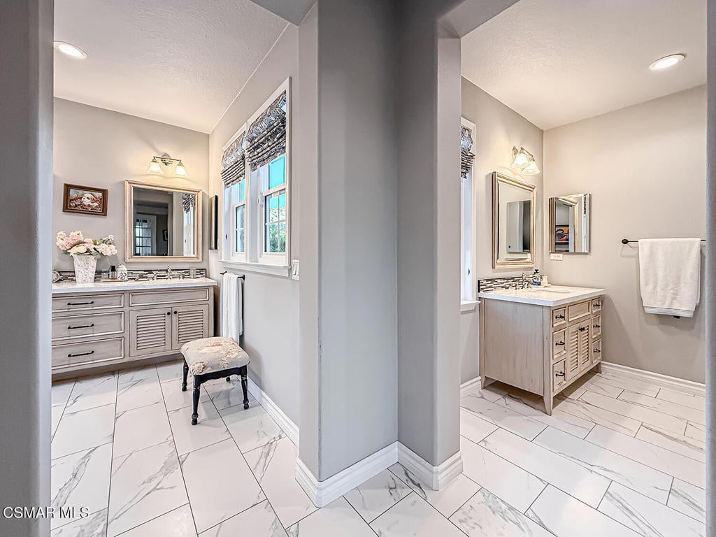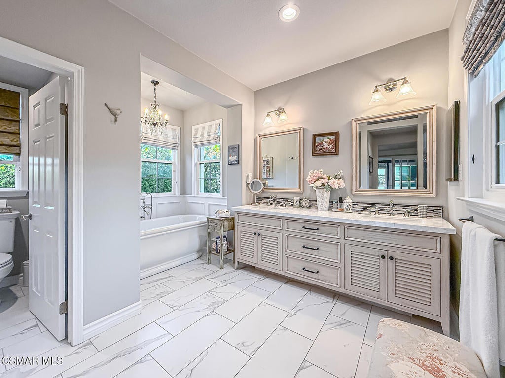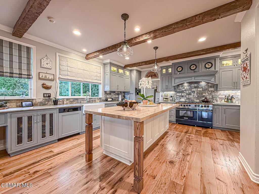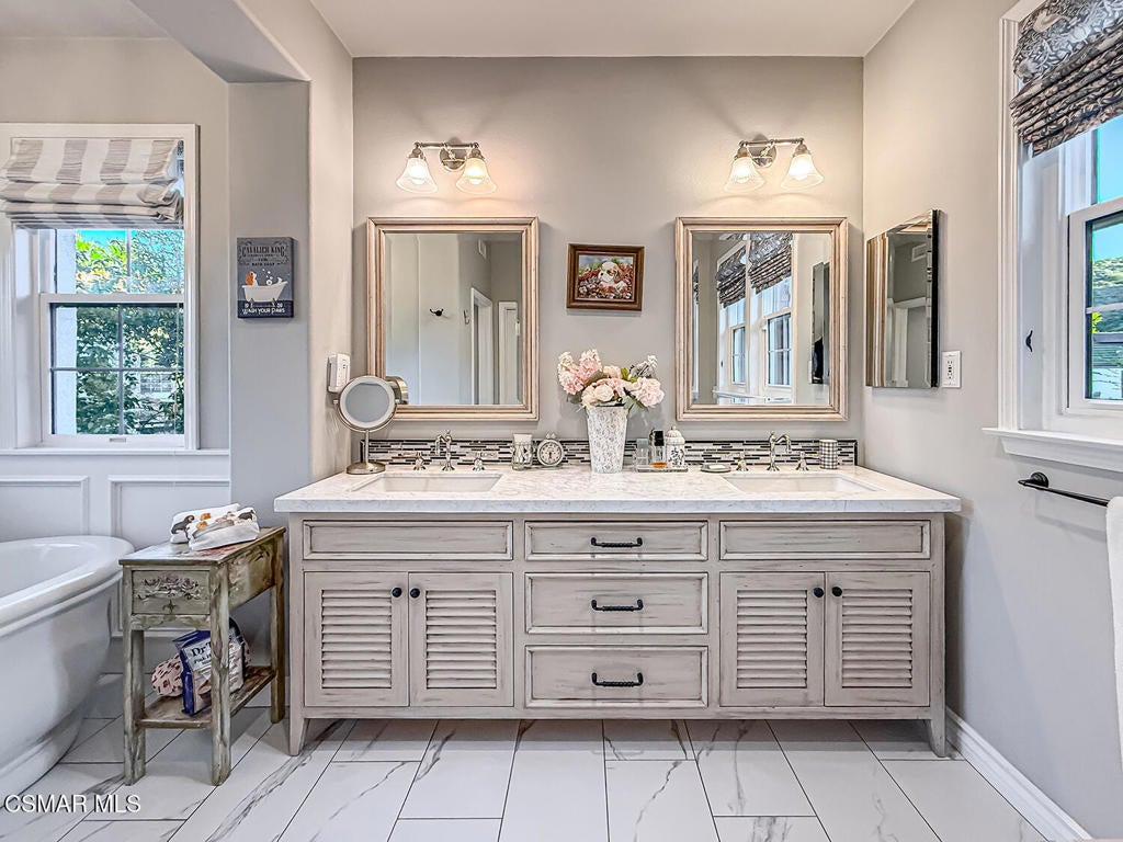 Introducing a rare and exquisite former model home that embodies the pinnacle of luxury and style, this stunning property is situated on a premium, flat cul-de-sac end lot offering breathtaking views. The outdoor space features a gorgeous pool with a new pebble tech surface and tile, along with new equipment, surrounded by lush fruit trees, creating an inviting private oasis perfect for relaxation and entertainment.Step inside to discover decorator-designed touches throughout, beginning with a grand stone floor entry that sets an elegant tone. This remodeled home showcases sculpted carpeting, intricate wainscoting, and crown moldings that elevate its sophistication.The kitchen remodel is truly a chef's dream, boasting top-of-the-line appliances including a 48'' 8 burner BlueStar Chef's range, a Sub-Zero refrigerator, a Miele dishwasher, and a Fisher-Paykel drawer refrigerator. Enjoy the added convenience of a Miele coffee station, quarzite countertops**, and **reclaimed farmhouse flooring. The kitchen also features a beverage fridge and two Sub-Zero drawer refrigerators, perfect for all your entertaining needs. To enhance functionality, there are two-side pantries with plugs for small appliances, ensuring everything you need is close at hand. The open layout leads to an expansive great room, featuring a cozy fireplace and an elegant formal living room, ideal for gatherings. A convenient downstairs office with a private bath and separate entrance provides versatility and can serve as a potential fifth bedroom.Retreat to the enormous Primary suite, a private sanctuary highlighted by its own fireplace and French doors that open to a private 16'' balcony showcasing spectacular mountain views. The beautiful master bathroom has been beautifully remodeled and features a large walk-in shower with a rainhead, a luxurious soaker tub, dual sinks and a single sink, bespoke cabinets, and his and hers walk-in closets with built-ins. Completing the upstairs are remodeled guest bathrooms and bedrooms, along with a well-appointed laundry room with built-ins, enhancing the practicality of this magnificent home. All new flooring throughout adds to the overall elegance, while built-ins are present throughout for extra storage.The backyard is perfect for entertaining, offering impressive views of the pool and a stylish outdoor kitchen with a tongue-in-groove ceiling and ceiling fan. This outdoor kitchen is equipped with a 36'' Turbo Elite gas grill, an outdoor refrigerator, and a drawer trash station. Additionally, a new underground drainage system and new pavers complement the landscaping, which features grass, plants, and mulch, complete with landscape lighting with a timer. This property includes top-notch pool features, including **fireman hoses at the back fence**, to ensure safety and enjoyment. A spacious 4-car garage with newer garage doors and openers, as well as heavy-duty metal storage units, provides ample room for vehicles and storage.Other notable upgrades include a new HVAC system with dual thermostats installed in 2023, and a tankless water heater with a pump that eliminates the wait for hot water. The exterior of the home has been recently painted, and 11 windows have been replaced by American Vision Windows, enhancing both beauty and efficiency.This remarkable home, with its distinctive lot and unparalleled features, must be experienced in person. Homes of this caliber are rarely available on the market, making this an extraordinary opportunity not to be missed. Discover the lifestyle you've always dreamed of in this exquisite haven!