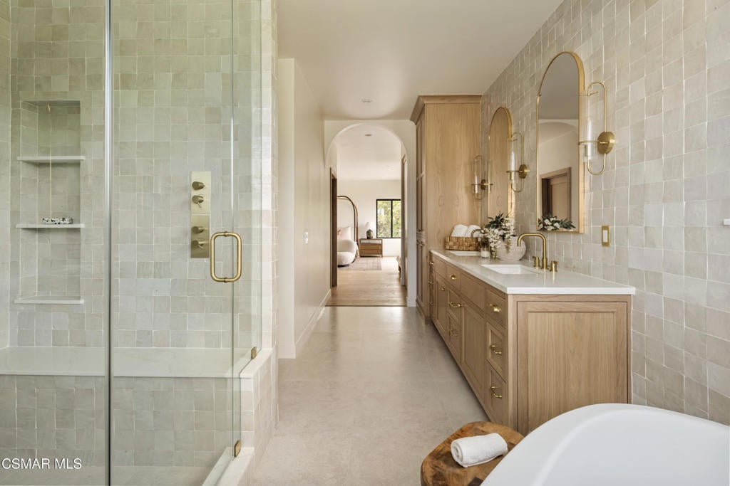 Warm, Refined, and Timeless SoCal Transitional Home Meets Family-friendly Design!Welcome to a truly one-of-a-kind, fully reimagined 5-bedroom, 4.5-bath luxury residence that has been thoughtfully crafted for discerning buyers who value high-end design, comfort, and function. Inside, the custom floor plan showcases expansive living spaces, raised door headers for an elevated aesthetic, and two luxurious primary suites -- one on each level -- ideal for multi-generational living or hosting guests.The designer chef's kitchen and beautifully crafted custom cabinetry throughout the home reflect a commitment to quality and timeless sophistication, while two separate laundry hookups add everyday convenience and practicality for busy households.Designed for seamless indoor-outdoor living, the main living area and upstairs primary suite both feature oversized bifold sliders that open to a private entertainer's oasis -- complete with a large stunning pool, built-in BBQ, and panoramic views. Upstairs, a generous deck off the primary suite provides a serene escape with stunning views, perfect for morning coffee or evening relaxation.From the designer tiles, custom plaster range hood, architectural elements inserted throughout, refined stone and smooth stucco exterior, every detail has been meticulously selected. Take comfort in knowing that nearly everything in this home has been replaced and modernized, including brand new Milgard windows, a new HVAC system and water heater, upgraded plumbing throughout the entire house, new rain gutters, and a newly replaced yard drainage system -- offering peace of mind and modern efficiency. Whether you're entertaining on the weekends or enjoying quiet family evenings, this warm and inviting modern masterpiece delivers the perfect balance of luxury, comfort, and lifestyle.