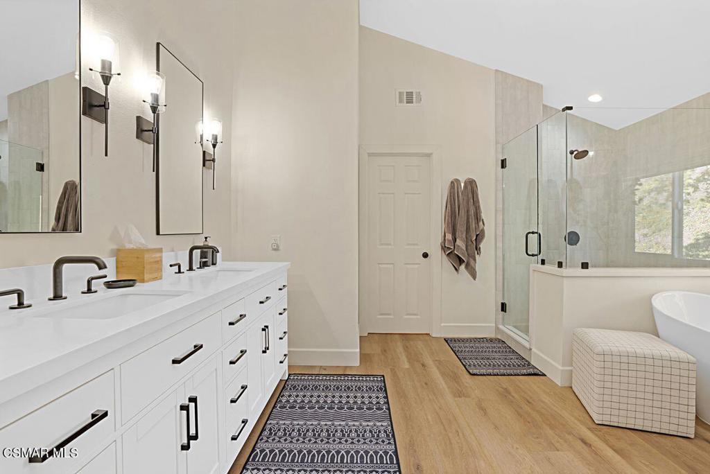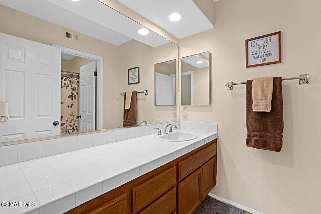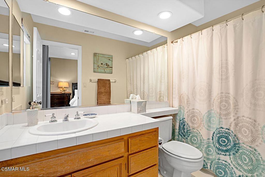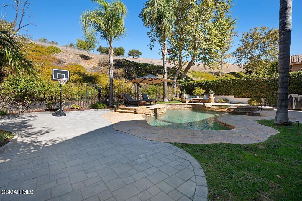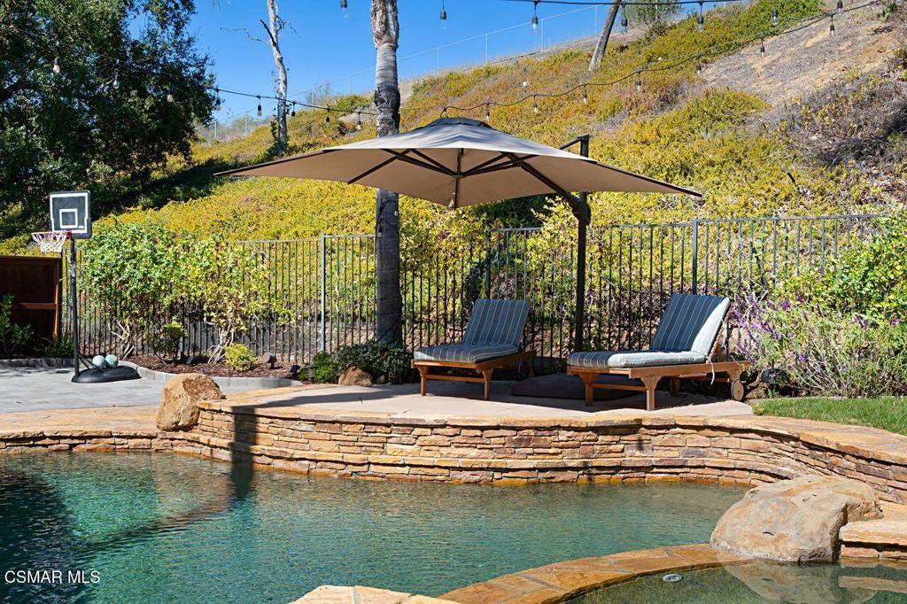 OPEN HOUSE CANCELLED SUNDAY, 10/26.Your Stunning Upgraded Pool Home in Oak Park Awaits! Step through the custom front door into a bright, open foyer with soaring ceilings and beautiful luxury vinyl plank flooring that flows throughout the main level. The elegant formal living room showcases a remodeled fireplace and a sliding glass door leading to the side yard, while the adjacent formal dining room connects to the kitchen through a convenient pocket door. The chef's kitchen, completely remodeled in 2021, is a showstopper--featuring quartz countertops, stainless steel appliances, a custom backsplash, and a designer range hood. Custom cabinetry includes pull-out shelves and soft-close hinges for optimal function and style. A spacious island with a casual dining area overlooks the backyard, creating the perfect setting for family gatherings. The kitchen seamlessly opens to the inviting family room with ample space for relaxation and re-faced cabinetry for a polished look. Off the family room, you'll find a well-appointed laundry room with re-faced cabinets leading to a garage that offers additional storage. A stylish powder room is conveniently located near the foyer. The staircase has been beautifully opened up with a custom iron railing, adding a modern touch to the home's design. Upstairs, the luxurious primary suite impresses with vaulted ceilings, hillside views, and remote-controlled window shades. The remodeled primary bathroom offers a spa-like retreat with a soaking tub, separate shower, dual vanities, and a spacious walk-in closet. A second bedroom suite features its own private bathroom and scenic views, while two additional large bedrooms share a hallway bath. The entertainer's backyard is a true oasis, perfectly positioned on a premium lot backing to open space. Enjoy a beach-entry Pebble Tec pool and spa, lush grassy area, and multiple sitting areas ideal for relaxing or hosting gatherings. Additional highlights include plantation shutters, recessed lighting, a whole house fan, and upgraded windows throughout. Ideally located in the award-winning Oak Park School District, close to shopping, parks, hiking trails, and the community center -- this home truly offers the best of California living.