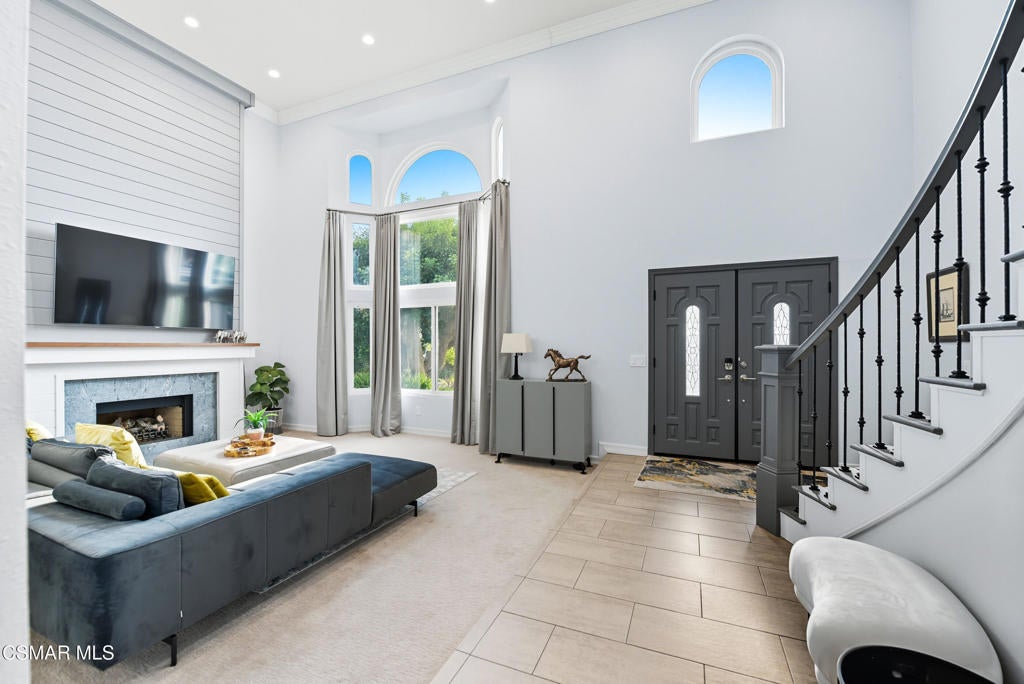 This is your chance to live in the highly sought-after Morrison Ranch South Meadows Estates. Offers a great floor plan with one downstairs bedroom and en-suite bath- ideal for guests, in-laws or a teenage that want's their own space. Highly Update!The backyard feels like a private resort designed for both relaxation and entertaining. Towering hedges and tall palm trees provide ultimate privacy, NO WINDOWS LOOKING IN! PRIVATE! A sparkling pebble-tec pool and spa with a cascading waterfall invite endless enjoyment! A spacious grassy play area and a patio with overhang for al fresco dining and peek-a-boo mountain views complete this serene outdoor haven. From the moment you pull up, the home's curb appeal stands out! The exterior was painted 4 years ago in a fresh, modern color scheme. Newer roof (2021), three car garage, EV charger, and fully paid off solar paneling (4 years old) adds so much value before you even step inside. Enter through the grande foyer, where soaring ceilings and a sweeping wrought-iron staircase set the tone for the home's sophisticated style. The living room impresses with a custom, remodeled fireplace with one piece marble surround that soars to the ceiling, crowned by a custom cherry mantle. Windows are flanked by custom, high end, designer drapes. The adjacent dining room creates the perfect flow for gatherings and celebrations. The gourmet kitchen is a chef's dream, showcasing custom cabinetry including tons of pull-outs, granite countertops, Miele appliances, a built-in refrigerator, Wolfe microwave built into the lower cabinets, a stunning floor to ceiling coffee bar, a breakfast bar and large eat-in kitchen area that opens into the formal dining room. The kitchen opens into the very large family room featuring beautiful millwork/mouldings on the walls, an updated fireplace and a built-in homework area/desk. Additional highlight on the first floor include a laundry room and cabinetry down the hall and a powder room off of the family room area. Neutral, Italian ceramic tile floors downstairs. Upstairs you will find wood-like flooring leading to three secondary bedrooms. One is currently an office with built-in's and a bay window seat. Just past the secondary bathroom, you come upon the large primary suite with sitting area, custom built in shelves and cabinets and updated fireplace. The luxurious primary bath has been reconfigured from the original model and features a large stone shower with seating, a soaking tub and walk-in closet of impressive scale. Additional upgrades include upgraded windows and sliding doors, Plantation shutters in bedrooms, kitchen and dining room, extensive crown moulding, and 40+ energy efficiency LED can lights, steam shower. Located within the highly acclaimed Las Virgenes School District just moments from the soon-to-be redesigned Morrison Park, this home blends classic elegance with modern convenience- an opportunity not to be missed.