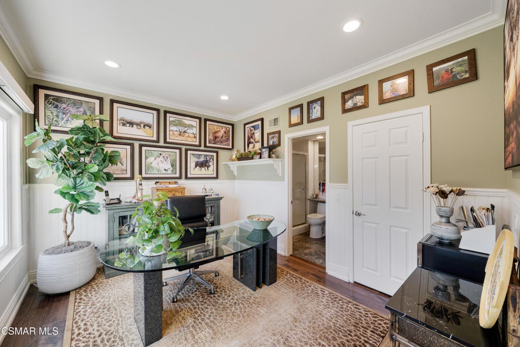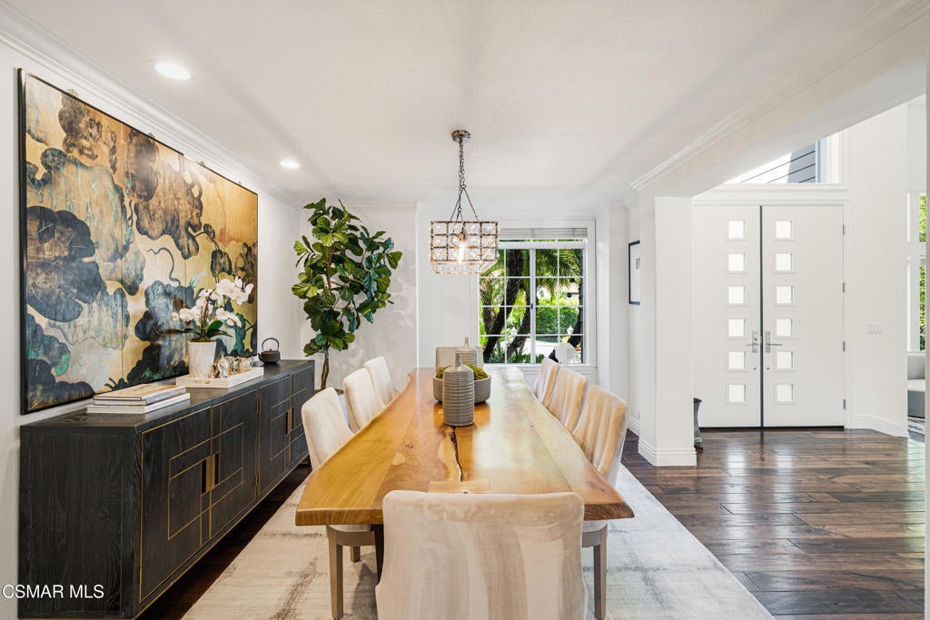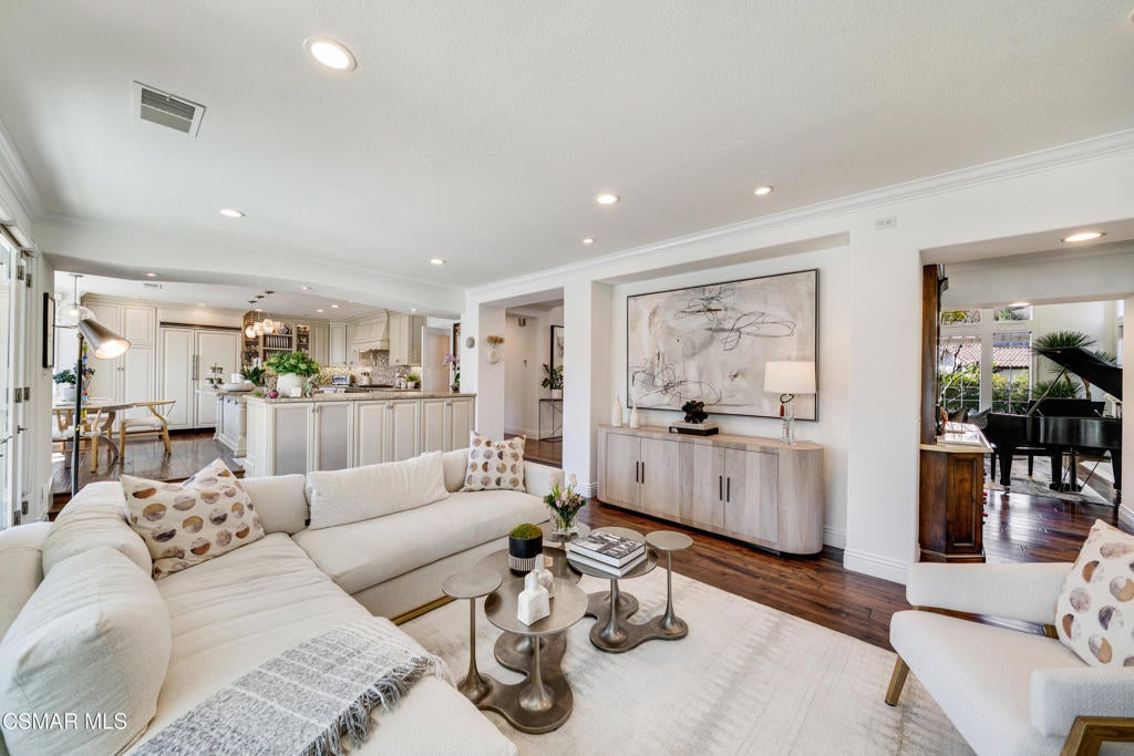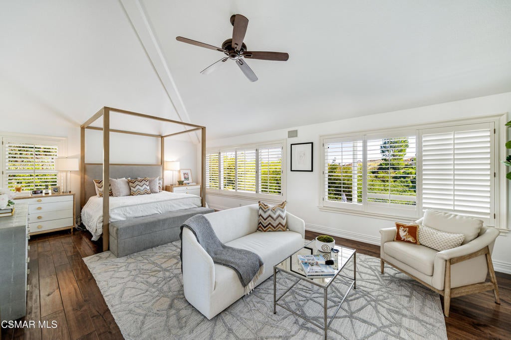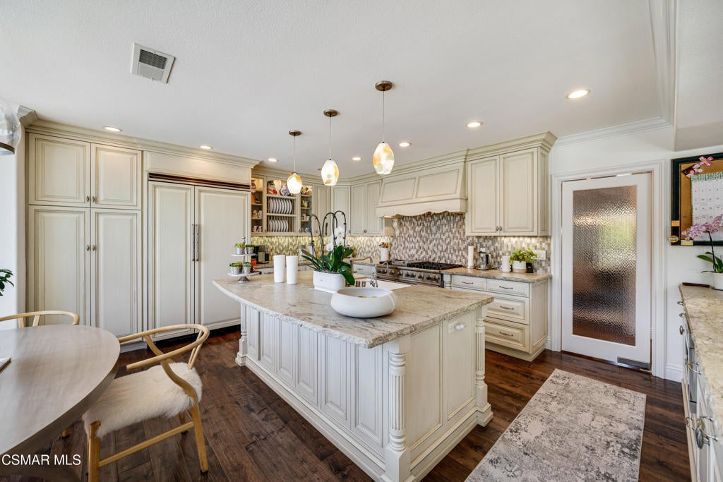 Featured in Westlake Malibu Lifestyle Magazine & Dream Homes! A Rare Gem in Three Springs - Impeccably Remodeled, Spacious, and Stunning Views! Nestled in the prestigious Three Springs neighborhood of Westlake Village, this exceptional 5-bedroom, 4 1/2-bathroom estate (approx. 3,738 sq. ft.) seamlessly blends modern luxury with timeless elegance. From the moment you arrive, the beautifully landscaped exterior and custom lighting set the tone, while the grand entry welcomes you with soaring ceilings and an abundance of natural light, creating an inviting and sophisticated ambiance. The thoughtfully designed floor plan offers both functionality and comfort. A main-level bedroom with its own en-suite bathroom provides a private retreat for guests or multi-generational living. Upstairs, you'll find four additional bedrooms, including two Jack and Jill bedrooms connected by a shared bathroom, and another guest room with an en-suite bathroom. The luxurious primary suite features its own fireplace, three spacious walk-in closets, and a standalone jet bathtub with a Toto luxury washlet. Step into the gourmet kitchen, featuring custom cabinetry, granite leather countertops, and top-of-the-line Viking appliances. The kitchen also includes an eat-in dining space, and the cozy family room, connected to the kitchen, offers an open-concept space with a wood-burning fireplace. The home also includes an elegant formal dining room, a welcoming living room with a wood-burning fireplace, and an epic bar--perfect for entertaining. Step outside to an ultra-private backyard oasis, where no neighbors directly behind allow for uninterrupted mountain views. The heated saltwater pool and spa are complemented by lush landscaping, fruit trees, and a serene garden retreat. The expansive covered outdoor patio--featuring slate flooring, a built-in gas fireplace, television, heaters, and fans--offers the perfect setting for year-round entertaining. A separate built-in BBQ area with a custom cement countertop enhances the space. An additional spacious side yard, previously used as a basketball court, has the potential to be transformed into an impressive sports court. The home has been meticulously upgraded, including a newer roof, select areas with double-pane windows, brand-new garage doors, a custom front door, and elegant engineered hardwood flooring throughout. The interior and exterior have been freshly painted, with select areas featuring remote-controlled blinds and custom plantation shutters for added style and convenience. The saltwater pool was completely redone this past year with new resurfacing, new tile, and sealed surrounding pavers. Additionally, the exterior landscaping lights create a warm and inviting ambiance that enhances the home's appeal. Located near top-rated schools, scenic parks, shopping, and fine dining, this home offers the perfect blend of luxury, comfort, and community. With access to the award-winning Las Virgenes Unified School District and the natural beauty of Westlake Village, this is a rare opportunity to own an extraordinary home in an unbeatable setting.