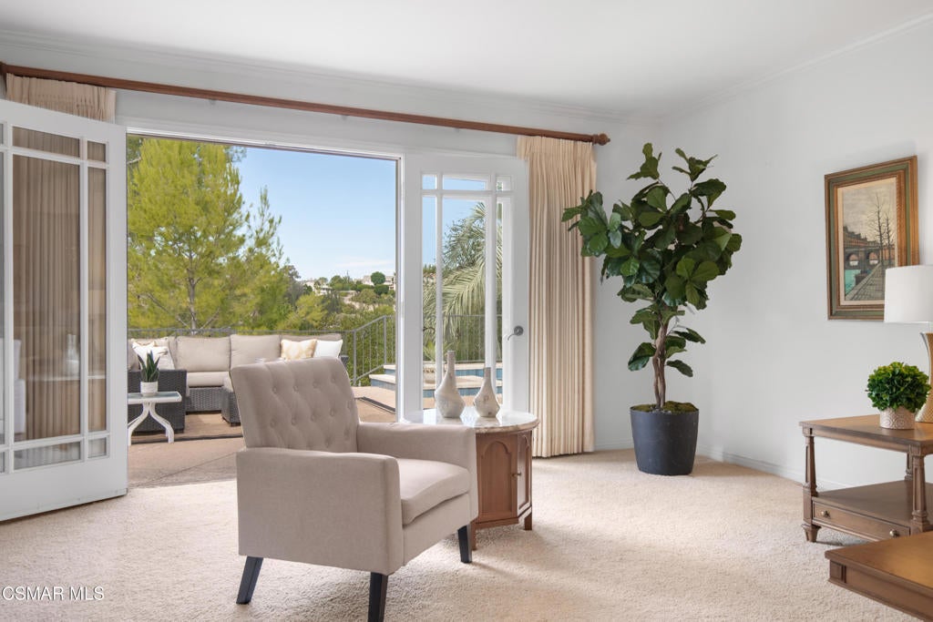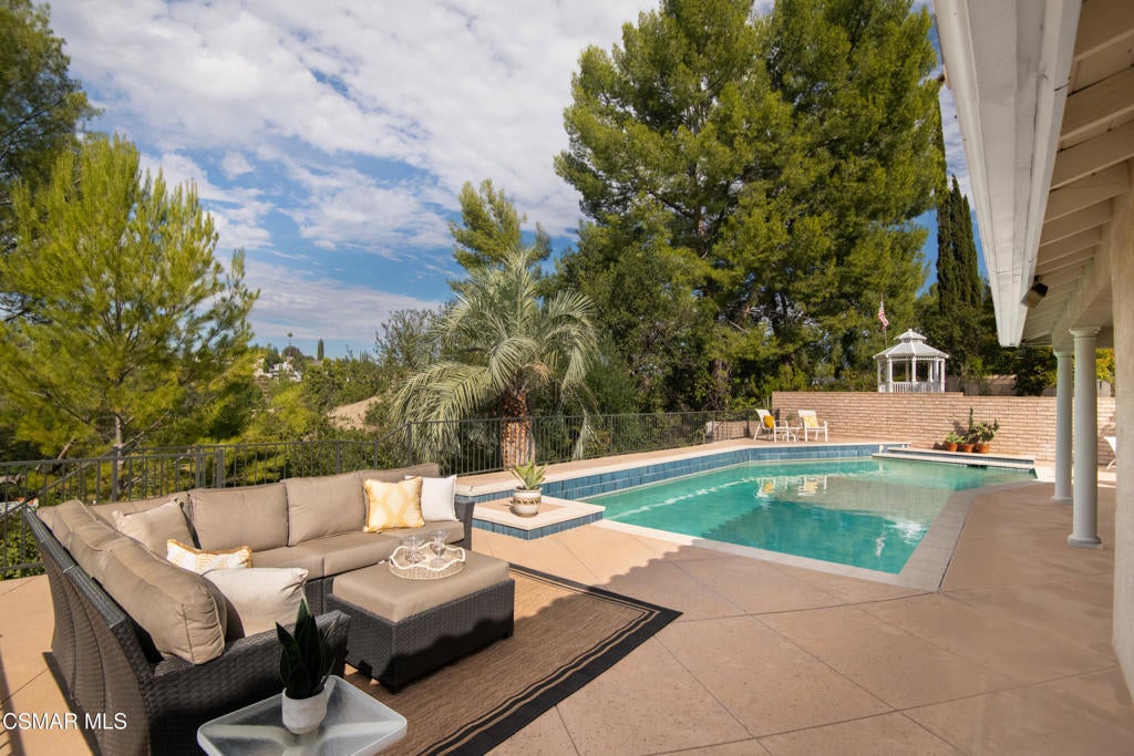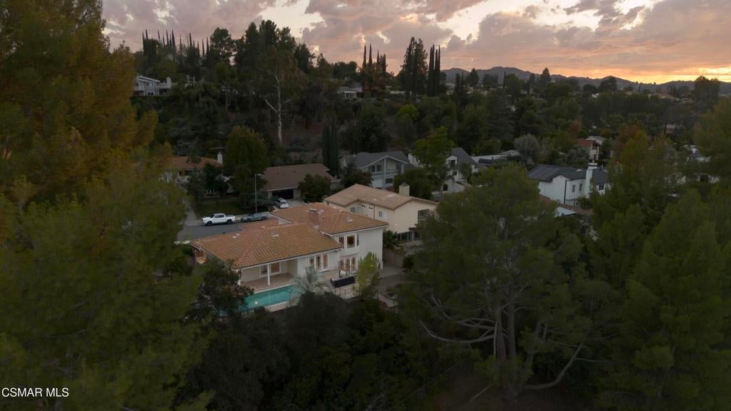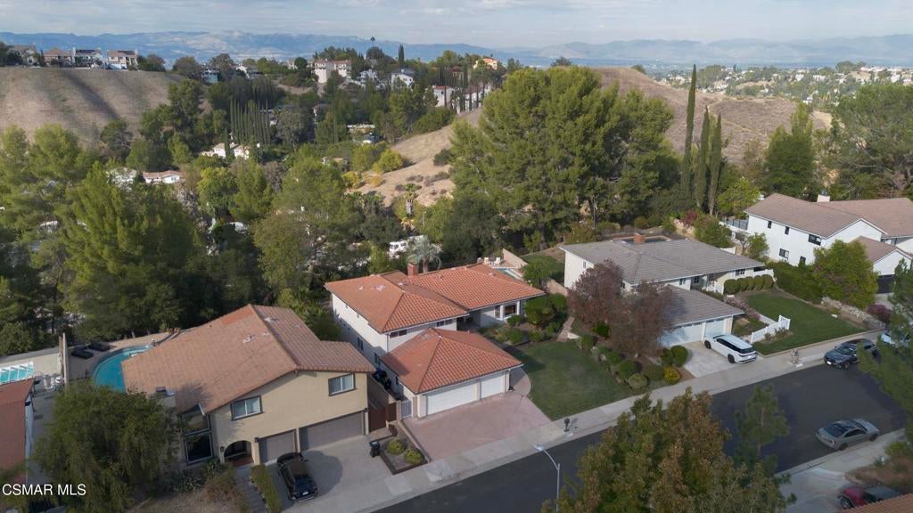First time ever on the market! Nestled south of the boulevard in one of Woodland Hills' most desirable neighborhoods, this beautiful split-level home offers stunning mountain and city views. Featuring a light and bright remodeled kitchen, spacious living areas, and two inviting fireplaces--one in the formal living room and another in the cozy downstairs den. This residence exudes both warmth and elegance.The flexible floor plan includes a bedroom and full bath conveniently located downstairs, perfect for guests or multigenerational living. The expansive primary suite offers a peaceful retreat with two closets and serene views. Enjoy outdoor living at its best with a sparkling pool surrounded by mature trees, creating a private and relaxing setting.Additional highlights include a three-car garage and an unbeatable location just minutes from Calabasas Commons, The Village at Topanga, El Camino Shops, and Gelson's Market. Located in the highly acclaimed Blue Ribbon school district, this rare offering combines charm, comfort, and convenience in one exceptional home.