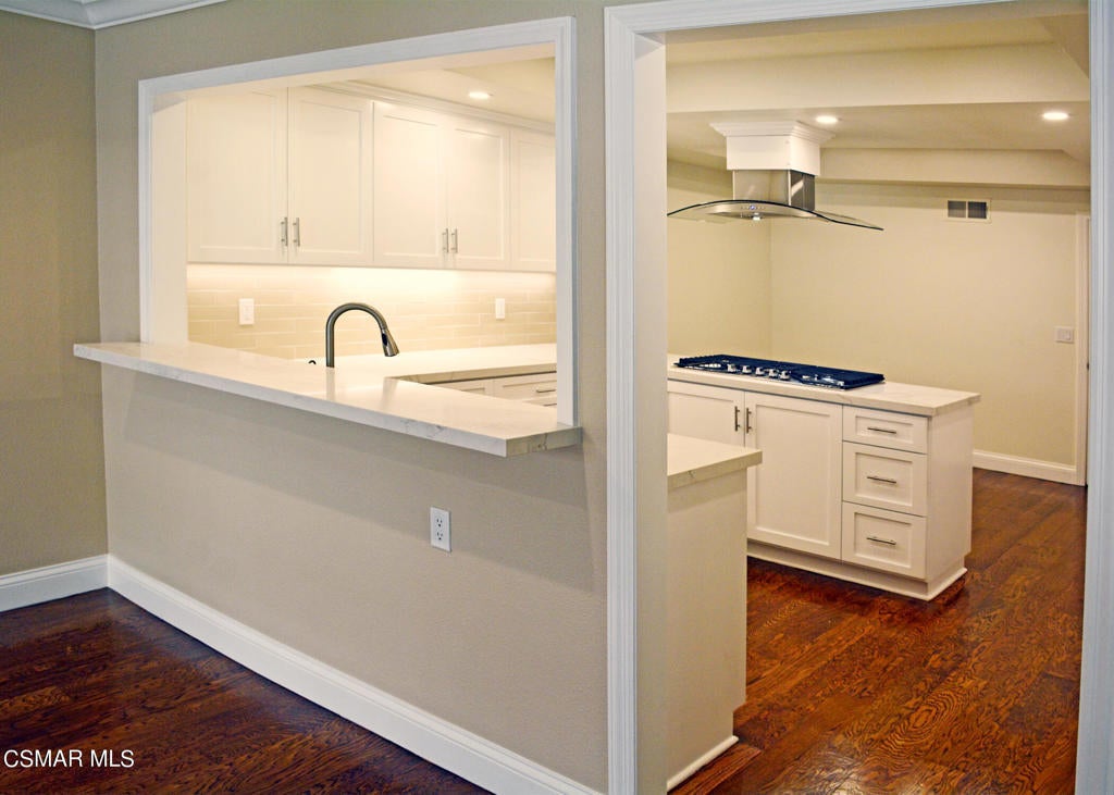 Come see this beautiful Ben Johnson! This 3 Bedroom 2.5 bath home in North Ranch has it all. Enter the vast Great Room with tons of natural light and fall in love with the remodeled fireplace, wood floors, crown molding, newer baseboards, recess lighting and French doors to the back patio. The remodeled gourmet kitchen includes new quartz counters & backsplash, new custom shaker cabinets, brand new stove top hood, new sink, stainless steel appliance, double ovens & under cabinet lighting, Both upstairs bathrooms including master also have been COMPLETELY remodeled. Master bedroom is grand with fireplace, walk in closet, vanity area and balcony. The private backyard is perfect for relaxing, or open wide French doors in both formal dining room & living room and entertain!! Don't miss this opportunity to live in North Ranch.