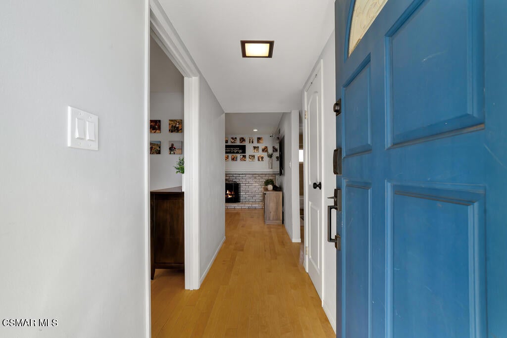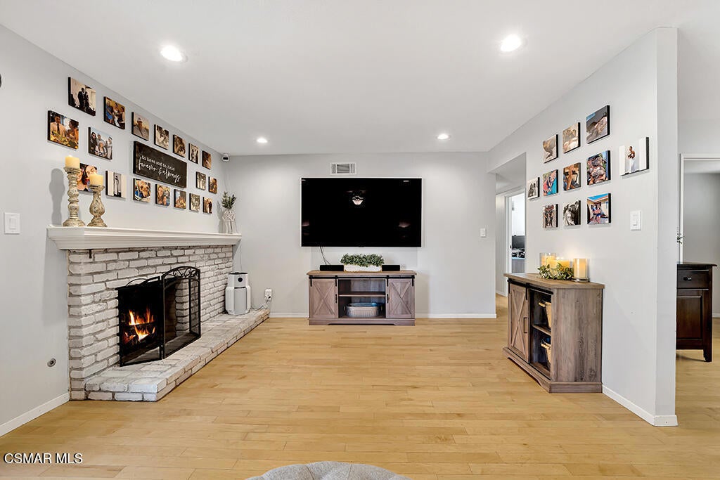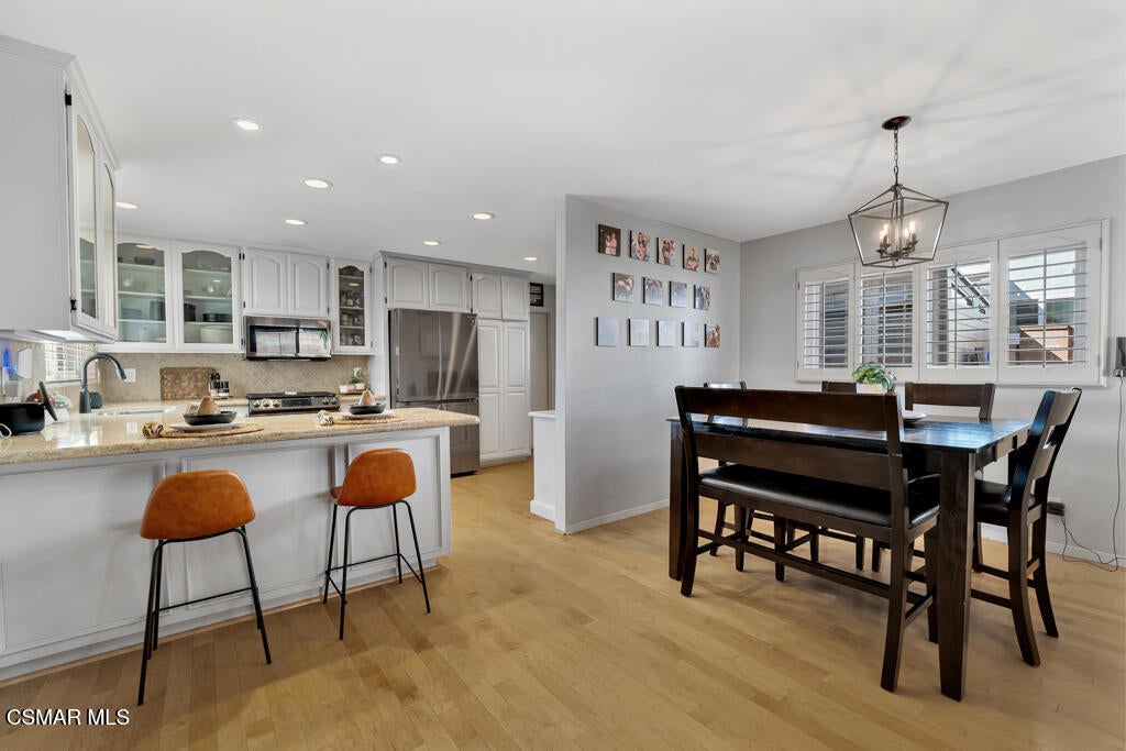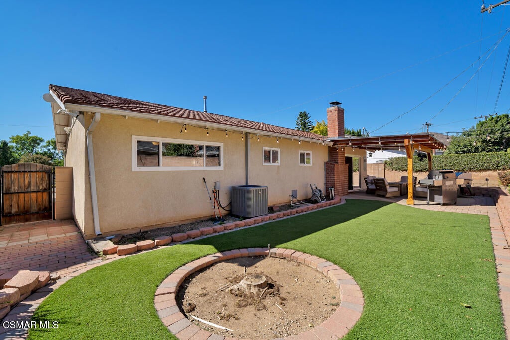Welcome home to this beautifully updated single-story home that combines comfort, style, and exceptional curb appeal. Nestled in the heart of East Simi Valley and surrounded by scenic mountain views, this home is charming and offers thoughtful details throughout.Step inside to a bright and inviting greatroom featuring rich wood-like flooring, neutral designer paint, and a cozy brick fireplace -- perfect for relaxing evenings at home. New sliding glass doors open to the backyard, blending indoor and outdoor living seamlessly.The remodeled kitchen is sure to impress with its granite countertops, glass-paneled cabinetry, modern appliances, and a breakfast bar ideal for casual dining. A charming kitchenette area and a small bar nook add extra functionality and character, making this space both practical and picturesque.Both bathrooms have been beautifully refreshed with granite countertops and updated finishes. Each bedroom is generously sized and features ceiling fans for year-round comfort.Additional features include dual-pane windows, plantation shutters, and fresh interior paint throughout, enhancing the home's energy efficiency and modern appeal.Step outside to a new wood-covered patio adorned with bistro lighting, creating a magical space for entertaining or simply unwinding at the end of the day. The spacious faux grass yard offers plenty of room to play, host gatherings, or garden.One of the true highlights of this property is the redone garage - fully insulated, freshly painted, with new lighting and sleek epoxy flooring. It's the ultimate man cave or hobby retreat, a rare find that sets this home apart!Located near one of Simi Valley's top-rated schools and in one of the most desired communities in the area with no HOA -this home offers the perfect blend of beauty, comfort, and convenience.