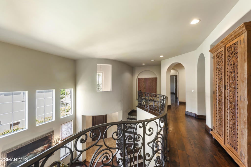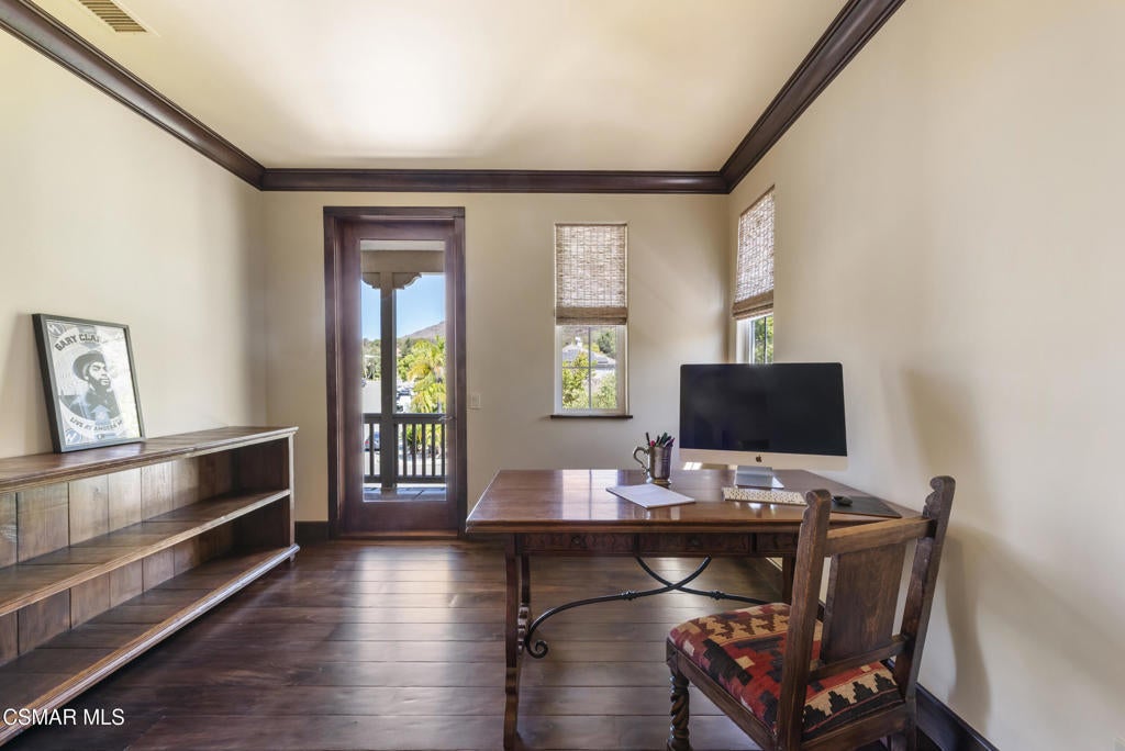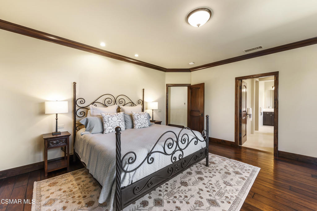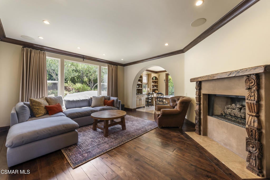 Welcome to Dos Vientos and this amazing one of a kind rental opportunity. Also available furnished for $10,000/Mo. Seldom does a home of such decerning quality come on the market let alone for rent. You'll feel like you're living in a resort place. From the hand scraped walnut floors to the distressed cabinetry and custom millwork and the butcher block island, every detail has been tended to. The end result is nothing short of spectacular. Listed as a 5/3, the downstairs bedroom has been converted to an open den with French doors leading to the beautiful garden. With amenities like solid mahogany doors, stained crown molding, base and casing, you get the sense that everything about this home feels custom and picture perfect. Even the laundry room is a work of art! With a view and an exceptional backyard BBQ area, entertaining has never been more fun! The above ground spa has so much privacy, you'll feel like you're on vacation every day. There's even a built-in sauna. Sycamore Canyon K-8 and Blue Ribbon Newbury Park High School spheres of influence too.