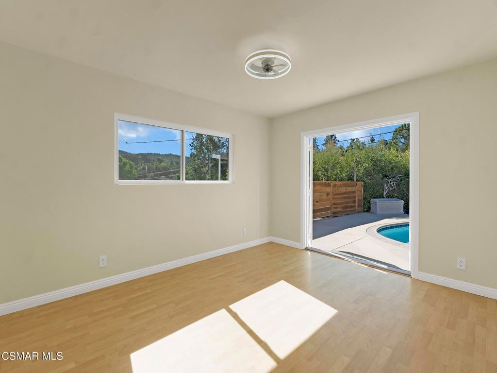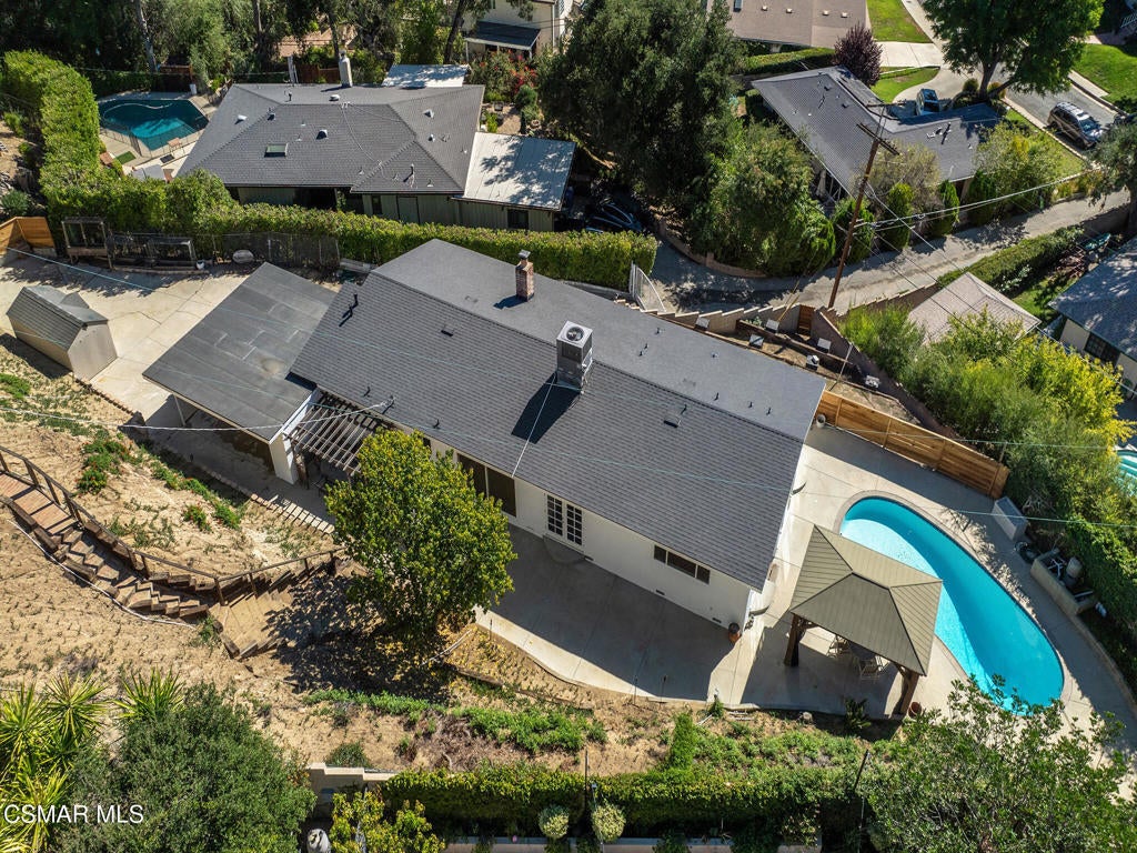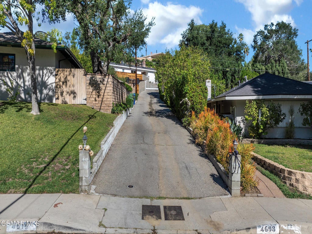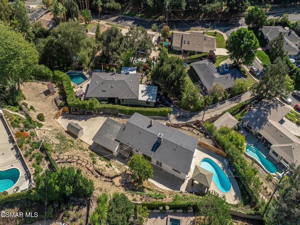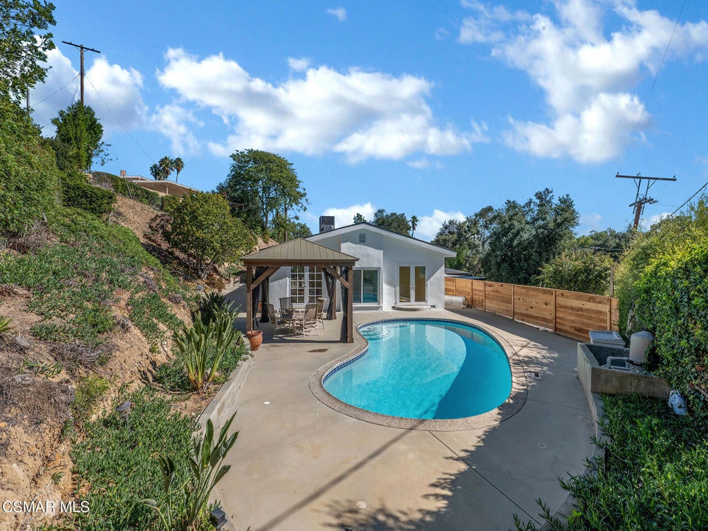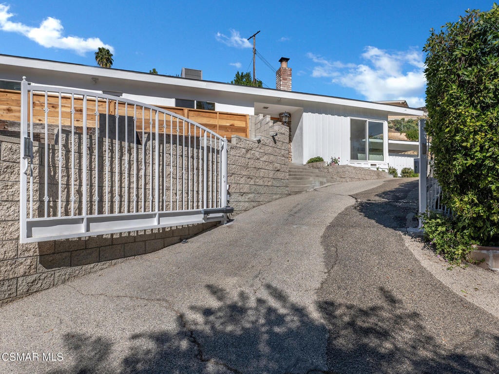 Private, gated mid-century single-story pool home with lots of natural light located in the prestigious Hana Valley of Woodland Hills. Drive up your private driveway which includes an electric gate for security and privacy. The home sits on almost a half-acre of land which includes a very serene wide patio area in the back of the home perfect for entertaining including a beautiful sparkling pool next to the master bedroom. Once you enter this very special home you will notice the extra-large glass windows in the living room emitting lots of natural light. Sit back and enjoy the views of the many surrounding mature trees while getting the warmth from the inviting fireplace. The kitchen has stainless steel appliances, ample white cabinetry, granite countertops, kitchen island with four burners and hood vent. Refrigerator, washer and dryer are included. Master suite has a sunken tub and view to outside pool area. The bedrooms in the front of the home have peaceful views of the beautiful mature trees. The house has beautiful wood flooring throughout. The living room wood floor was just refinished. Additionally, the roof is very new including new fascia boards, new windows throughout, new bathroom tiles, newer AC and ducts, new paint inside and outside, new piping under the house to the main line, new water filtration system. Additionally, the side yard may offer opportunities for an ADU. This beautiful home has so much to offer. Don't miss out on this great opportunity!