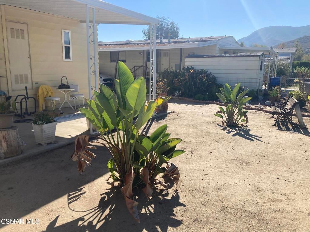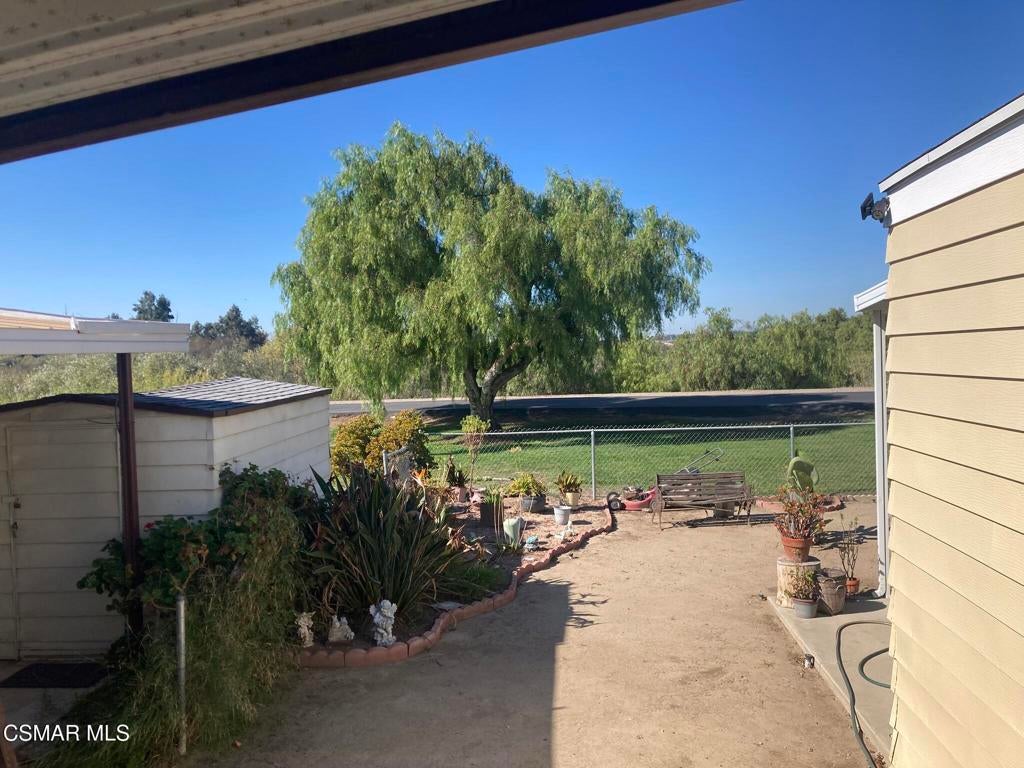 VIEW - VIEW- VIEW: Beautiful view of the sunsets & hills, backs open space and the Arroyo, This 2 bedroom 2 bath home needs some updating. Exterior has been freshly painted, hot water tank 5 yrs. old., new roof, double pane windows, earthquake bracing in 2005. Home has a spacious porch, light and bright living room, dining room with built-in hutch, very large kitchen, laundry room with ample storage that leads to carport, Oversized shed with add on storage. Fenced backyard. New space rent is $960.00