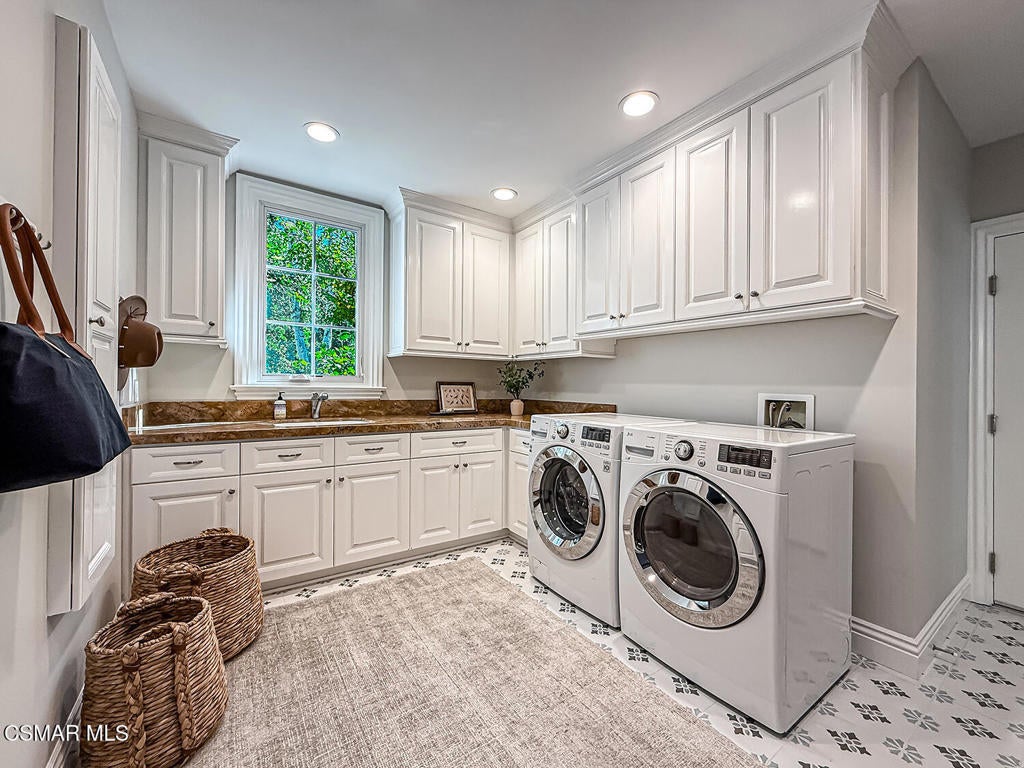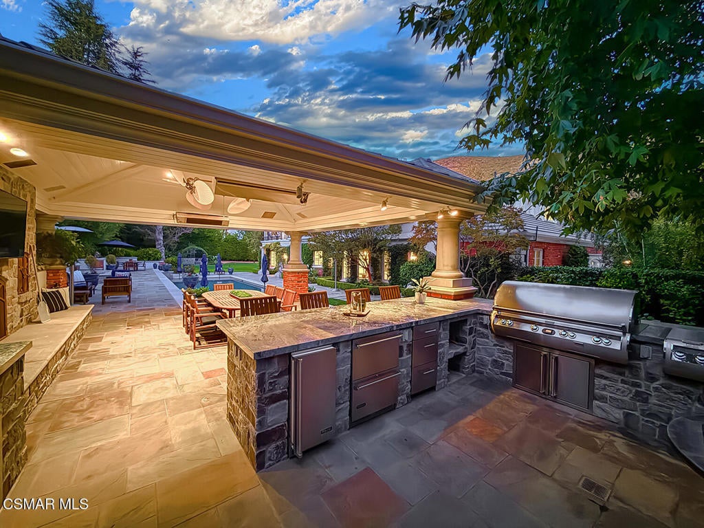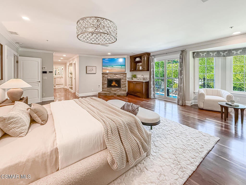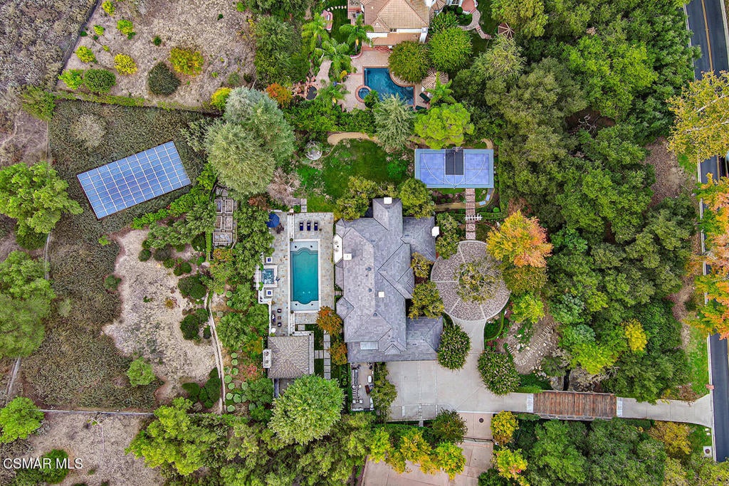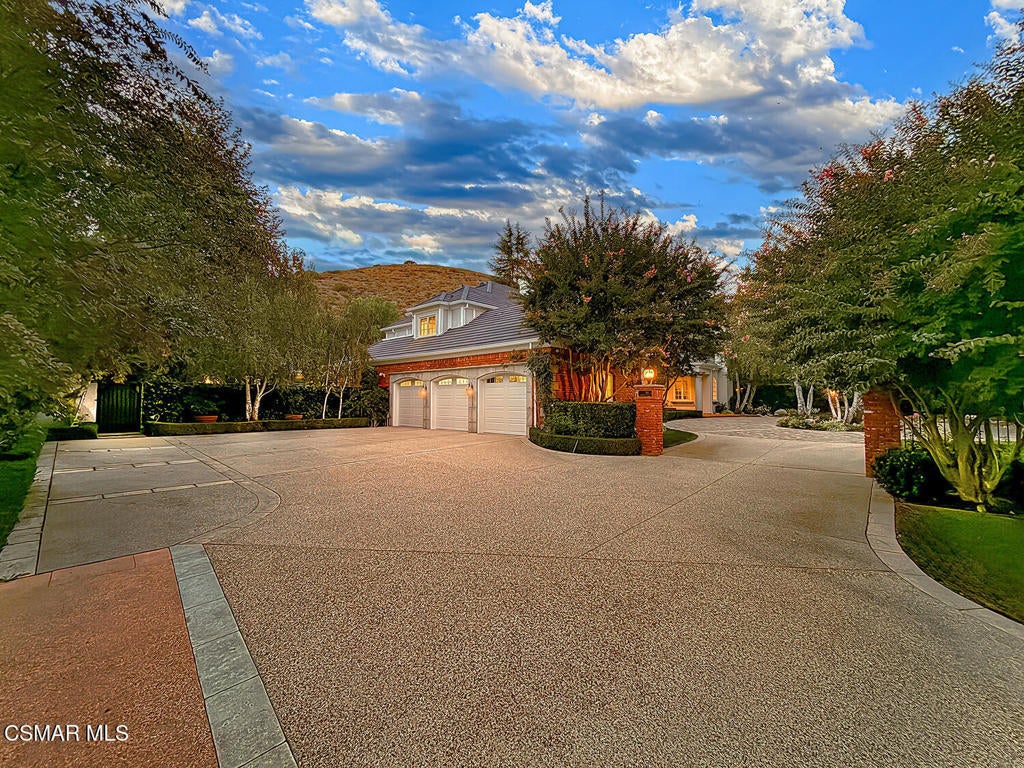 Modern Elegance Meets Resort Living in North Ranch Country Club EstatesEnter through your enchanting wooden bridge into your private tree-lined motor court, where every detail of this estate reflects sophistication, comfort, and resort-style living in one of Westlake Village's most prestigious guard-gated communities.Set on a premier 2.15-acre lot, this stunning custom residence blends timeless architecture with thoughtful modern upgrades, including a brand-new concrete roof, brand new Bosch HVAC systems with new ducting, new gutters, refinished hardwood floors, fresh interior paint, upgraded primary bathroom with bonus space great for yoga, exercise equipment or meditation and a restructured primary balcony.Inside, a grand marble foyer opens to light-filled living spaces with cathedral ceilings, stacked-stone fireplaces, and custom craftsmanship throughout. The chef's kitchen is a true centerpiece with Wolf and Subzero appliances, an oversized quartz island, and an elegant butler's pantry as well as oversized walk in pantry. The primary suite is a serene retreat complete with a fireplace, sitting area, spa-inspired bath, and an expansive walk-in closet.The private backyard is a true resort escape featuring a custom cabana with full outdoor kitchen, BBQ, Viking fridges, brick pizza oven, and stone fireplace. Enjoy the resort-style pool and spa with cascading waterfall, multiple fire pits, and a lighted sport court perfect for tennis, pickleball, basketball, and more. The grounds also offer flat lawns, an enclosed garden, an outdoor shower, and fully owned solar panels, surrounded by lush, mature landscaping.Every detail of this home reflects sophistication, comfort, and resort-style living in one of Westlake Village's most prestigious guard-gated communities.