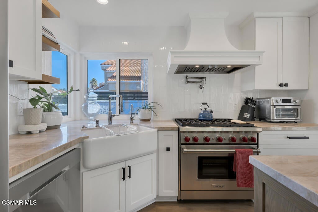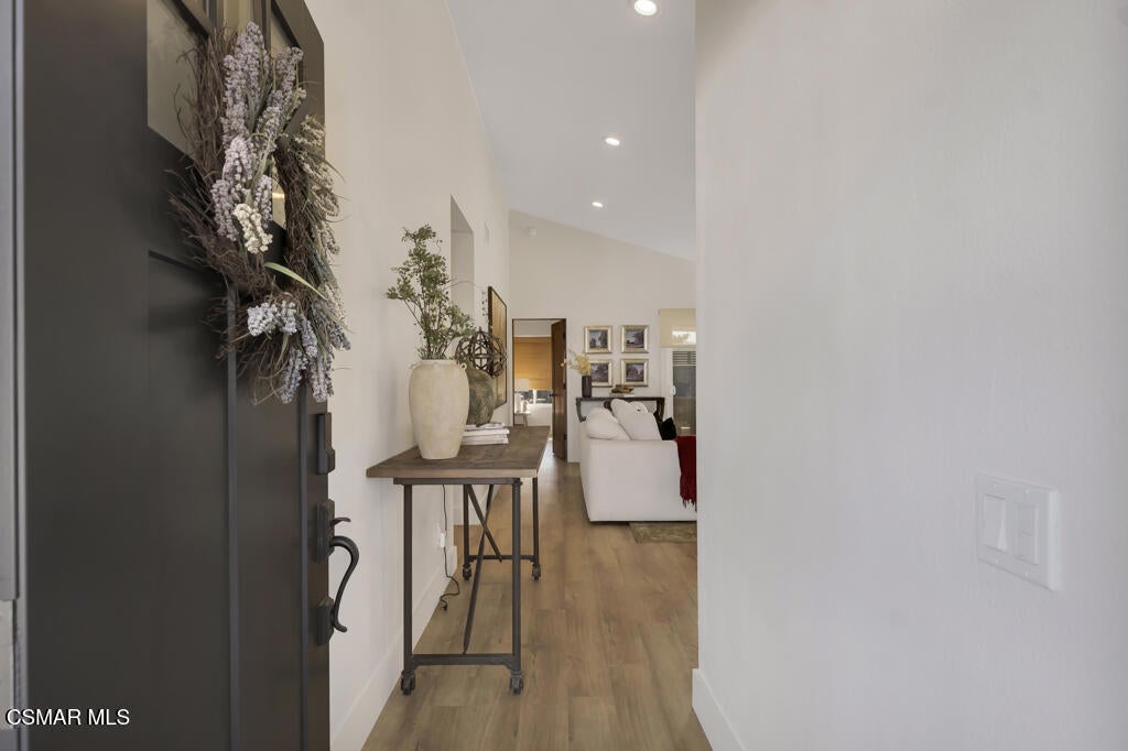 This beautifully updated single-story home offers the perfect blend of comfort, style, and convenience. Enter through a private front courtyard with a tranquil fountain that sets the tone for this serene and inviting residence.Inside, you'll be greeted by high-end luxury vinyl plank flooring throughout and a bright, open layout that feels both modern and welcoming. The newly remodeled kitchen is a chef's dream, complete with upgraded shaker cabinets, stainless steel appliances, a Wolf range, pot filler, genuine quartzite stone countertops and a farmhouse sink. The dining and living areas feature motorized window blinds, allowing you to easily control natural light and privacy.The primary bedroom suite includes a wall mounted TV and a remodeled bathroom with a walk-in shower. The secondary is quite spacious with a full bathroom conveniently located in the adjacent hallway.The two-car garage provides more than just parking, it includes a private laundry room with washer and dryer, epoxy flooring, an EV charger, water softener and attic storage with a pull-down ladder for easy access.Enjoy California living in the backyard oasis, featuring a covered patio, and spa, perfect for relaxing or entertaining.Additional highlights include a Nest thermostat, Ring security system, and housing provider will pay electricity, spa maintenance, and gardening services. This home offers high-end living in a peaceful, single-story setting, a rare opportunity you won't want to miss.