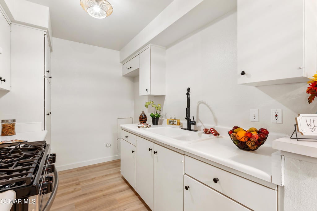 MONTHLY HOA DUES COVERS PROPERTY TAXES, FIRE AND EARTHQUAKE INSURANCE, TRASH, WATER, SEWER, EXTERIOR PEST CONTROL SERVICE, PLUS BUILDING AND GROUNDS MAINTENANCE Experience the perfect blend of modern upgrades and convenient living in this airy and bright 2 bedroom, 1 bath Co-Op condo located in the sought-after Fountain Park Community. As you step inside, you'll immediately notice the beautifully hued brand new laminate wood flooring that flows seamlessly throughout the entire space providing a clean and contemporary look. Home also boasts new modern lighting fixtures, new window treatments, newer windows and fresh paint throughout. The kitchen is equipped with a brand-new gas range, new modern sink faucet and cabinets galore. The bathroom has received a brand new vanity, mirror, and toilet providing a fresh and clean look. One of the standout features of this condo is the large, spacious, covered private patio, offering a perfect spot for outdoor relaxation and entertaining guests. This unit is located on the first floor with absolutely no stairs from the dedicated carport space to the front door. In addition to the wonderful interior features, the HOA provides access to a host of amenities including a beautiful new pools/relaxation area, sport court and play area. MONTHLY HOA DUES COVERS PROPERTY TAXES, FIRE AND EARTHQUAKE INSURANCE, TRASH, WATER, SEWER, EXTERIOR PEST CONTROL SERVICE, PLUS BUILDING AND GROUNDS MAINTENANCE - all providing peace of mind and added value! Freeway close and located just blocks from The Village and Westfield Topanga Plaza, you are ensured easy access to shopping, dining and entertainment. This condo is a true gem, offering a perfect combination of stylish upgrades, comfortable living and excellent community facilities. Don't miss the chance to make this your new home!
