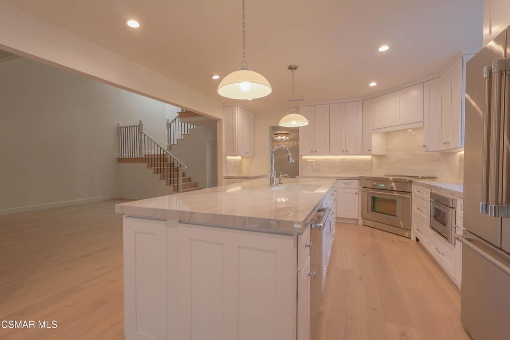 Designer Finished with Timeless Taste and Visionary Value -Unmatched quality, timeless sophistication and value come together in this fully remodeled home by the acclaimed Claire Kramer Design Team. Every major system and finish is brand new and intended for modern comfort --new AC, all-new plumbing, solid-core doors with sleek hardware, upgraded lighting throughout, and Thermador appliances. Inside, white oak engineered hardwood floors flow throughout while striking black-and-white marble and granite floors add bold contrast in the entry. Each bathroom showcases custom white oak vanities accented with chic light fixtures. The designer kitchen includes a spacious pantry and nine-foot island with porcelain countertops. The expansive primary retreat offers views from every window, a custom window seat, and a true spa-inspired ensuite featuring custom woodwork and lighting, an oversized shower with overhead light strip, and a stunning skylight. New landscaping with automatic sprinklers ensures effortless upkeep. Located on a wide, quiet street with two parking spaces on the side of the home, this property lives like a true single-family residence with the convenience of HOA coverage for trash, streams, exterior paint, comprehensive roof coverage, front lawns, fences, mailboxes, trees, pools, and spas. All of this in one of Westlake's most coveted locations - walk to parks, golf course, boutique shops, top restaurants, and The Stonehaus, Westlake's favorite winery and coffee bar. Every single upgrade adds true value. With over $400,000 in renovations, this is turnkey, designer-finished Westlake living at an exceptional price.