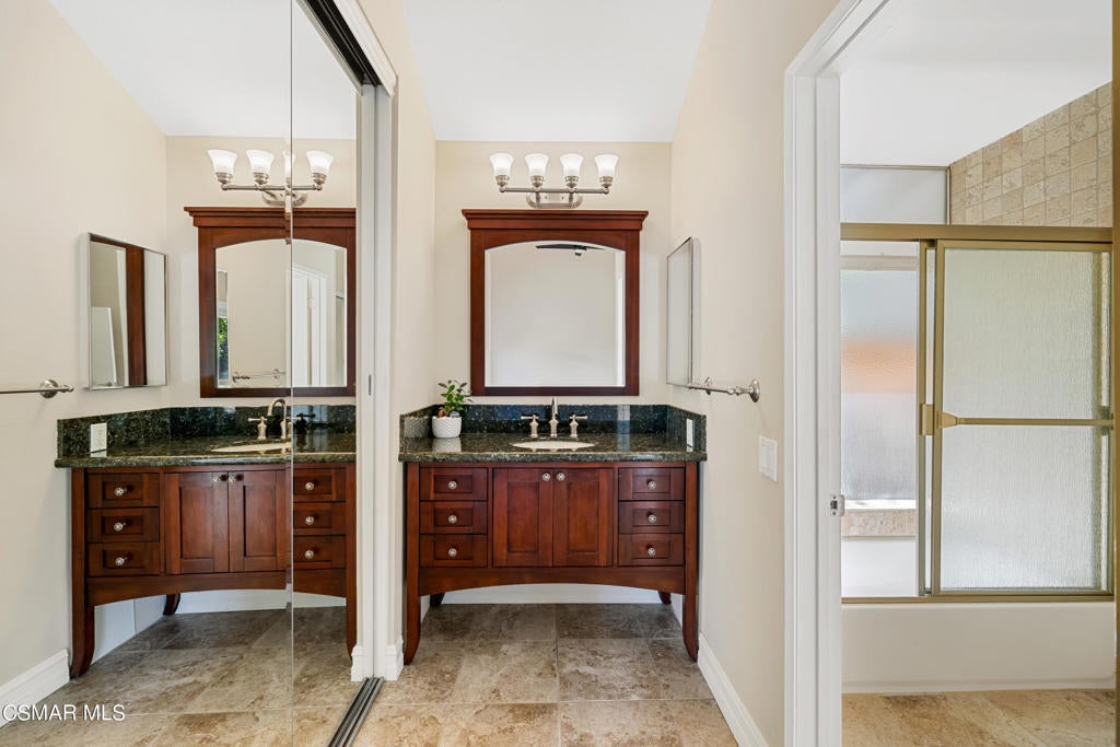 Nestled within the highly sought-after Westlake Hills neighborhood of North Ranch in Westlake Village, this charming single-story home sits on a serene cul-de-sac and a spacious lot. Thoughtfully maintained and tastefully upgraded, it offers a delightful blend of comfort and style.The kitchen and bathrooms feature elegant granite countertops, upgraded vanities, and refined baseboards. The primary bath showcases a beautiful travertine shower surround and a luxurious soaking tub. In the kitchen, newer stainless steel appliances--including a stove and microwave--add both function and polish.The inviting family room includes recessed lighting, a cozy fireplace with a stylish stacked-stone facade, and a versatile two-sided breakfast or cocktail bar. Throughout the home, tumbled travertine flooring adds warmth and sophistication, while ceiling fans in each bedroom enhance year-round comfort.Outdoors, enjoy a private, expansive yard with two charming brick-accented patios and lush mature landscaping, creating exceptional curb appeal. Ideally located near parks, shopping, and schools--including an elementary school just a few blocks away--this is a prime Westlake Village / North Ranch opportunity. Located in close proximity to Trader Joe's and The Promenade with Movie Theater, Barnes & Noble and more!