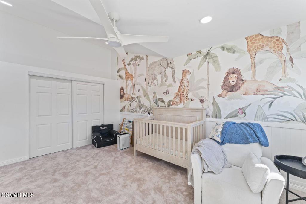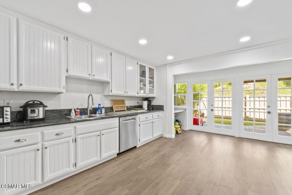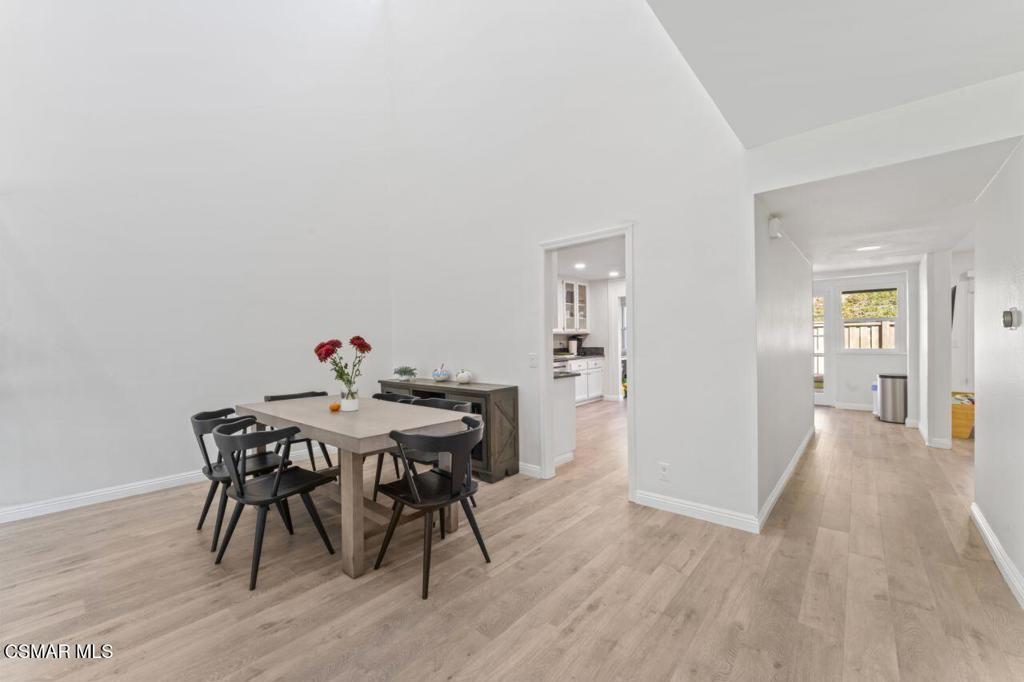Welcome to a home that feels as timeless as it is inviting. Tucked gently into the sought-after Racquet Club Villas community of Thousand Oaks, this spacious 4-bedroom townhouse isn't just a place to live. It's a place to settle in, to grow into, to savor. With one of the largest floor plans in the community, offering over 2,250 square feet, there's room for everyone and every lifestyle.Step inside and you're greeted by soaring ceilings and sunlight pouring through expansive windows and sliding doors. The main living area exudes warmth, where evenings are spent by the glow of the gas fireplace and mornings are greeted with sweeping hillside views from the balcony. Here, watching sunsets becomes part of your daily rhythm.The open-concept layout flows effortlessly into the dining room and bar area, making this home an entertainer's dream. Just beyond, the beautifully appointed kitchen is the true heart of the home. Complete with gleaming granite countertops, stainless steel appliances, and elegant cabinetry including glass display uppers, it invites gathering, conversation, cooking, and connection. French doors off the kitchen welcome the morning light and open to a private rear patio, perfect for al fresco meals, weekend grilling, or quiet moments of reflection.The primary suite, located on the main level, is a serene retreat. Wake up to treetop views, step outside onto the balcony for fresh air, and enjoy the convenience of dual closets and your own ensuite bath. A cozy den off the kitchen opens to the back patio as well, creating a perfectly tucked-away lounge for movie nights or game evenings.Upstairs, two additional bright and comfortable bedrooms share a well-lit bathroom, ideal for family, guests, or a dedicated workspace.Additional features include: newer windows throughout, indoor laundry room, a private two-car garage with extra storage, and newer wood-like flooring that ties the main level together with warmth and style.And then, of course, there's the location: Thousand Oaks living at its finest. Nestled minutes from parks, hiking trails, shopping, restaurants, and top-rated schools, this home offers the balance of tranquility and convenience that makes this community so cherished.More than a home this is where life unfolds beautifully.Welcome to Racquet Club Villas.