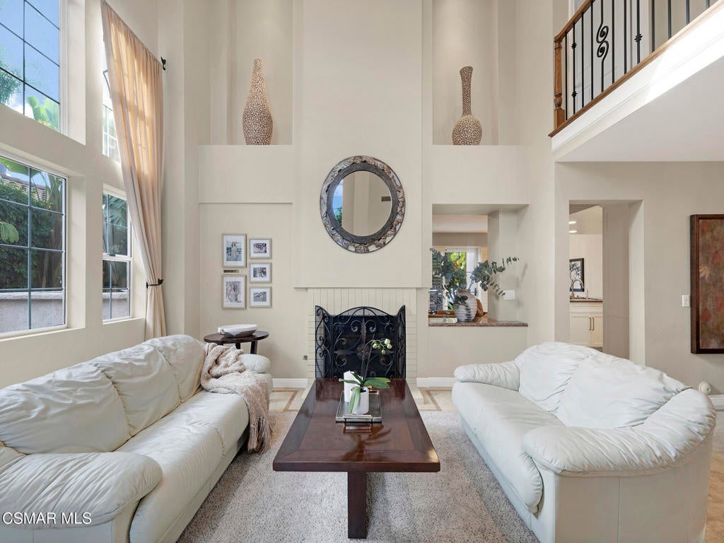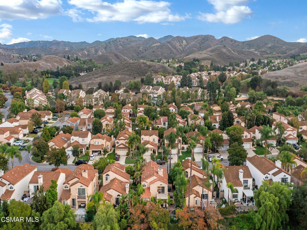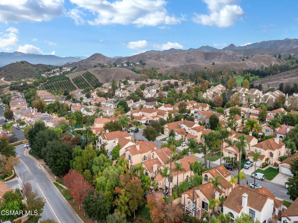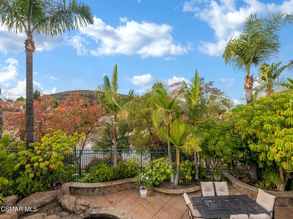 Welcome to this move-in-ready home in the prestigious Wood Ranch Community! Wood Ranch features a golf course with a country club, multiple parks, tennis courts, community pool and amazing hiking trails. This home offers over 1,800 square feet of living space with 3 bedrooms, 2 full bathrooms, and a powder room. Step inside to a living room with soaring cathedral ceilings that flows seamlessly into the dining room, creating an ideal space for entertaining. The family room opens to a fully remodeled kitchen featuring white shaker cabinets, granite countertops, and stainless steel appliances, complemented by a built-in breakfast nook.Throughout the house, you'll find warm wood floors and elegant plantation shutters. The bedrooms and family room is equipped with a state-of-the-art surround sound system for an immersive entertainment experience.Upstairs, two spacious secondary bedrooms share a hall bathroom with a walk in shower. The Primary Suite is a true retreat with vaulted ceilings, a private balcony perfect for your morning coffee, and a large en-suite bathroom. The primary bathroom features a double vanity, a soaking tub, a separate shower, and a walk-in closet.The backyard is an entertainer's oasis, complete with waterfalls with heated and fully automated spa and soaking pool. Includes color changing LED lights, an outdoor kitchen with Outdoor BBQ area includes Viking grill, stainless steel refrigerator with beer tap and stainless-steel refrigerator for beverages, and lush, tropical landscaping. Exterior lighting through the property for landscape, BBQ area and 4 ring camera system. This house is not only beautiful but also well-maintained, with recent upgrades including a new roof in 2022, a new AC compressor and coil in 2025, and a tankless water heater installed in 2023. Enjoy the convenience of a nearby park and Wood Ranch Elementary School. There is nothing left for you to do but move in and enjoy your new home!