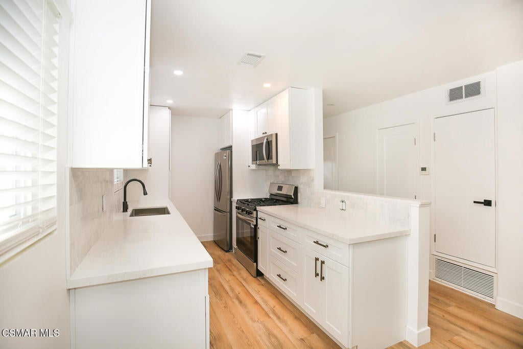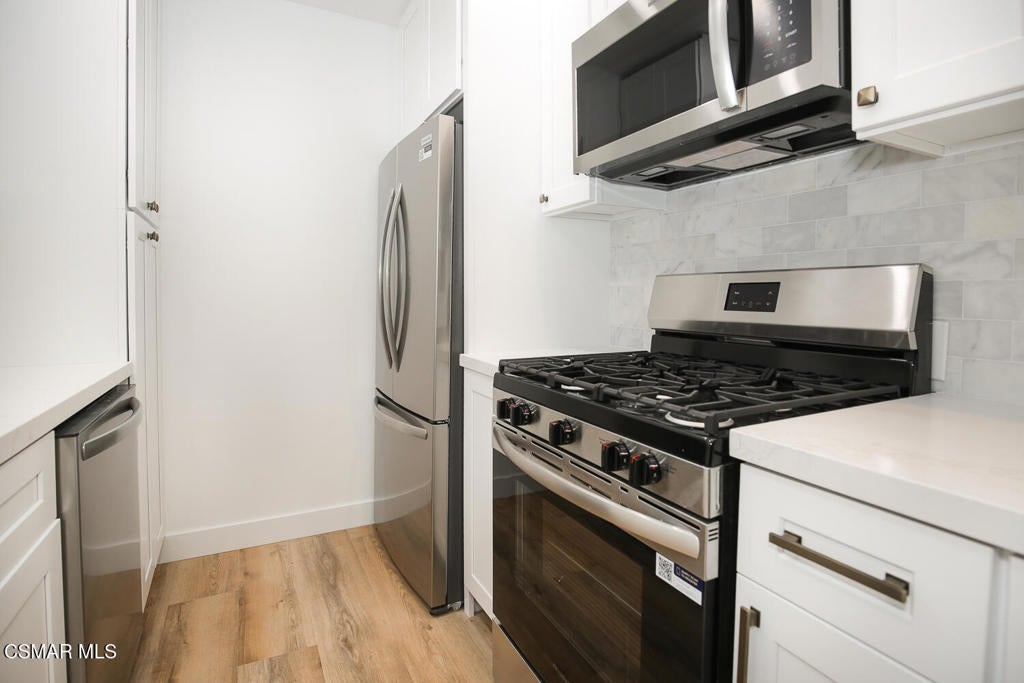 This is a great opportunity to live in a place that has everything you wish for and need! Located in a quiet neighborhood of Toluca Lake, you will be far enough from the freeway noise but close enough to hop onto any of the main freeways - 101, 134, 170. Just a short distance from great shops and restaurants, NOHO art district and many of the studios NBC, ABC, Walt Disney, Nickeldodeon, Warner Bros. This end unit is updated throughout including an updated kitchen with stainless steel sink and appliances including refrigerator, new flooring, upstairs laundry area with washer and dryer included and ceiling fans in both bedrooms. The slider off the living room gives you access to the private patio area. Be sure to check this out soon - it won't last!