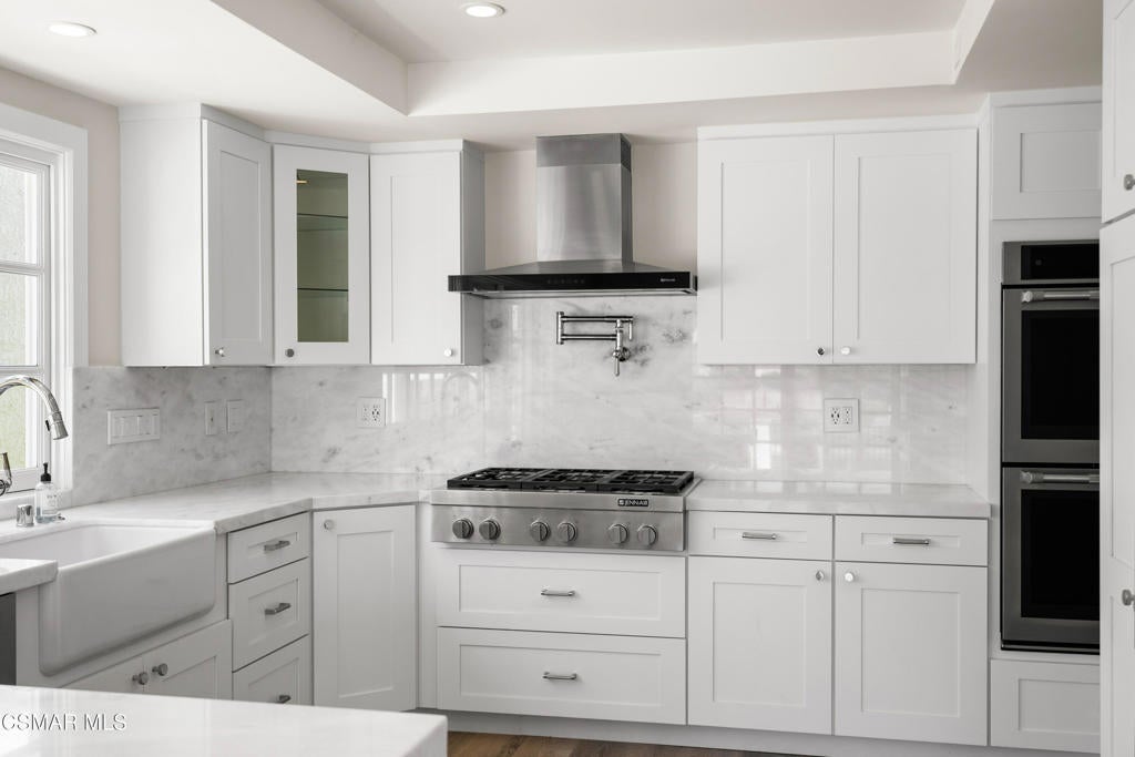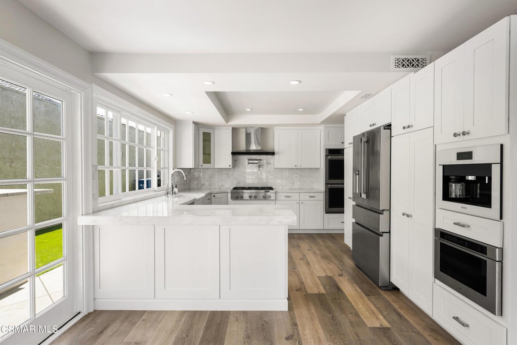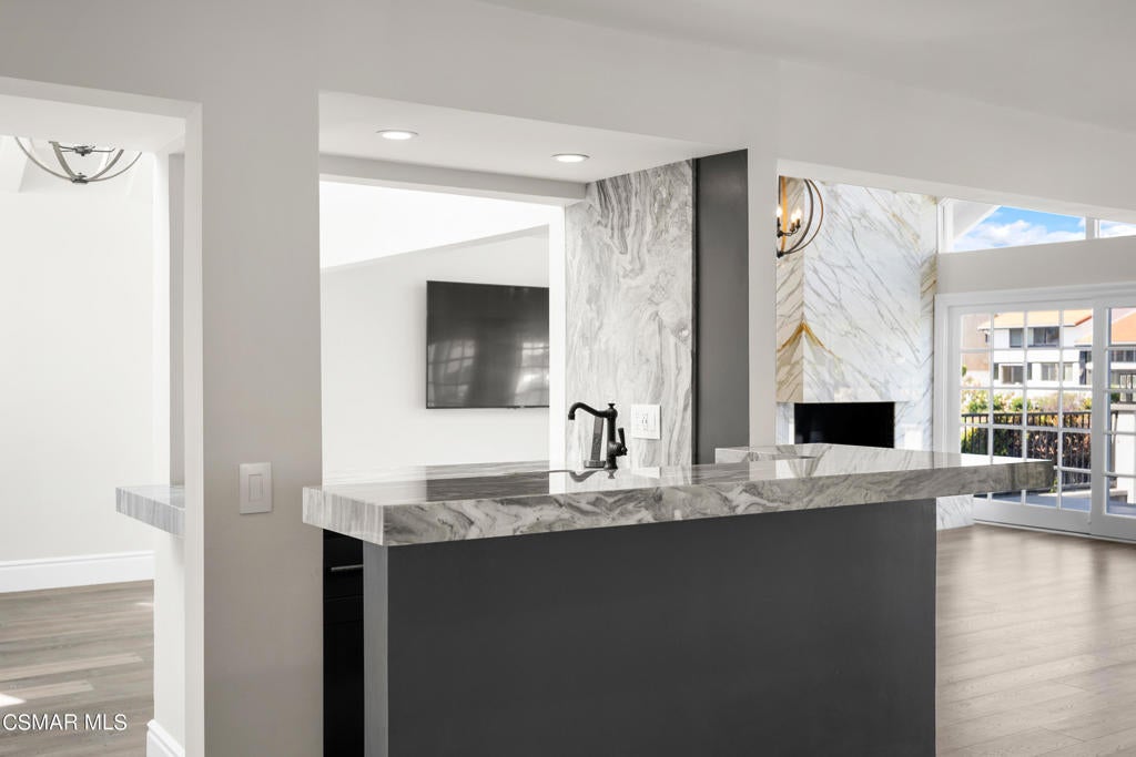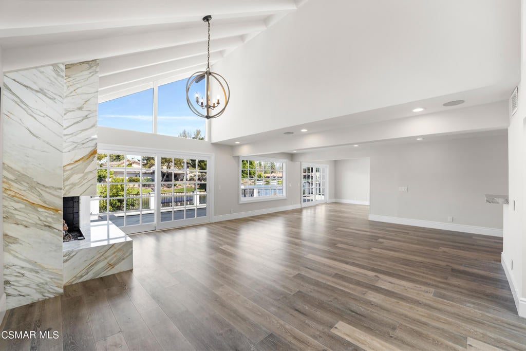 This rare, lake front rental is located on the guard-gated Westlake Island with sweeping views of the marina and Santa Monica Mountains! It is newly renovated with hardwood flooring throughout, soaring vaulted ceilings, striking marble fireplace, skylights, and a built-in outdoor barbecue with a sprawling patio and sparkling pool. The gourmet kitchen boasts gorgeous countertops, top of the line appliances, built-in Miele coffee machine, plus a light and bright open floor-plan that seamlessly flows to the open family room with sliding doors leading to the patio, offering the ideal layout for modern living. The downstairs bedroom is perfect for a guest room or office space with an additional powder room complete with a shower. The primary retreat is a luxurious sanctuary designed for ultimate relaxation and comfort. The bedroom boasts a beautifully remodeled ensuite bathroom, featuring dual sinks and sleek modern finishes. Unwind in the deep soaking tub or enjoy the convenience of a separate glass-enclosed shower. Ample closet space provides plenty of storage, while the cozy sitting area offers a tranquil spot to take in the stunning lake views. An expansive deck overlooking the water leads to a private dock with a boat, perfect for a sunset cruise or visiting one of the lakefront restaurants. Boat, walk or bike to Westlake's best dining, retail shops or yacht club just minutes from the property, plus exemplary Las Virgenes schools, nearby parks, playing courts and hiking/biking trails. This is the very best of Southern California lake life!