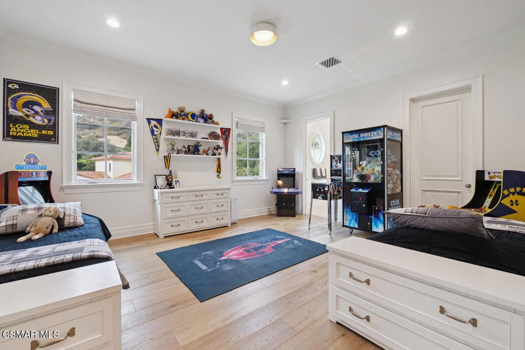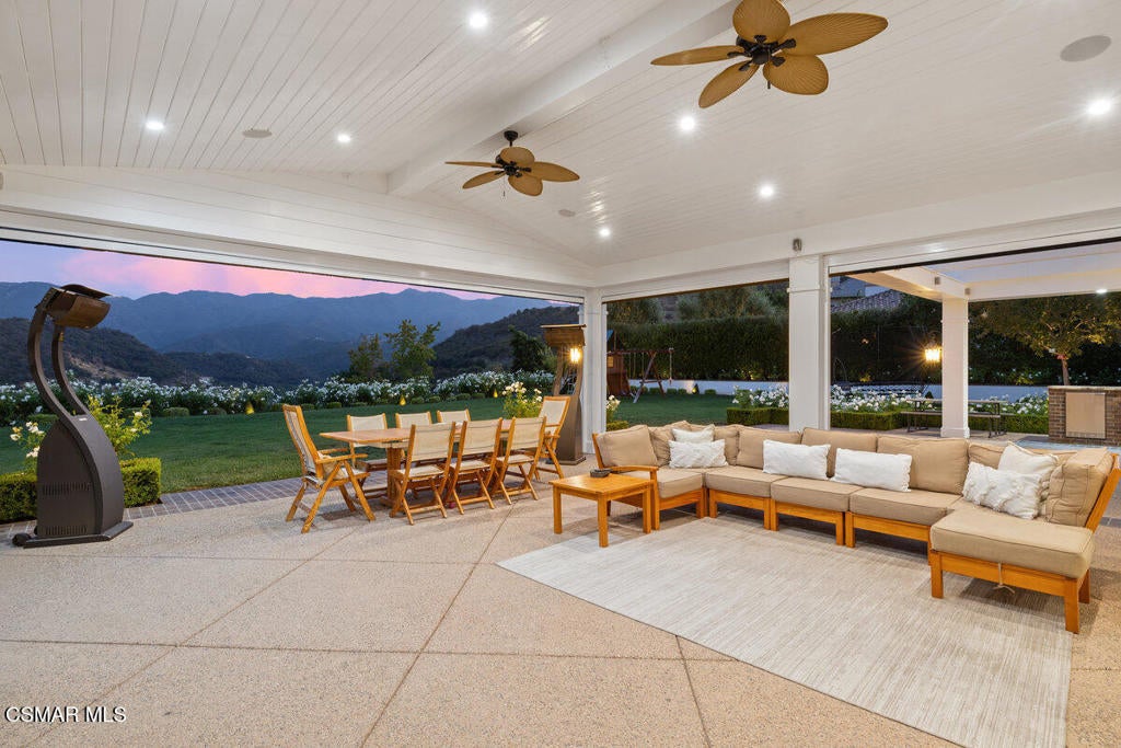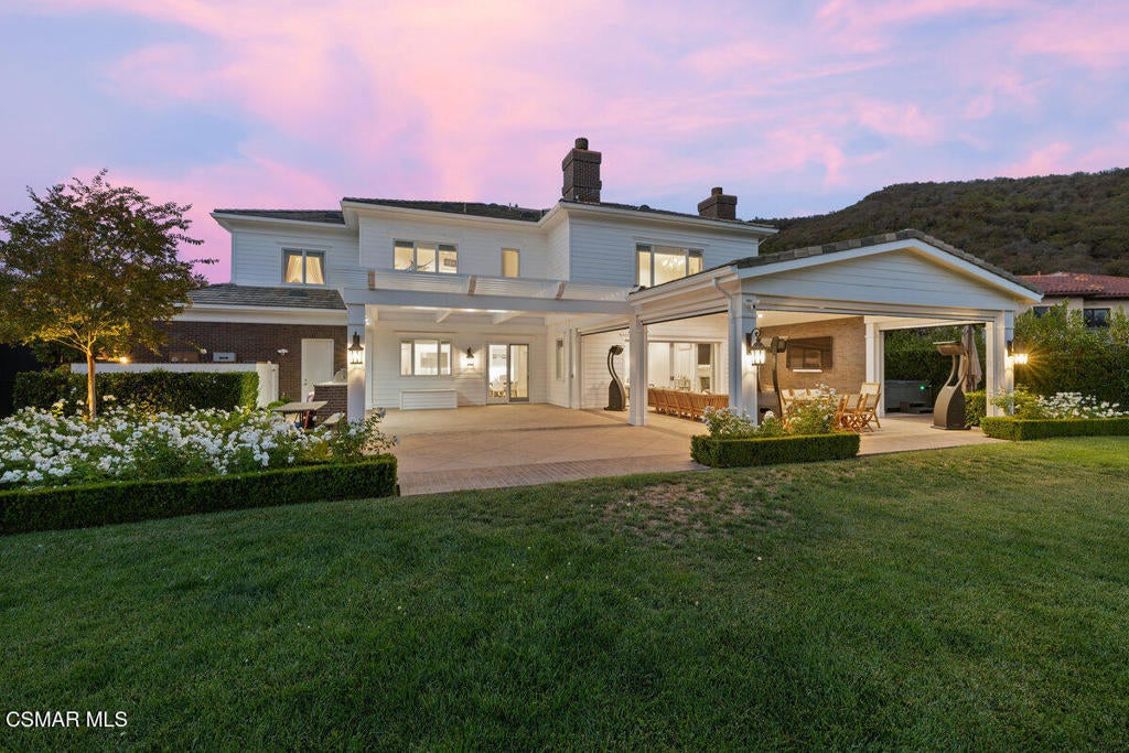 Sherwood Country Club. Elevated on a prime lot, this residence showcases breathtaking, unobstructed mountain vistas and sits just moments from the Sherwood Lake Club and the legendary Jack Nicklaus-designed golf course.Spanning over 5,000 square feet, the expansive open-concept floor plan features 5 bedrooms and 5.5 baths, thoughtfully designed for both grand entertaining and comfortable everyday living. The welcoming covered front porch opens to an elegant foyer, leading into formal living and dining spaces that set the tone for timeless sophistication.At the heart of the home, the great room with its cozy fireplace flows seamlessly through expansive resort-style pocket doors onto a spectacular covered terrace with vaulted ceilings, automated screens, and panoramic views--creating the ultimate indoor-outdoor living experience. A fully screened-in back patio further extends the living and entertaining space, offering year-round enjoyment and effortless transitions between indoor comfort and outdoor beauty. The entertainer's backyard features lush lawns, a recently updated BBQ and cooking station with granite counters, fridge, and ice maker, all framed by the serene mountain backdrop.The kitchen has been completely refreshed, boasting Quartz counters, a butler's pantry, and brand-new Wolf appliances, blending modern functionality with gourmet excellence. A private guest suite and powder room complete the main level. Upstairs, four en-suite bedrooms with soaring ceilings include a showstopping primary retreat with its own fireplace, dual walk-in closets, and a spa-inspired bathroom with an oversized soaking tub and double steam shower. Multi zoned Trane hvac for the ultimate comfort in a two story home! Fully backed with Generac generator. When power goes down whole home stays alive! Complete water filtration designed specifically for the home and its incoming water supply. With numerous upgrades throughout, this residence offers a rare opportunity to own a truly luxurious home in one of California's most exclusive communities--where every detail reflects elegance, comfort, and world-class living.
