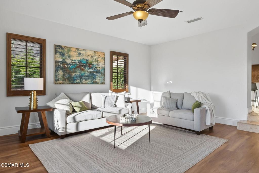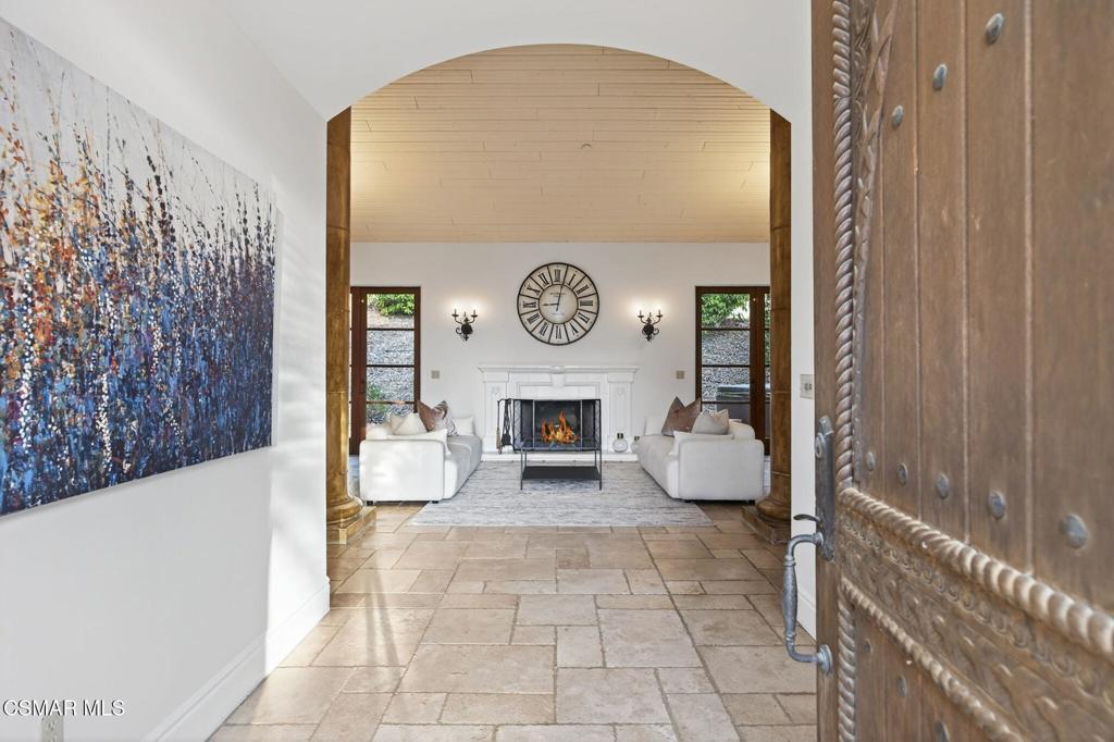 Welcome to this beautifully crafted Mediterranean custom estate set along one of Ventura County's most scenic roads, where rolling hills and the Los Padres Mountains create an unforgettable backdrop. Resting on just over one acre, this private retreat boasts over 4,000 sqft. of estate living with endless possibilities. The main residence features 3,220 sqft., complemented by a separate 860 sqft. guest home designed as a mirror reflection of the main villa's architectural charm. Step through the front courtyard and into a home rich with European ambiance and timeless character. The interiors blend Old-World Mediterranean craftsmanship with thoughtful modern touches - vaulted wood-beamed ceilings, authentic travertine flooring, custom finishes, and tall French patio doors that fill the home with natural light. The formal dining room flows seamlessly into the grand living room which is framed by two soaring pillars, creating an impressive entrance - an ideal setting for intimate dinners or lively gatherings. The kitchen offers both charm and functionality with granite counters, a glass-tile backsplash, Monogram appliances, beautifully built custom cabinetry, and a large walk-in pantry. A few steps down, a cozy family room with wood-like flooring and oversized bay windows takes full advantage of the setting - the sweeping mountain view truly takes center stage in this inviting space. The luxurious primary suite is a sanctuary of its own, featuring vaulted ceilings, a built-in coffee bar with refrigerator, and both a window and French doors that frame the mountain views and open directly to the private pool terrace. The spa-inspired bath includes dual sinks, a soaking tub, an enlarged walk-in tile shower, a separate water closet, a dedicated massage-table area, and a generous walk-in closet. The secondary bedrooms are great-sized, and the indoor laundry room provides exceptional utility with ample cabinetry and a convenient linen sink. Just outside, the estate invites year-round indoor-outdoor living with multiple covered patios, a built-in BBQ, and idyllic spaces for Al fresco dining or enjoying morning coffee overlooking the mountains. The gated pool area is perfectly positioned to capture the views as well, offering a serene, private retreat. The estate includes a 3-car garage, an exceptionally long driveway with room for all the toys, RV parking with hookups, and private parking for the guest house, which also features its own driveway and separate metered utilities - a rare and valuable benefit. Perfectly positioned across the property, the detached 2-bedroom, 1-bath guest home can be used for private quarters for extended family, luxurious guest space, or a desirable income-producing rental, the guest house elevates both the value and function of the compound. The grounds are embraced by mature fruit trees, avocado, orange, lemon, olive, and more, bringing both beauty and bounty throughout the seasons. With additional land and room for additional possibilities such as vineyards or future enhancements, the estate offers space to dream and expand. A true Mediterranean escape - custom crafted with style, surrounded by beauty, and designed to be lived in, loved, and shared.