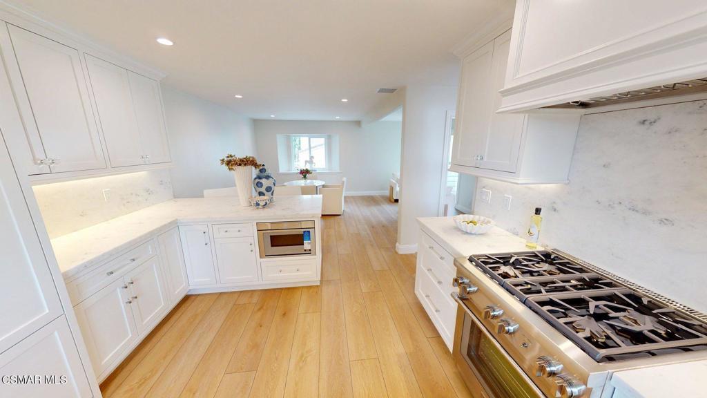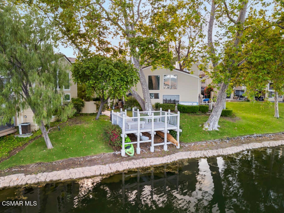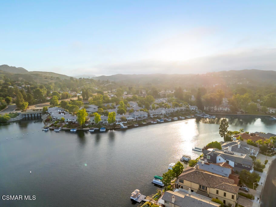 This exquisite home has been completely updated from top to bottom, featuring luxurious vinyl wood flooring, recessed lighting, and a dream kitchen with custom cabinetry, marble countertops, subway tile backsplash, built-in refrigerator, and professional-grade stainless steel appliances. The living room is a showstopper with its elegant fireplace and custom French doors that open to a large deck offering scenic views of the lush complex and a partial lake view. Adjacent to the kitchen, the spacious family room includes a second private balcony perfect for relaxing or entertaining. All windows and sliding doors have been replaced with energy-efficient upgrades, enhancing comfort and style throughout. Upstairs, the primary suite boasts stunning main channel lake views, two walk-in closets (including a cedar-lined one), and a spa-like en-suite bathroom featuring a custom vanity, marble countertops, and a beautifully tiled shower. The secondary bedroom also offers captivating lake views and mirrored wardrobe doors. The hallway bathroom includes an oversized soaking tub with elegant tile accents and a custom vanity. Additional highlights include a powder room on the entry level, a generous indoor laundry area with built-in cabinetry, a one-car attached garage with direct access, and an adjacent covered carport for added convenience. Community amenities are second to none enjoy two resort-style pools, a newly renovated clubhouse with a pool table and large-screen TV (ideal for entertaining), and a state-of-the-art fitness center. Three docks on the lake offer boat slips available on a first-come, first-served basis. The HOA covers insurance, all plumbing repairs, trash, water, cable, and high-speed internet. Live the lakefront lifestyle in Westlake Village one of Southern California's most desirable communities.