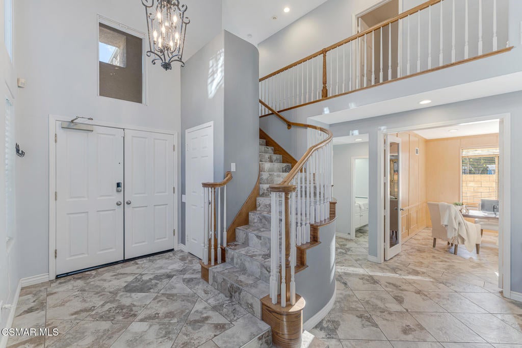 Welcome to 3969 Sunsetridge Rd. in Moorpark, a beautifully maintained 2,200 sq. ft. home offering 4 bedrooms and 3 bathrooms in the highly sought-after Belmont Community, including a desirable downstairs bedroom perfect for guests or a dedicated home office complete with custom built-in cabinetry and full bathroom on the lower level for added convenience.Step inside this light and bright home to soaring ceilings throughout the main living areas, creating an open, airy feel. The formal dining room sits adjacent to the living room, offering an ideal space for gatherings and celebrations. The family room flows seamlessly from the kitchen, making this layout perfect for entertaining and everyday connection.Upstairs, you'll find the spacious primary suite featuring a spa-like en suite bathroom complete with dual vanities, an oversized bathtub and a glass-enclosed shower, along with a large walk-in closet. Two additional secondary bedrooms and a well-appointed Jack-and-Jill bathroom are just down the hall. The laundry room is also located upstairs, offering ease to daily living.Outside, enjoy the refreshing pool, expansive backyard and beautiful paver hardscape -- perfect for hosting guests or unwinding in your own private retreat. With no neighbors behind you and the community pool area on one side, your privacy is a premium.Located close to shopping, dining and award-winning schools, this is the home you've been waiting for.