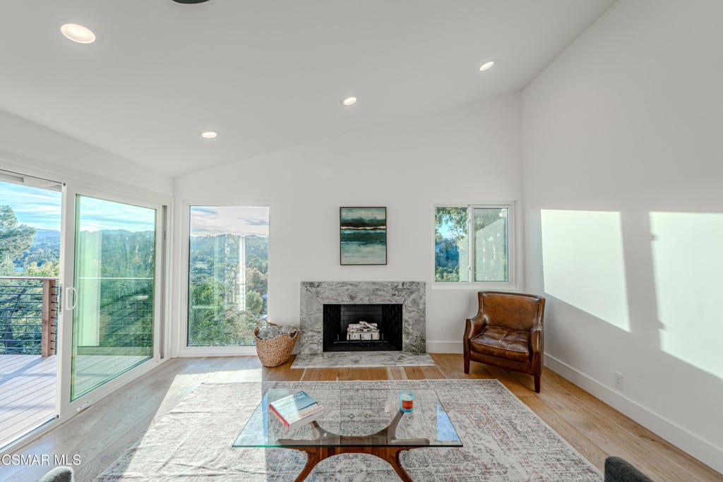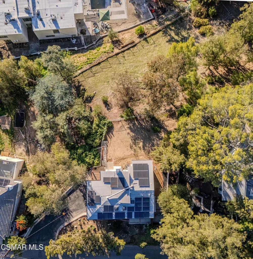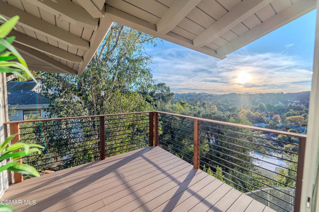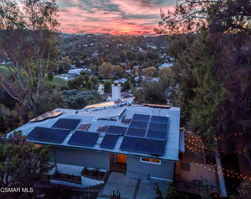 This mid-century modern 2 bedroom, 2 bath home is situated South of the Boulevard in the hills above the buzz of the city. Beautifully and thoughtfully updated, including new windows throughout that flood the house with natural light and offer gorgeous treetop and mountain views. This home features an open floor plan, complete with vaulted ceilings and skylights. Enjoy golden hour and pink sunsets from the deck and nearly every room of the house. The primary bedroom has an en suite bath with a herringbone tiled accent wall. The secondary bedroom, with closet and sliding door to the private side yard, is currently being used as an office - a wall would complete this as a bedroom. The long driveway to the attached two car garage offers plenty of coveted off street parking. Mature cacti and succulents line the steps to the front door, while the large 17,000sf lot offers endless opportunity to create the backyard of your choosing. Mechanical systems have been upgraded and the property features ample rooftop solar panels, a Tesla powerwall battery and battery monitoring system.