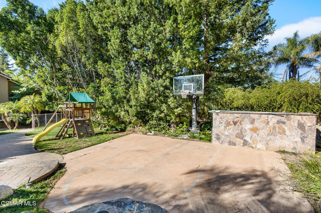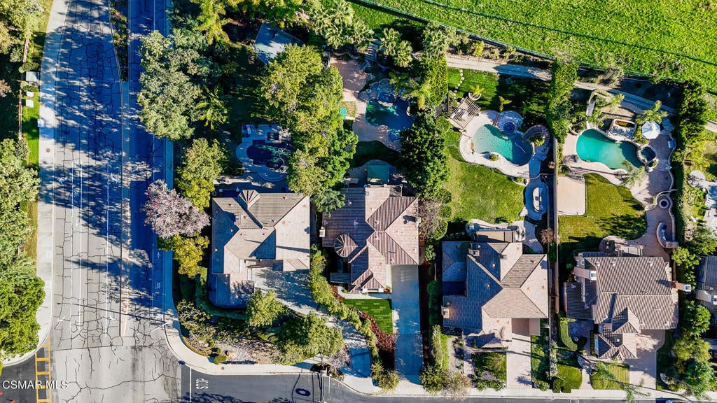 Welcome home to 516 Rustic Hills Drive, a stunning luxury estate located within the exclusive gated community of The Oaks at Wood Ranch. This home has 5 bedrooms, 5 bathrooms, approximately 4,103 square feet of living space on an expansive 16,758-square-foot lot, this is the largest home and lot within the community. The grand formal entry has soaring ceilings and opens seamlessly to an elegant, expansive dining room, setting the tone for refined living and entertaining. The chef's kitchen is thoughtfully designed with granite countertops, travertine flooring, an oversized center island, walk-in pantry, and abundant custom cabinetry for exceptional storage. Off the kitchen is a spacious family or living room with a fireplace to watch tv in. The main level offers a versatile game room or bedroom complete with its own private entrance and ensuite bathroom ideal for guests, or a private office.Upstairs, the spacious primary suite is a true retreat, featuring a dual sided fireplace, private balcony, and space for a sitting area or home office. The luxurious primary bath includes a large walk-in shower, separate soaking tub, and two generous walk in closets. The guest bedrooms are privately situated in their own wing, including one with an ensuite bath and two additional bedrooms sharing a dual-access bathroom. An upstairs laundry room adds everyday convenience.The resort style backyard is an entertainer's dream, showcasing a built-in BBQ, covered pergola, play set, sparkling pool with built in water slide, spa, and ample space for recreation, including a basketball area. Completing the property is a long private driveway, a single-car garage, and a separate two-car garage.