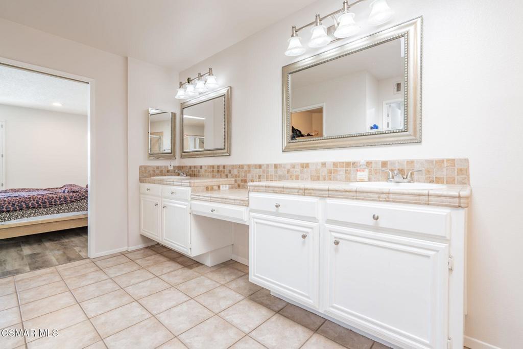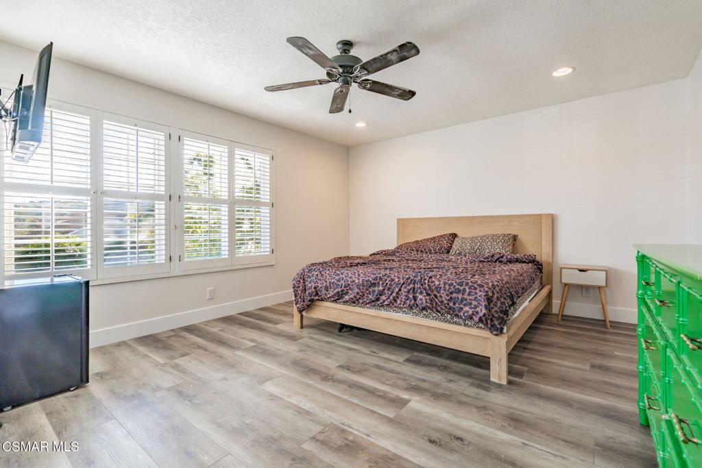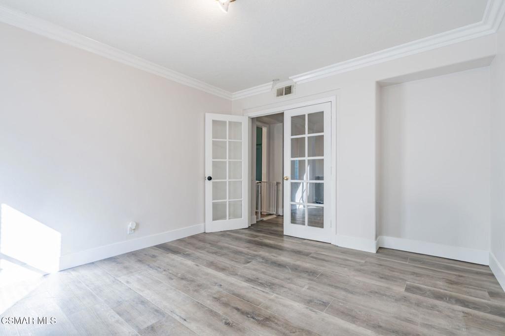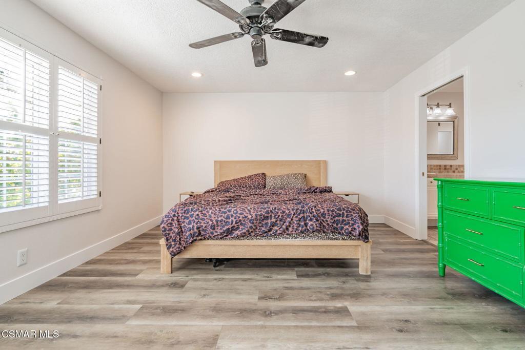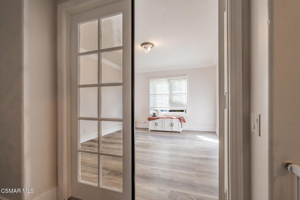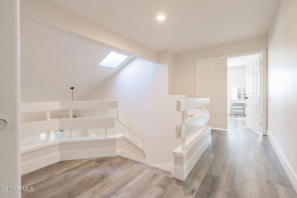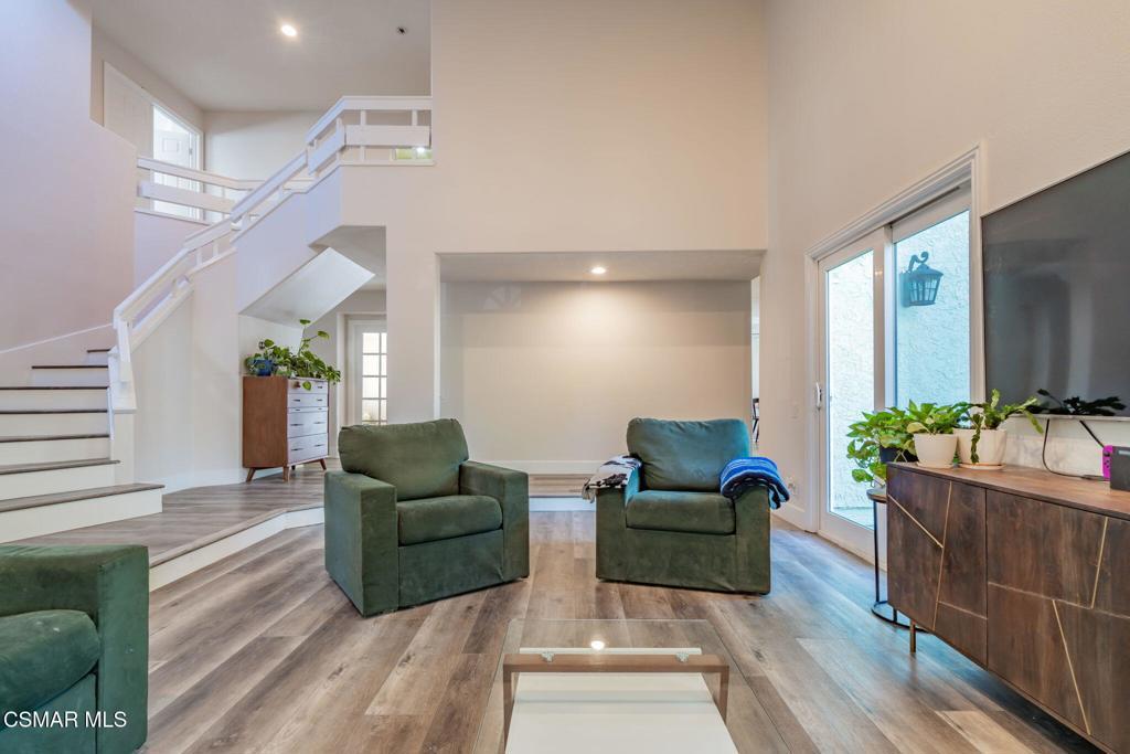 Welcome to this upgraded Moorpark home where space, style, and function come together.This 4 bedroom, 3 bath residence spans 2,645 square feet and shows pride of ownership throughout. The kitchen stands out with quartz countertops, stainless steel appliances, and clean modern finishes. Wood look vinyl flooring flows through the home, paired with recessed lighting, crown molding, and dual pane vinyl windows and sliders for comfort and efficiency.The living room makes a strong first impression with vaulted ceilings and abundant natural light. Two fireplaces add warmth and character, including one in the primary retreat. The primary suite feels private and relaxing, designed as a true escape.Downstairs offers a flexible room ideal for a fifth bedroom, home office, or formal dining area. The backyard features low maintenance turf, perfect for entertaining or easy everyday living.The three car garage includes a Tesla charger, built in workbench, and extensive storage cabinets and shelving. Organized. Functional. Ready to go.Newer exterior paint and fresh interior paint.