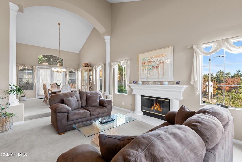 Lovely estate home located in the highly sought-after Rosewood community of Newbury Park. Quietly nestled against the gently rolling hills of the Rancho El Conejo range, Rosewood is an exclusive enclave of single-family homes rich in scenic beauty and surrounded by lush hillside terrain and open space.Enter through handcrafted double doors into a grand foyer, where an expansive staircase makes an elegant first impression. The light-filled formal living room features a fireplace and flows seamlessly into the adjoining formal dining room--ideal for entertaining. The gourmet island kitchen includes a breakfast area and opens to the inviting family room with surround sound and cozy fireplace, creating a warm and welcoming gathering space.Upstairs, the spacious primary suite boasts double-door entry, a fireplace, and a well-appointed en-suite bath with a high-end mirror with an electric defroster, oversized soaking tub, dual vanities, separate shower, and walk-in closet. Three additional bedrooms and a highly desirable bonus room--perfect for a home office, playroom, or media space--complete the upper level.Additional features include dual-glazed windows and central heating and air conditioning with newer dual forced-air condenser units serving separate living and sleeping zones, two-year old water heater, new, one-year-old concrete tile roof. The charming backyard offers a covered patio and provides a welcoming setting for family and friends to relax and gather.Located within the award-winning Conejo Valley Unified School District and close to equestrian and hiking trails, neighborhood parks, major shopping, cultural events at the Civic Arts Plaza, and convenient freeway access. Conejo Valley living at its finest is exemplified in the lovely Rosewood community.