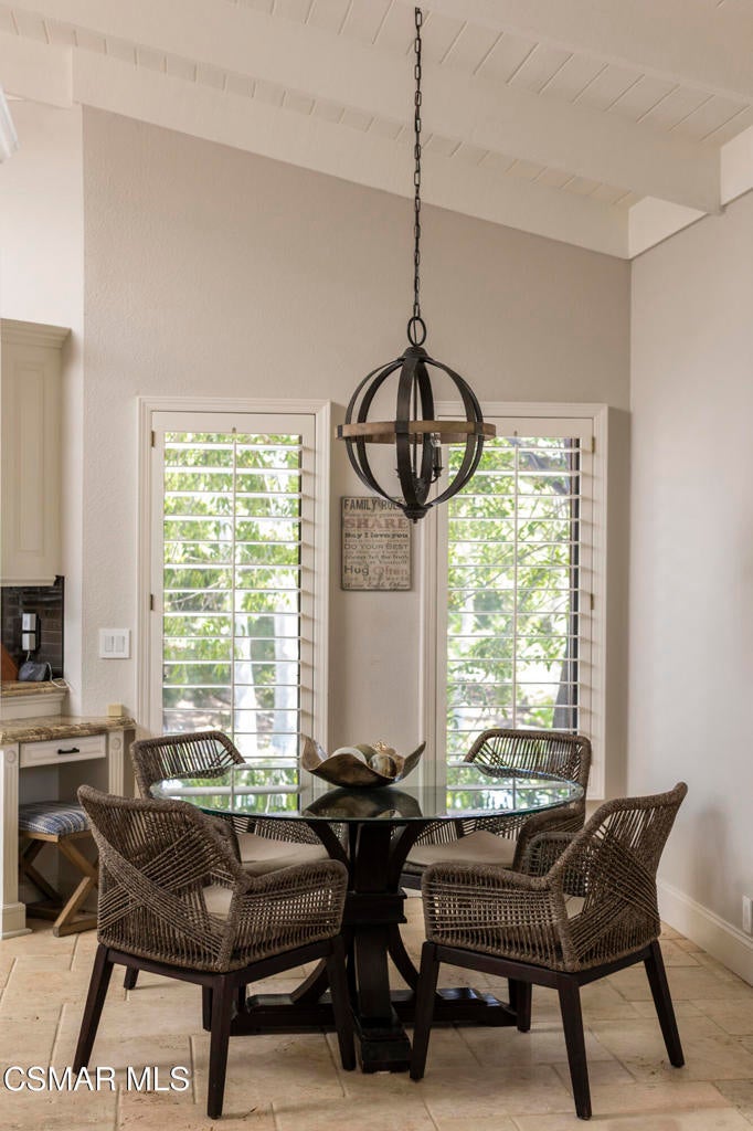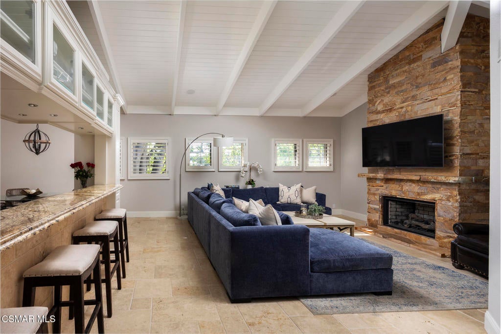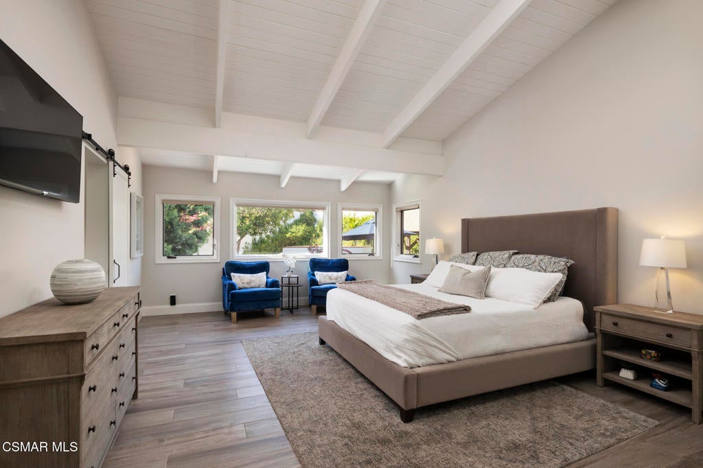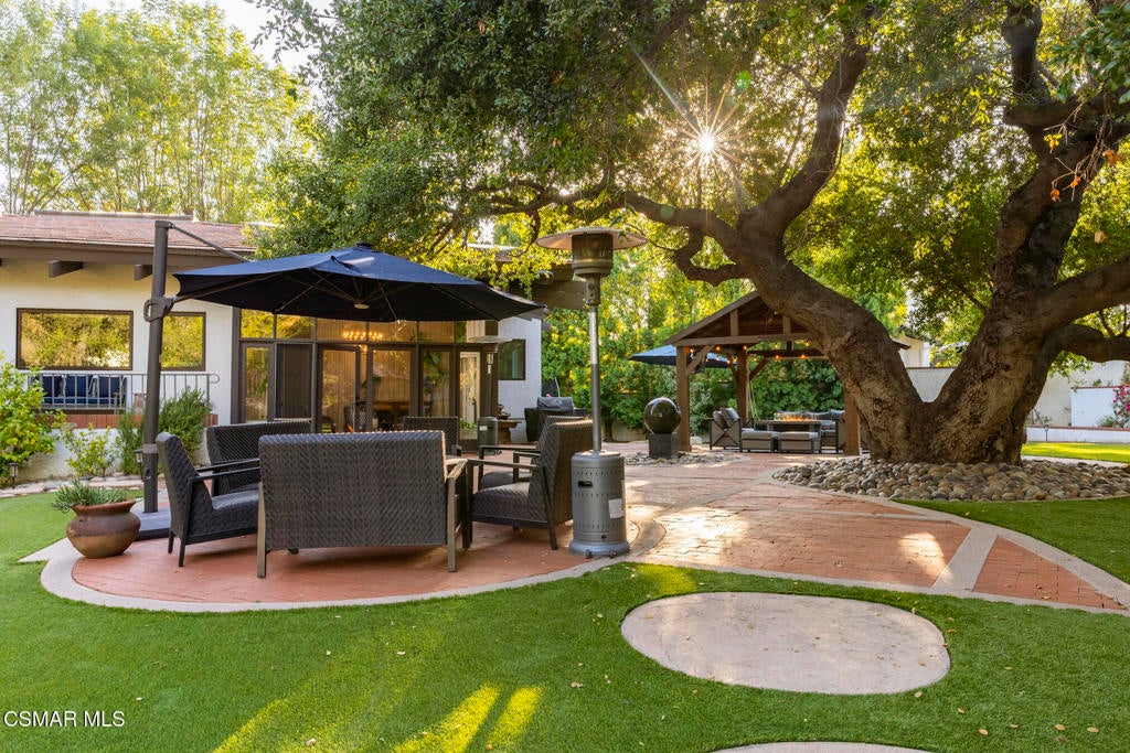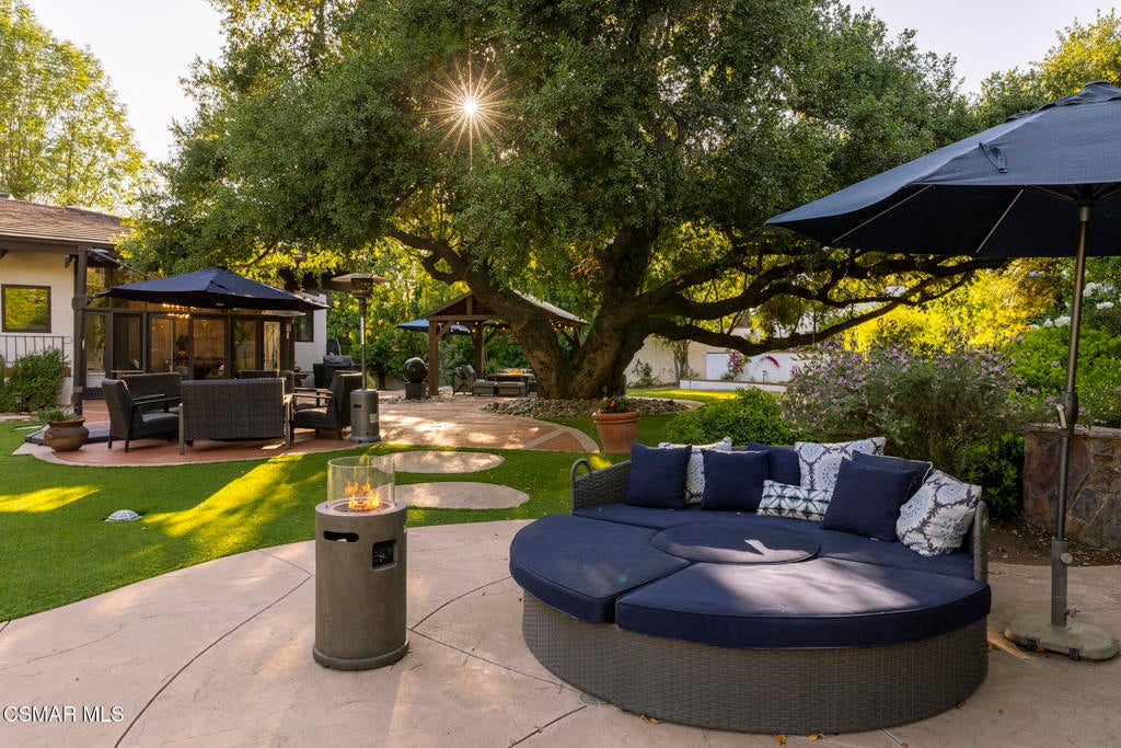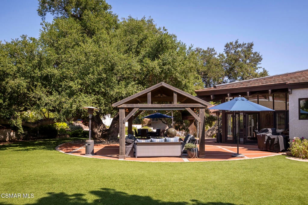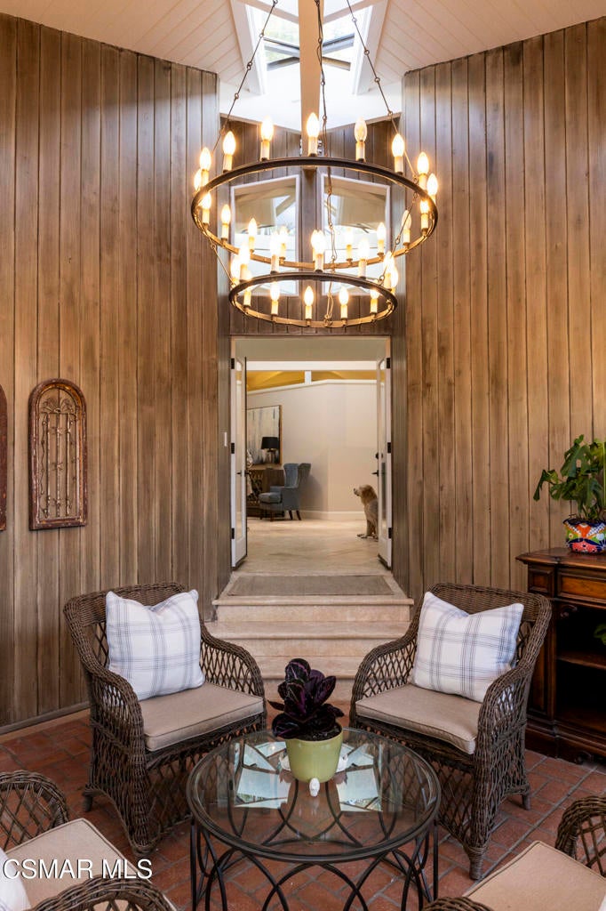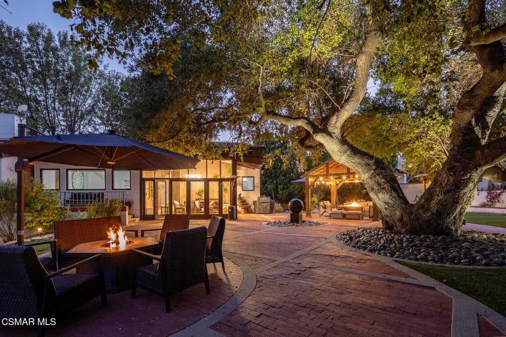FURNISHED RENTAL! 3 Month Minimum! When the original developer of North Ranch chose his homesite in the mid 1980's, he chose 4525 Rayburn St. Dotted with majestic coastal oaks, the 29,000 SF property offered a unique serenity with a gentle rolling topography affording the architect/builder the freedom to create a genuine sanctuary. Nothing captures the spirit of man's interaction with the natural world than the one of a kind glass pyramid skylight located in the center of the soaring ceiling. The airiness and voluminous space intersect crisscrossing lumber beams, creating a sense of wonder and bliss. The tongue and groove wooden ceiling coupled with the afore mentioned beams, evoke man's connection to nature and the heavens, while the travertine floors anchor the soul to the earth. With more than 4,500 SF, including the sensational glass garden room or the detached 3 car garage/ gym and billiard hall, the space is all encompassing and engrossing. With the primary and a 2nd large ensuite on the main level, plus the kitchen, powder and open family room, this home lives easy and casual while the formal dining room is ready to meet any occasion. The lower level consists of two more bedrooms, a bath, laundry and an open entertainment room which could serve as bed 5 should your needs require it. Stepping through the main level French doors into the garden room, you feel the towering angular glass and wood ceiling, the walls of glass and used brick floor as a transition to the outside world. The yard is park like, with the sound of water cascading from the pool and its tiled water well and the walled yard features a gated circular driveway. The 3 car garage has been converted into a gym and fabulous pool hall replete with bench, barstools and pool table. Behind the garage is a small fruit tree orchard and gardening area. Additional amenities include remodeled baths, stunning millwork, both a built-in refrigerator and separate freezer along with top of the line appliances. Near the prestigious North Ranch Country Club, the finest shopping and both public and private educational opportunities, this gated estate suits everyone from the most down to earth to the most cosmopolitan.