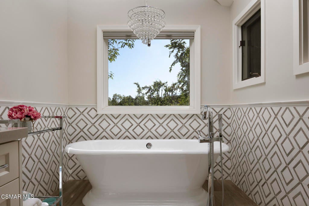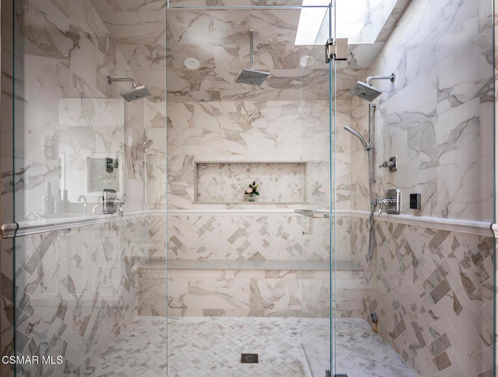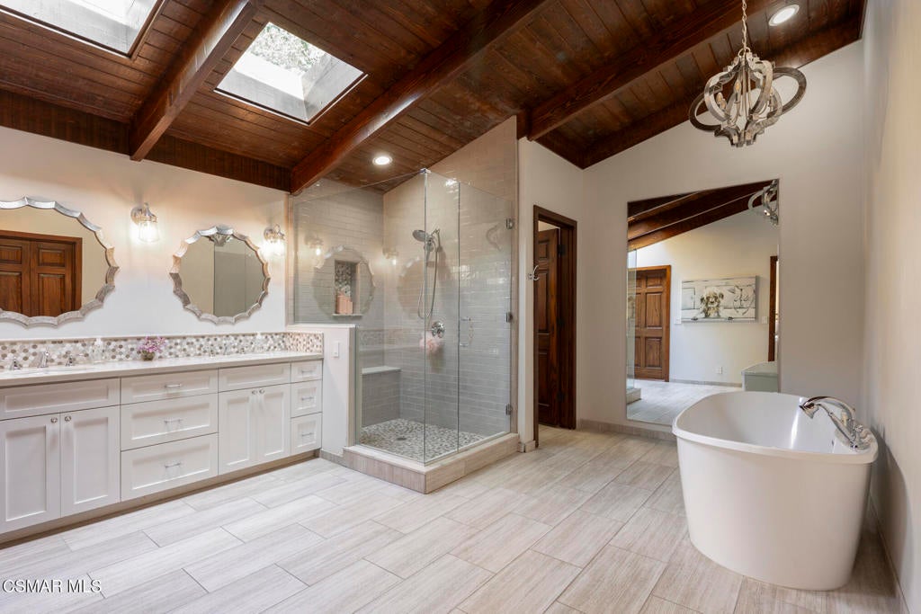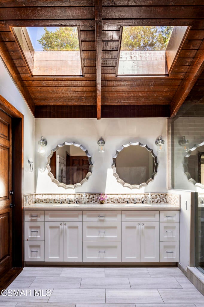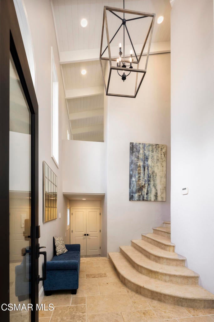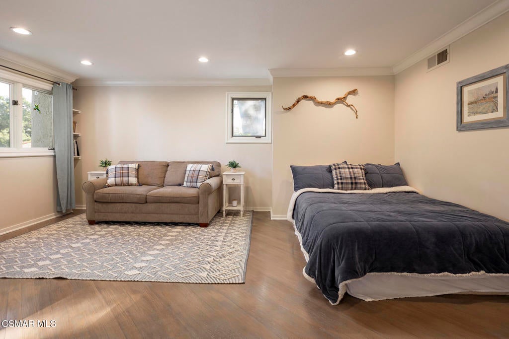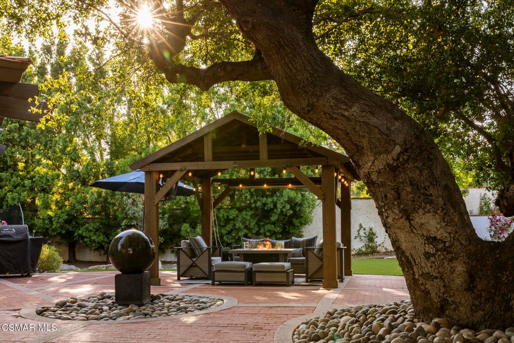 FURNISHED RENTAL! 3 Month Minimum! When the original developer of North Ranch chose his homesite in the mid 1980's, he chose 4525 Rayburn St. Dotted with majestic coastal oaks, the 29,000 SF property offered a unique serenity with a gentle rolling topography affording the architect/builder the freedom to create a genuine sanctuary. Nothing captures the spirit of man's interaction with the natural world than the one of a kind glass pyramid skylight located in the center of the soaring ceiling. The airiness and voluminous space intersect crisscrossing lumber beams, creating a sense of wonder and bliss. The tongue and groove wooden ceiling coupled with the afore mentioned beams, evoke man's connection to nature and the heavens, while the travertine floors anchor the soul to the earth. With more than 4,500 SF, including the sensational glass garden room or the detached 3 car garage/ gym and billiard hall, the space is all encompassing and engrossing. With the primary and a 2nd large ensuite on the main level, plus the kitchen, powder and open family room, this home lives easy and casual while the formal dining room is ready to meet any occasion. The lower level consists of two more bedrooms, a bath, laundry and an open entertainment room which could serve as bed 5 should your needs require it. Stepping through the main level French doors into the garden room, you feel the towering angular glass and wood ceiling, the walls of glass and used brick floor as a transition to the outside world. The yard is park like, with the sound of water cascading from the pool and its tiled water well and the walled yard features a gated circular driveway. The 3 car garage has been converted into a gym and fabulous pool hall replete with bench, barstools and pool table. Behind the garage is a small fruit tree orchard and gardening area. Additional amenities include remodeled baths, stunning millwork, both a built-in refrigerator and separate freezer along with top of the line appliances. Near the prestigious North Ranch Country Club, the finest shopping and both public and private educational opportunities, this gated estate suits everyone from the most down to earth to the most cosmopolitan.