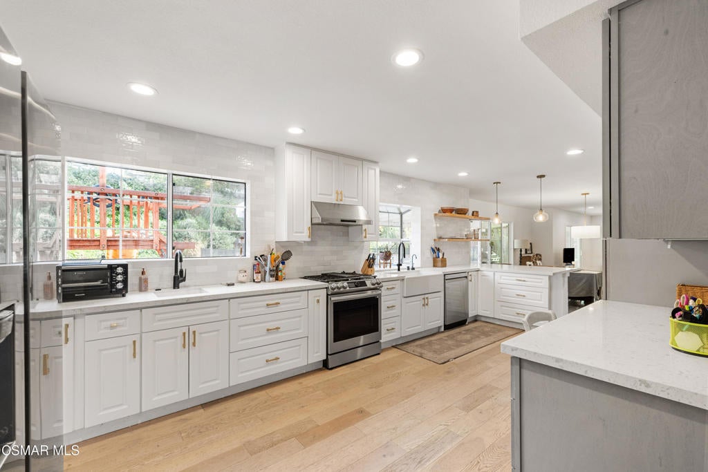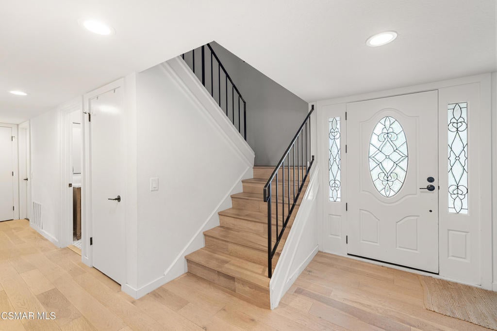 Welcome to 3562 Quincy Ave. Located in a prime Simi Valley neighborhood, this beautiful two-story home offers 4 bedrooms, 3 bathrooms, and approximately 2,378 square feet of comfortable living space on an 8,700+ square foot lot. The inviting interior features gleaming wood laminate flooring, smooth ceilings, recessed lighting, and a marble fireplace anchoring the living room. Dual-pane windows and plantation shutters enhance both style and energy efficiency. The gorgeously remodeled kitchen is a standout, boasting quartz countertops, abundant cabinetry, a prep sink, stainless steel appliances, and a breakfast bar, all open to the cozy family room and overlooking the backyard. All bedrooms are located upstairs, including a spacious primary suite with a walk-in closet and en suite bath featuring dual sinks, a spa tub, and a separate shower. Secondary bedrooms are generously sized, with one offering access to a hidden bonus room - ideal for a playroom, extra storage, or creative space. Step outside to an entertainer's dream backyard with a large covered patio complete with ceiling fans, a sparkling pool and spa, and a fire feature - perfect for relaxing or hosting gatherings. Additional amenities include central air and heat and an oversized direct-access two-car garage. This is truly a must-see home!