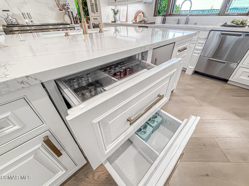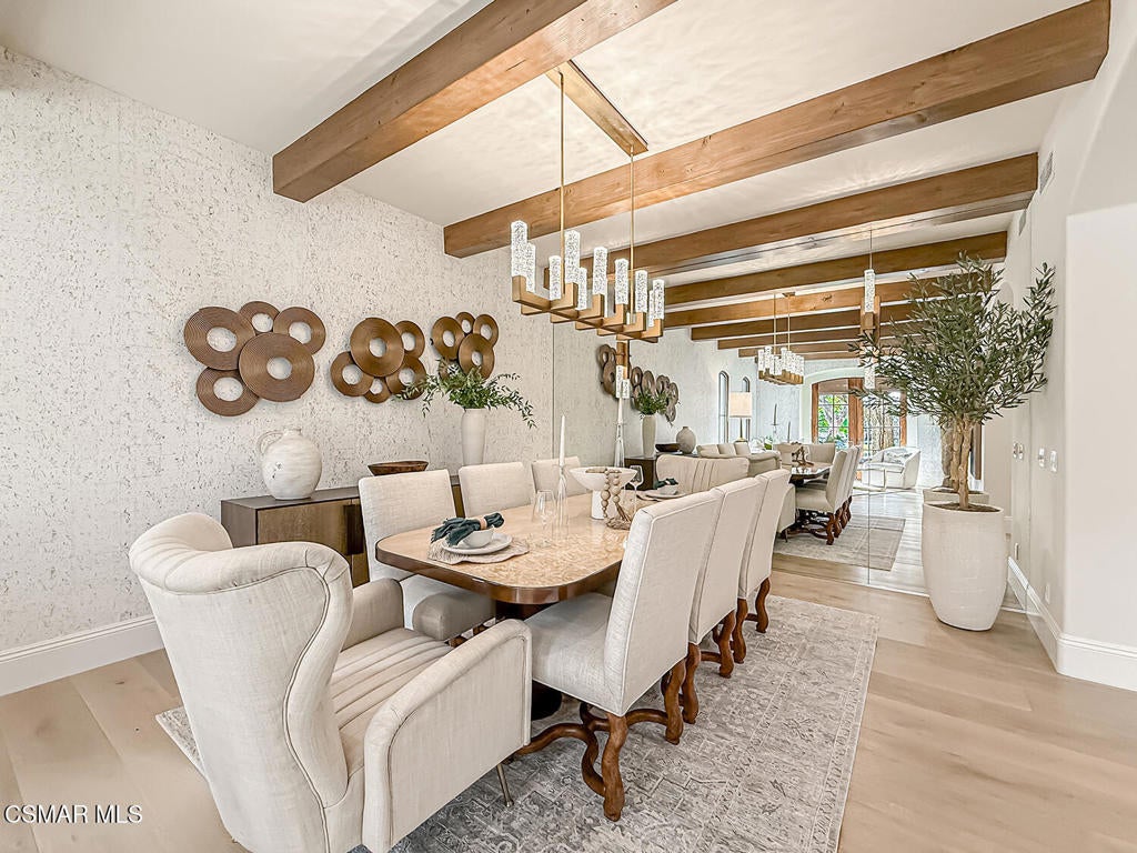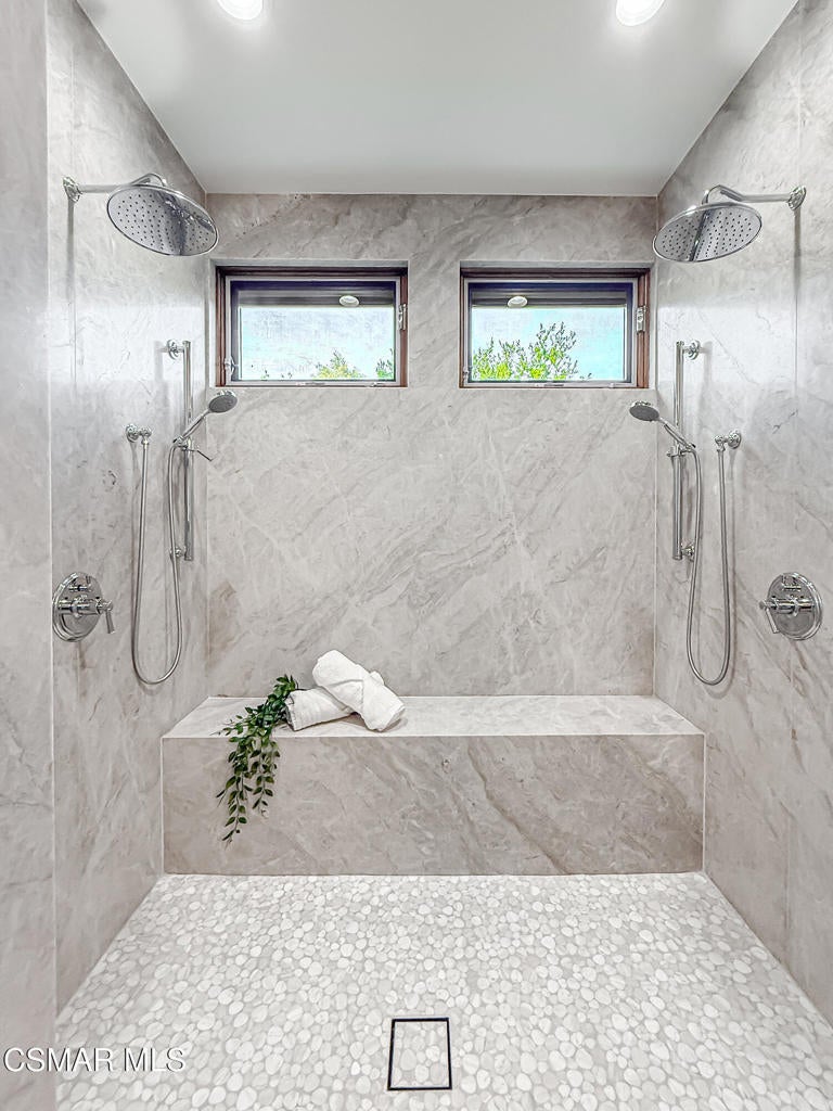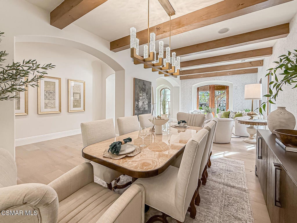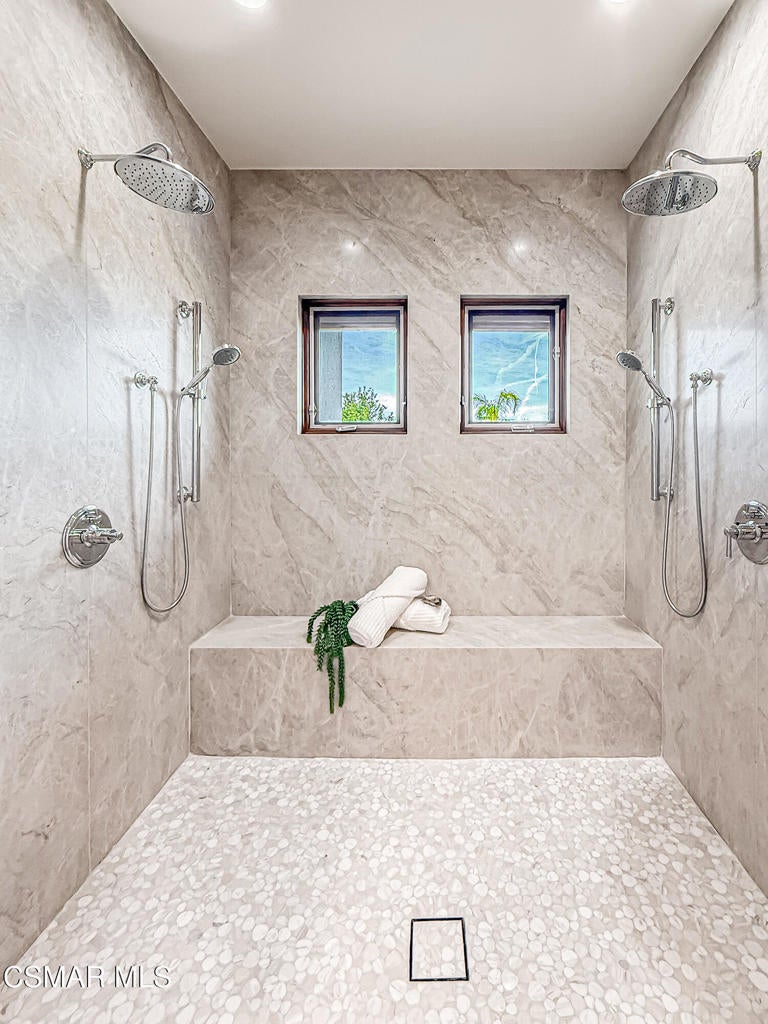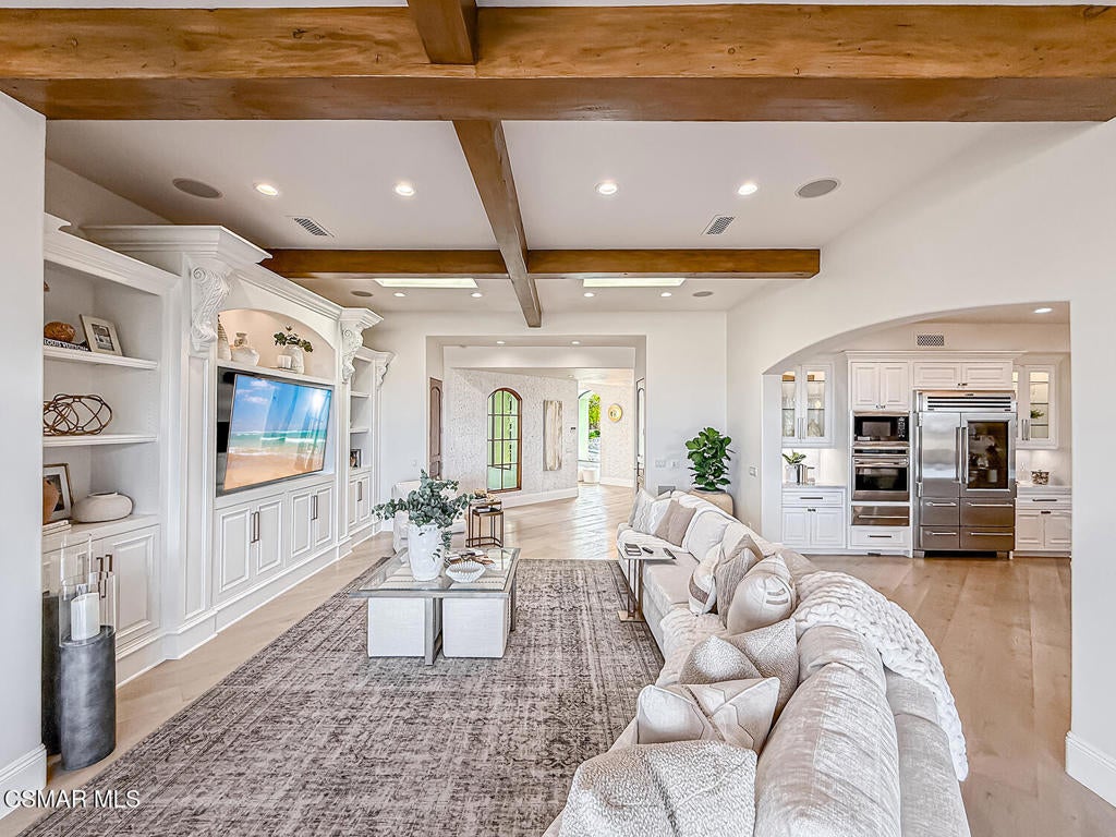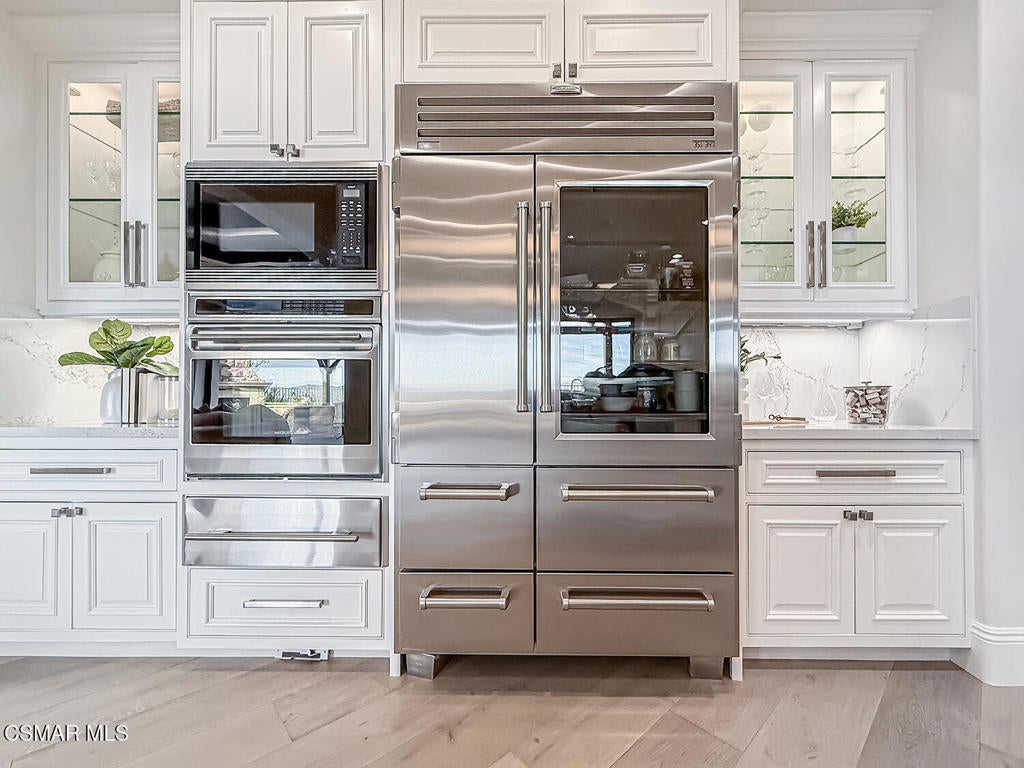 Welcome Home. The property is nestled within the prestigious, gated community of Westridge Estates. This exceptional residence offers privacy, beauty, and timeless elegance. The neighborhood features mature tree-lined streets, wide roadways, and low HOA dues--creating a peaceful and inviting atmosphere. Situated on a quiet cul-de-sac, the property enjoys breathtaking views of rolling mountains and treetops from the balcony. Inspired by Mediterranean architecture, the home showcases refined details and graceful lines--from smooth bullnose corners and curved archways to newly installed designer light fixtures that set a warm, sophisticated ambiance throughout. This residence has been extensively upgraded with superior materials and craftsmanship. From the impressive double-door entry to the added picture windows, every detail has been thoughtfully curated. Designer corkboard wallpaper with subtle metallic silver and gold accents flows throughout much of the first floor, adding texture and understated luxury. Designed for Living & Entertaining Offering approximately 5,652 square feet of living space (per assessor), the home is both expansive and inviting. The formal living room flows seamlessly into the dining room, while the open-concept family room and kitchen create an ideal setting for everyday living and entertaining. Warm faux wood beams add character and architectural interest. This is California living at its finest. Enjoy surround sound, a motorized Nano Wall that effortlessly connects indoor and outdoor spaces, and a resort-style backyard featuring an outdoor fireplace, built-in barbecue, private pool, and spa. A beautifully designed enclosed patio cover allows for year-round entertaining, while the grassy yard and fruit trees complete this serene retreat. Culinary Delight The chef's kitchen is as stunning as it is functional, filled with natural light and designed for both entertaining and serious cooking: Oversize island single slab Calcutta Gold Quartz plus countertops, and backsplashes Custom-built range hood with integrated spice storage Wolf 6-burner gas range with griddle and double ovens Stove top - Pot filler faucet Extensive custom cabinetry throughout Wolf stainless steel microwave, third oven, and warming drawer Sub-Zero refrigerator and freezer Sub-Zero refrigerator and freezer drawers Two stainless steel double dishwashers Under-counter ice machine Custom wine showcase cabinet with wine refrigerator and wine accessory drawer Farmhouse sink at the island plus a secondary double sink for added convenience. Comfort & Luxury The home offers five bedrooms and four-and-a-half bathrooms. Two of which are primary suites--one upstairs and one downstairs. The downstairs primary suite is a true sanctuary. An elevator, located just across the hall, provides easy access to the upstairs living areas--offering comfort, convenience, and accessibility. The staircase is a showpiece, with a captivating focal point from the newly installed light fixture. The space is amplified by the use of frameless glass railings that maximize light, enhance safety, and provide unobstructed views of your surroundings. Upstairs Living The second and third bedrooms upstairs have also been tastefully renovated, offering their own upgraded bathroom and private oversized closet. There is also a home office with custom-built-in cabinetry- showcasing your refined workspace. The upstairs primary suite is spacious, inviting, and filled with lots of luxury comforts. From the high ceilings, double French doors to gain access to your private balcony, to the frameless glass railings, and the Stunning view. The ensuite bathroom includes a soaking tub area, full-slab Taj Mahal Quartzite double shower with bench, inlay marble flooring, dual vanities, new countertops, and updated hardware. An upgraded laundry room completes the upper level, blending beauty with everyday functionality.