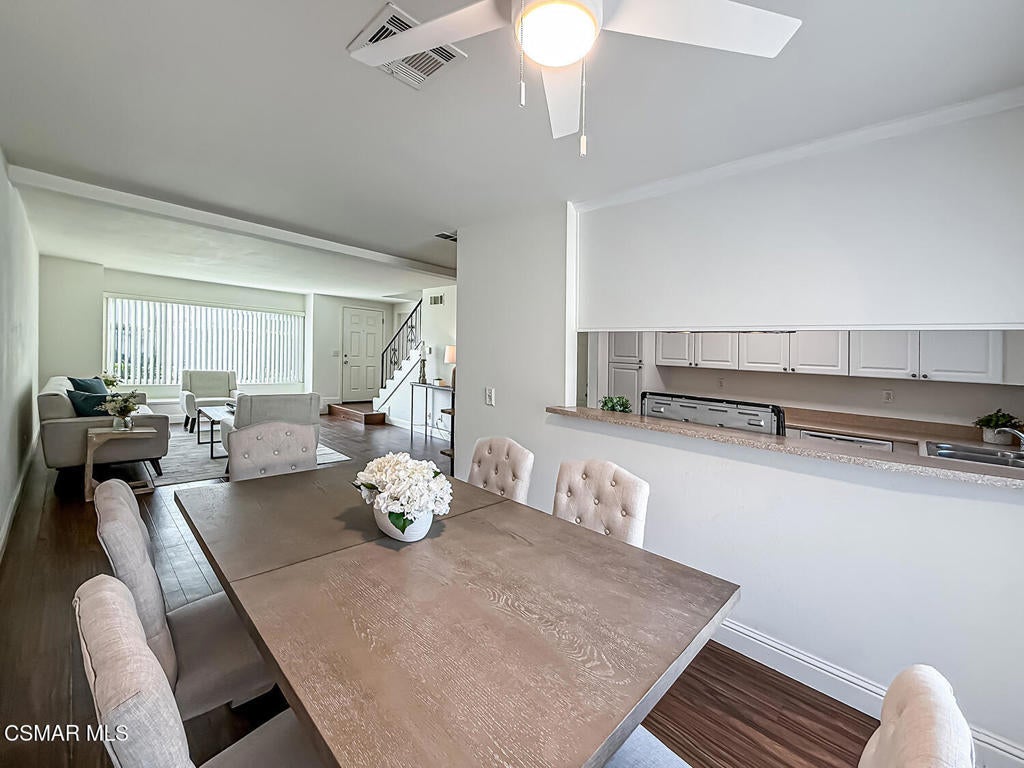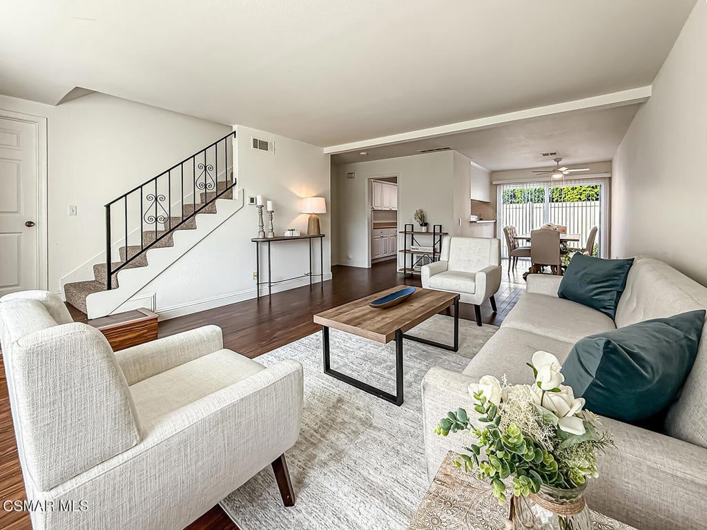 Welcome to 6542 Marquette Street, Unit B -- a beautiful home nestled in the heart of Moorpark. This light-filled residence offers a thoughtful floor plan designed for both everyday living and easy entertaining. Step inside to an inviting living and dining space accented by warm flooring, neutral tones, and abundant natural light, creating a calm and welcoming atmosphere from the moment you enter. The kitchen features crisp white cabinetry, ample counter space, and a functional layout that flows seamlessly into the dining area -- perfect for casual meals or hosting friends. Just beyond, sliding doors open to a private, enclosed patio with new vinyl fencing, ideal for outdoor dining, morning coffee, or creating your own personal retreat. A half bath, indoor laundry room, and direct access to the attached one-car garage plus a separate detached enclosed garage adds everyday convenience. Upstairs, you'll find generously sized bedrooms offering comfort, flexibility, and privacy. The first spacious bedroom provides room to unwind, complete with abundant closet space. Two additional bedrooms are bright and well-proportioned, perfect for guests, a home office, or creative use. Two bathrooms, one with shower and one with shower/bath combo maintain a clean, timeless aesthetic. The community enhances the lifestyle with beautifully maintained grounds and a sparkling pool -- a perfect place to relax and enjoy Moorpark. Conveniently located near parks, shopping, dining, and award-winning schools, this home offers both comfort and connection. Move-in ready, well cared for, and ideally located -- this is Moorpark living at its best.