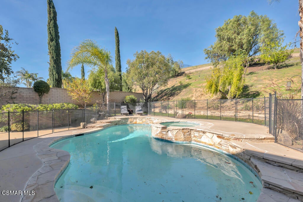 Set on over half an acre, this impressive 3,059 sq. ft. residence offers four bedrooms, two private offices, and 2.5 bathrooms, blending refined comfort with modern upgrades. The updated kitchen showcases shaker cabinetry, quartz countertops, stainless steel appliances, and recessed lighting and flows effortlessly into a sun-filled family room with a cozy fireplace. A generous dining room and a flexible downstairs office or guest suite enhance the home's elegant yet functional design.Upstairs, the primary suite is a serene retreat featuring a beautifully remodeled bathroom, a dedicated office, and sweeping hillside views. Three additional bedrooms and a pleasingly remodeled bathroom provides ample space for family and guests alike.The expansive backyard is a true showpiece, designed for elevated California living with a covered patio, saltwater pool and spa, built-in BBQ, fire pit, fruit trees, and breathtaking vistasfrom the crest of the gently sloping hillside, perfect for viewing 4th of July fireworks. Other premium amenities include owned solar with upgraded electrical panel, 2 Tesla power-walls,level 2 EV charging hookup, smart-home systems, a newer three-zone HVAC with smart thermostats, enhanced Wi-Fi infrastructure, and full security, delivering a lifestyle of comfort,efficiency, and distinction.